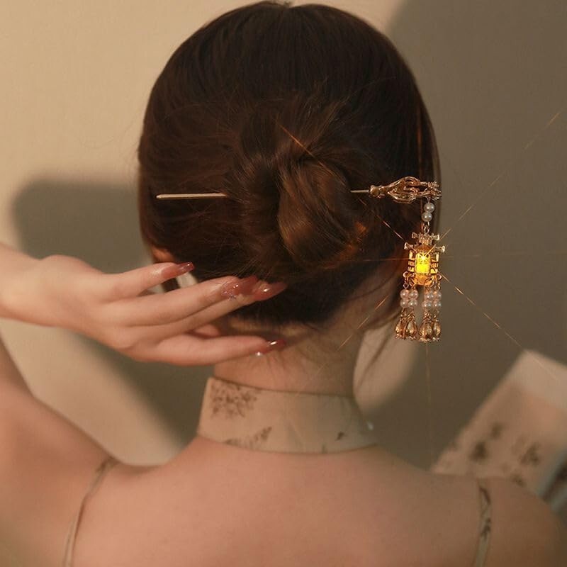 Lantern Light Tassel Hairpins Hair Stick Chinese Coiled Hair Antique Hair Pin Ha Hair Type All Age Range (Description) Adult Style Vintage Embellishment Flower Exquisite workmanship and luminous hairpins can attract most people's attention. Simple operation, add different customs for you. Good quality, welcome to buy. Package Included:2 PCS Ancient Style Hairpin Hair Clips Chinese Lantern Hair Sticks Forks Vintage Lotus Flower Tassel Headpieces For Women Girls,Ponytail Hair Stick, Hair Updo Bun For Thin Thick Hair