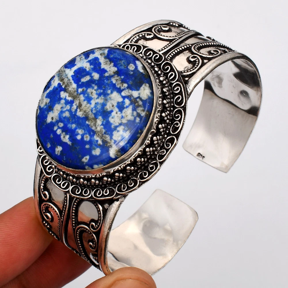 Lapis Lazuli Ethnic Gemstone Handmade Adjustable Bangle Jewelry CB-188
