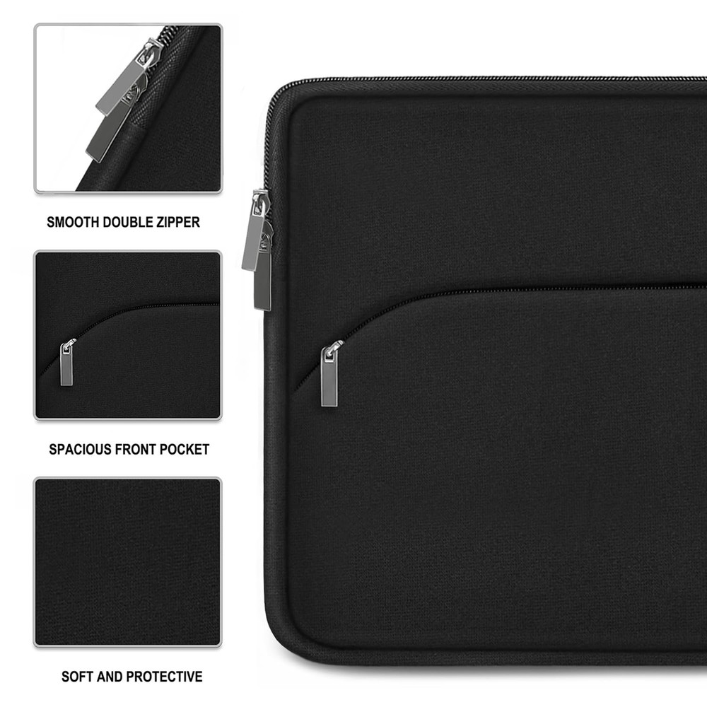 Laptop Sleeve Case 15.6 inch, Durable Portable Monitor Black Product Details ✔PERFECT FIT: External Dimensions: 15.8”x11.4”x1”. Internal Dimensions: 15”x10.7”x0.8”. Our This laptop sleeve is suitable for all 15 15.4 15.6 16 inch laptops. It can be used as an Apple MacBook case, Chromebook case, HP laptop cover, Dell laptop cover or HP 15.6 laptop case Etc. ✔COMPATIBILITY: This 15.6-inch laptop case is compatible with MacBook Pro 15 16, HP ENVY 15.6 or 16/HP Spectre X360 16/ Elitebook, Dell XPS 15/Inspiron 15/Vostro 15.6/Precision 15.6, 15.6 Inch Acer Aspire 5/Nitro 5, Acer Aspire 3/5/7 15.6, Asus Zenbook Pro 15.6, Lenovo ThinkPad 15/IdeaPad 15/Yoga 16, and fits more other similar size notebook. ✔ADDITIONAL STORAGE SPACE: This laptop comes with an external pocket on its sleeve, which has enough space to store your mouse, cable, phone, memory card, external hard drive, pen, and more. The zipper slides smoothly, making it easy to access the laptop. It is perfect for anyone who wants a 15-15.6 inch laptop case. ✔SOFT AND PROTECTIVE: Premium thickened water-resistant neoprene material offers a ultra slim lightweight design and superior protection to protect laptop/notebook from dust, bumps, scratches, scuffs and spills.
