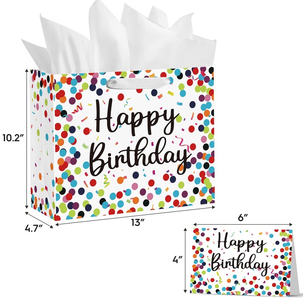 eBay Product Listing Welcome to Your Favorite My Store Your satisfaction is our top priority – Shop confidently 13" Large Gift Paper Bags With Tissue Paper and Card - Happy Birthday Dots Streamers for Men, Women, Kids - 4Pcs Item Gallery Item Description Ideal Size: This paper bag measures 13×10.2×4.9 inches, providing the perfect size for a variety of birthday gifts such as clothing, toys, cosmetics, and more. The spacious interior ensures your gifts are well-protected. Eco-Friendly Material: Crafted from high-quality, eco-friendly paper, this bag is durable and reusable. Celebrate birthdays while contributing to the preservation of the environment. Birthday Themed Design: Featuring an attractive birthday-themed design, this paper bag adds a festive touch to your gift. The unique patterns and color scheme make it a thoughtful and caring choice for the recipient. Complimentary Greeting Card: A 6×8 inch birthday greeting card is included with the bag, allowing you to express your best wishes. The card is made of high-quality paper for smooth writing, conveying your warm sentiments. Practical and Convenient: With a reinforced bottom for added strength and a comfortable handle for easy carrying, this paper bag is both practical and stylish, enhancing the presentation of your birthday gift. Special Features Birthday Gift Bag with Card and Tissue Paper Our Guarantee To You We offer fast shipping, free delivery, and 100% customer satisfaction guarantee. Not satisfied? Return your item for free within 30 days. 30-Day Free Returns Shipping Details Items will be sent to your eBay address. Please verify before purchasing. Typical delivery within 3-7 business days. Professional shipping services used for all orders. We ship to the continental US (48 states only). Unable to deliver to Alaska, Hawaii, or territories. No APO/FPO or PO Box deliveries available. We use eco-friendly packaging Payment Options We accept these secure payment methods: All transactions securely processed through eBay's payment system. Simple Returns 30-Day Satisfaction Promise Contact us through eBay messages within 30 days of delivery. We'll provide return instructions and our address. Return the item in its original condition. We'll process your refund within 48 hours of receiving the item. Get In Touch Have questions about your order? Contact us through eBay messaging for prompt assistance. We typically respond within 24 hours.