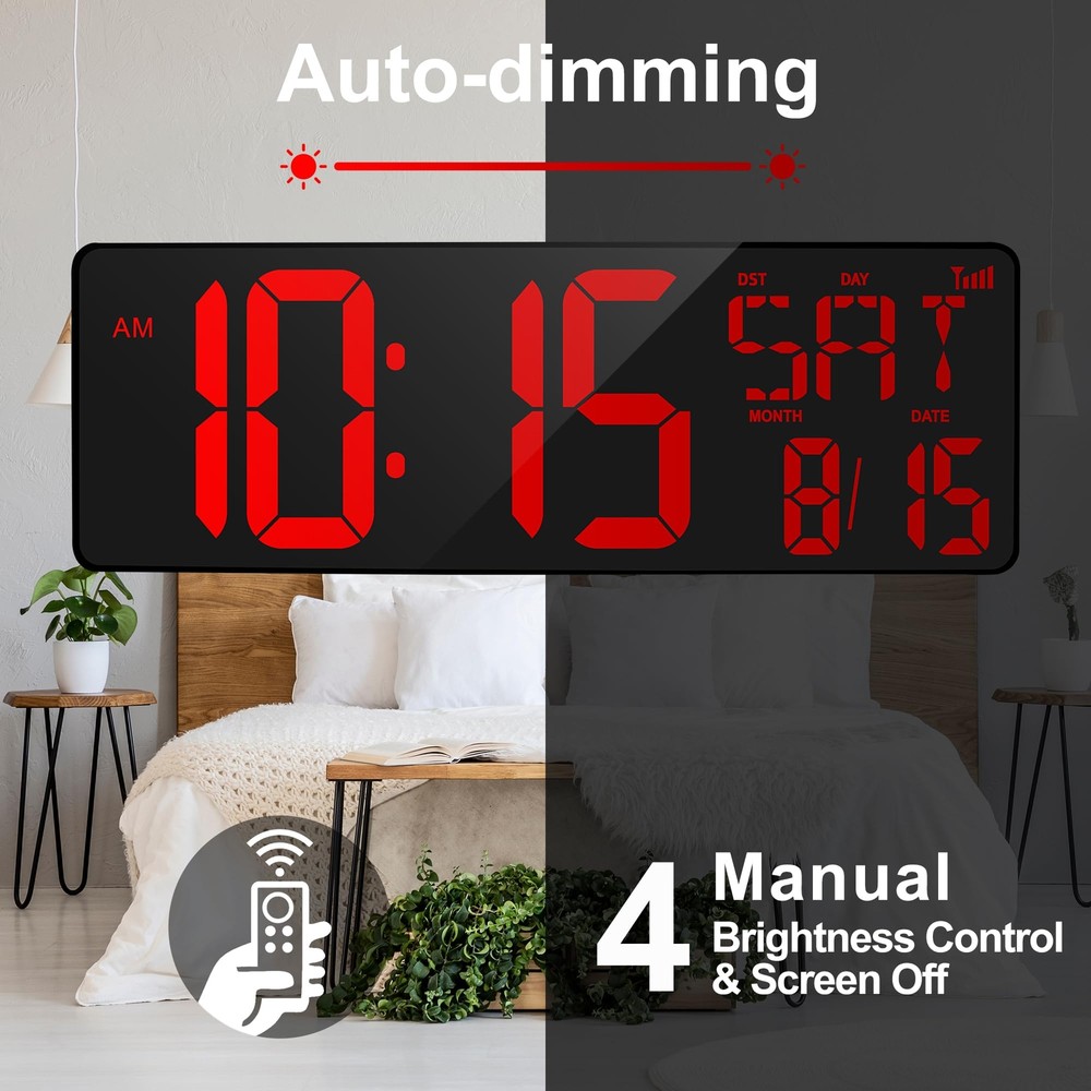Large 17.2" Digital Wall Clock with Bluetooth Sync and Atomic Time
