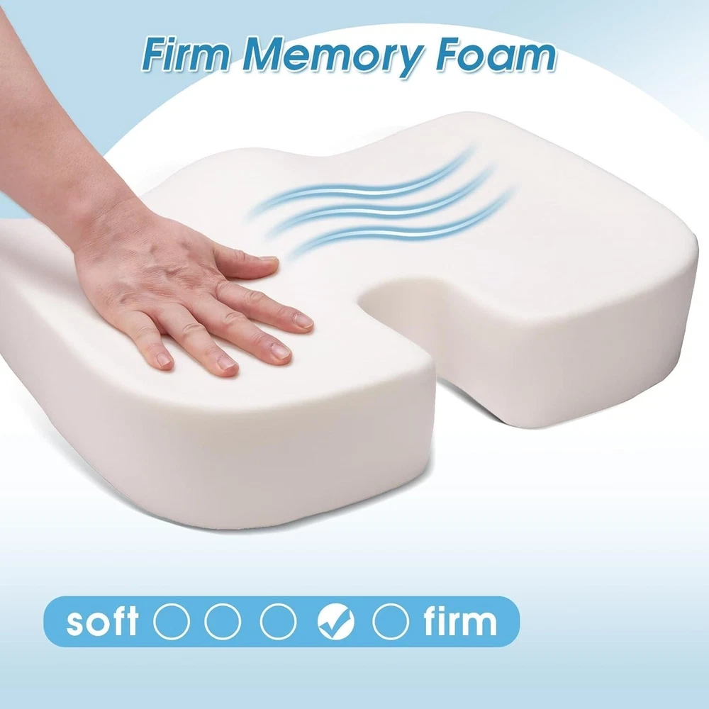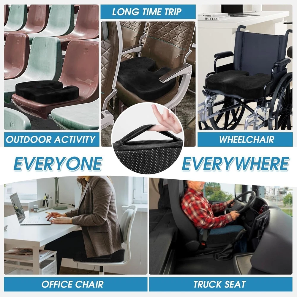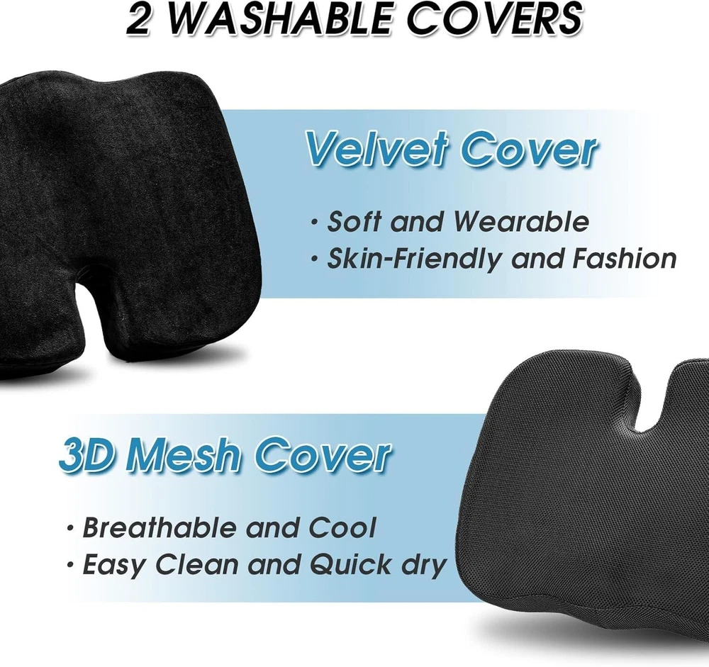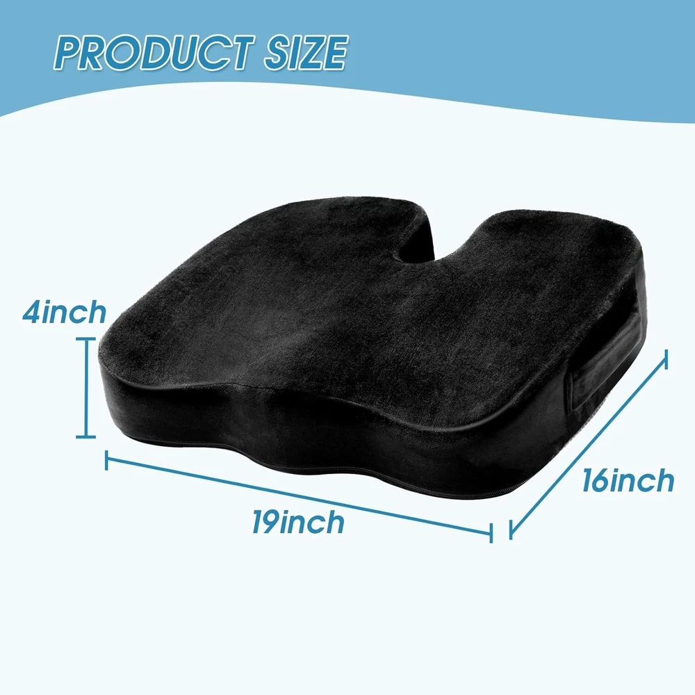 Fabric Type: Soft Velvet Cover, 3d Mesh Cover Item Weight: 3.09 Pounds gtin13: Does not apply Shape: Semicircular Features: Memory Foam, Ergonomically designed, U-shaped cutout, Relieves tailbone pain, Relieves lower back pain, Relieves hip pain, Increased seat height, Portable design, Non-slip bottom, Breathable mesh cover, Soft velvet cover, Machine washable covers Age Range (description): Adult Type: Coccyx Cushion Number Of Pieces: 1 Recommended Uses For Product: Sitting UPC: Does not apply Fill Material: Memory Foam Item Firmness Description: Medium Firm Color: Black Brand: Unbranded Use For: Buttocks, Back, Hip Pattern: Solid Unit Count: 1.0 Count Material Feature: Breathable Material: Memory Foam, Soft Velvet Cover, 3D Mesh Cover Product Dimensions: 19"l X 16"w X 4"h