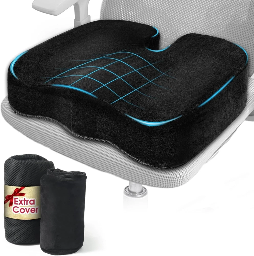 Large 19x16-Inch Memory Foam Seat Cushion with Dual Covers for Versatile Comfort