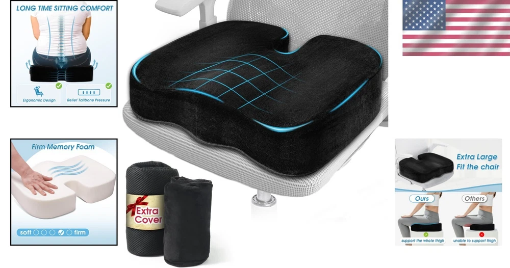 Large 19x16-Inch Memory Foam Seat Cushion with Dual Covers for Versatile Comfort ‹ › ‹ › ‹ › ‹ › ‹ › ‹ › ‹ › ‹ › ‹ › ‹ › Large 19x16-Inch Memory Foam Seat Cushion -Designed for Versatile Comfort Features: Size: 19" × 16" × 4" - 15% more area compared to standard cushions. 4" high-density memory foam for firm support and pressure distribution. Ergonomically designed with a U-shaped cutout for tailbone relief. Includes two easily replaceable covers: a cool mesh cover and a soft velvet cover. Non-slip bottom to keep the cushion securely in place. Carrying handle for portability, perfect for travel. Benefits: Enhances comfort and support, reducing sciatica and lower back pain. Promotes proper sitting posture and is ideal for prolonged sitting. Perfect for office use, road trips, or outdoor seating. Washable covers for easy maintenance and quick drying. Suitable for all ages, including pregnant women, the elderly, and long-time drivers. Safe and reliable with a non-slip design for any seating surface. Why choose our Memory Foam Seat Cushion? Experience the ultimate in seating comfort with our Large 19x16-Inch Memory Foam Seat Cushion. Designed to provide relief from tailbone, lower back, and hip pain, this cushion is perfect for anyone who spends long hours sitting. Its generous size and high-density memory foam offer stability and support while ensuring that you stay comfortable throughout your day. With its versatile design and easy-to-maintain covers, this cushion is not just a product, but a lifestyle upgrade for those who value their comfort and well-being. Don't settle for discomfort. Elevate your seating experience now by ordering your Memory Foam Seat Cushion today and feel the difference! Shipping Free & Fast Shipping - We offer free shipping to most of the USA with a normal delivery time of 3-7 days. However, due to the current situation, additional delivery time (up to 3 weeks) may be required for some items. Alternative Carriers - We may use alternative carriers (e.g. USPS, FedEx, UPS, etc.) to ensure your package arrives safely and on time. Due to the use of multiple carriers, we are unable to provide a tracking number automatically. Handling Time - Orders are processed and shipped within 1-2 business days of receiving cleared payment. Shipping Restrictions - Shipping to Alaska, Hawaii, Puerto Rico, Guam, and other US territories may incur shipping charges or delivery restrictions. Please contact us before ordering, or your order can be refunded/cancelled. State Restrictions - There may be restrictions based on your state of purchase. For example, certain items may not be shipped to California due to state regulations. Contact for Tracking Updates - If you require tracking updates or have any concerns about the delivery of your order, please feel free to contact us, and we will be happy to assist you. Return 30-Day Hassle-Free Returns - We want you to be completely satisfied with your purchase. If you are not, you can return the item within 30 days of receiving it for a full refund or exchange. Easy Return Process - To start a return, simply contact us and we will provide you with a prepaid return shipping label and detailed instructions. Restocking Fee - There are no restocking fees for returns. However, the buyer is responsible for return shipping costs if the return is not due to a seller's error. Refund Processing Time - Refunds will be processed within 5 business days of receiving the returned item in its original condition. Payment We accept all major credit cards, PayPal, and Apple Pay for your convenience. Your payment information is secure and encrypted to ensure a safe and seamless transaction. Please complete your payment within 3 days of purchase to avoid any delays in shipping. Feedback Your feedback is extremely important to us. We strive to provide the best products and customer service possible. If you are satisfied with your purchase, please take a moment to leave us a positive review. If you have any concerns or issues with your order, please contact us before leaving negative feedback. We are committed to resolving any problems and ensuring your satisfaction. Contact Us If you have any questions or concerns, please feel free to reach out to our customer support team. You can contact us through the eBay messaging system. We are available Monday to Friday, 9:00 am to 5:00 pm EST, and we will do our best to respond to your inquiry within 24 hours. Buy it now and enjoy a pleasant shopping experience! UPC: Not Set Unit Quantity: 1.0 Features: Memory Foam,Ergonomically designed,U-shaped cutout,Relieves tailbone pain,Relieves lower back pain,Relieves hip pain,Increased seat height,Portable design,Non-slip bottom,Breathable mesh cover,Soft velvet cover,Machine washable covers Material: Memory Foam,Soft Velvet Cover,3D Mesh Cover Brand: Unbranded Type: Coccyx Cushion Color: Black MPN: Not Set Country/Region of Manufacture: Not Set Manufacturer Warranty: Not Set Model: Not Set Unit Type: Unit