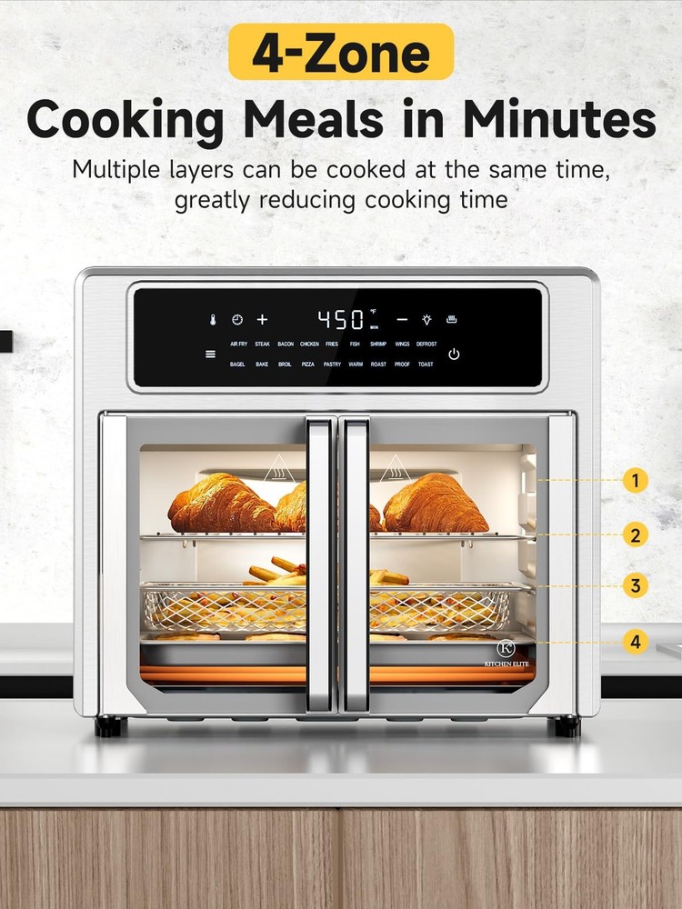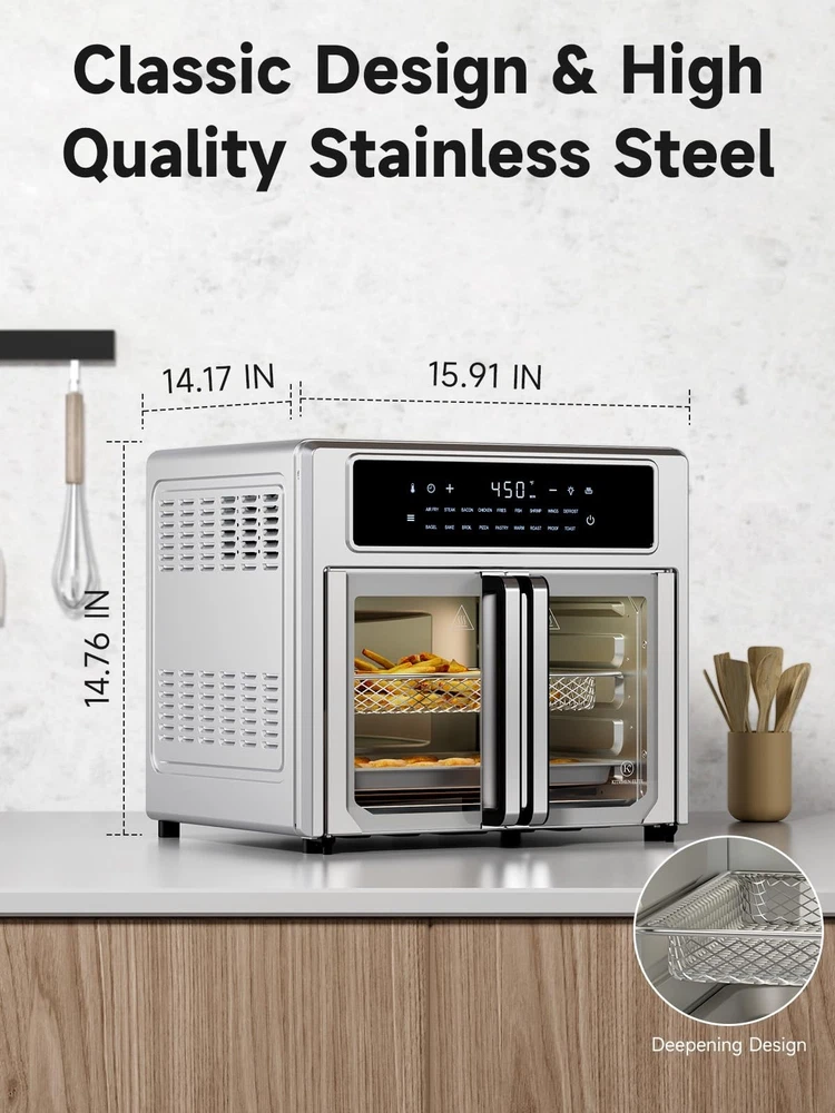 Large 26.4Qt Air Fryer Toaster Oven with Easy-Clean French Door Design