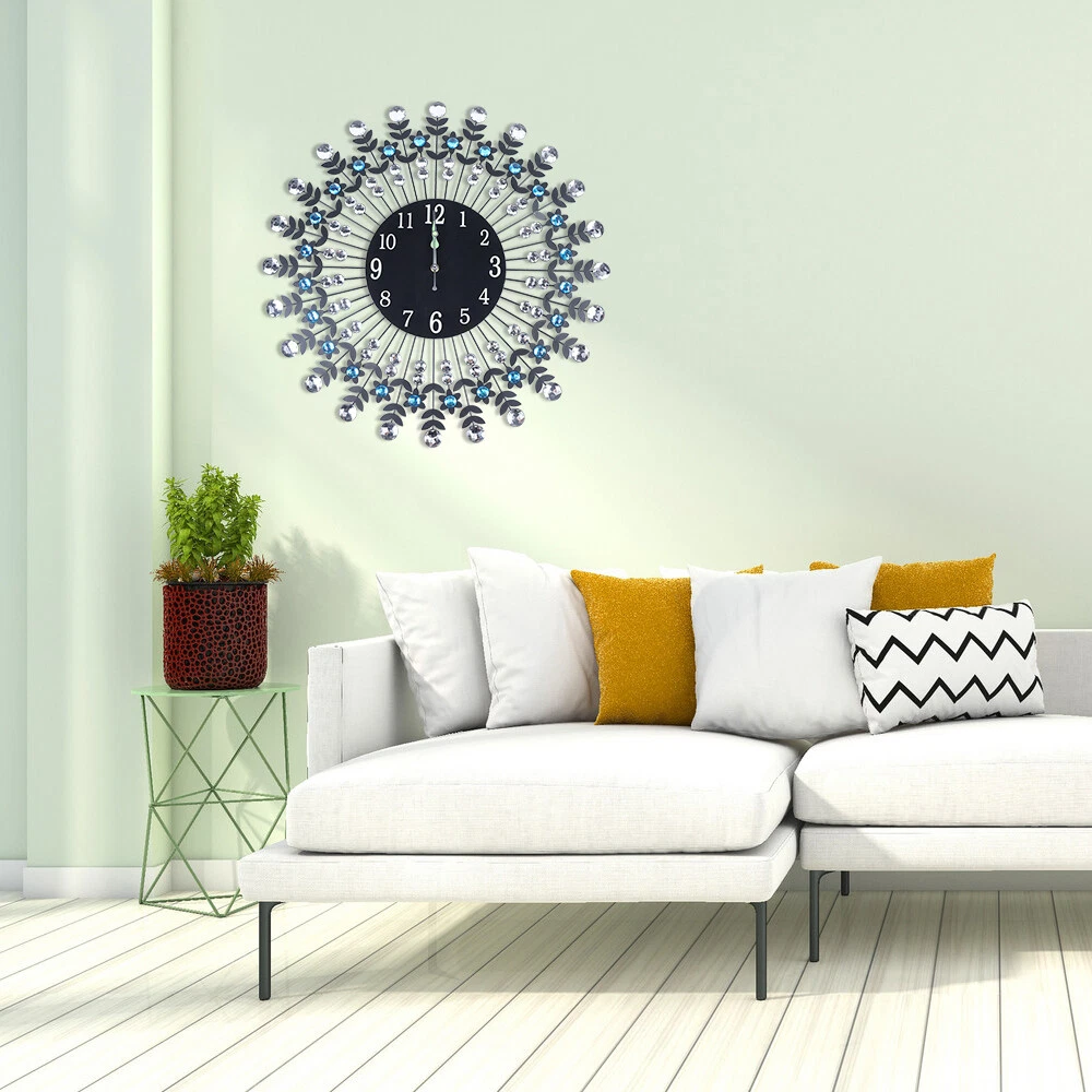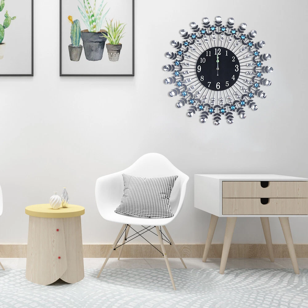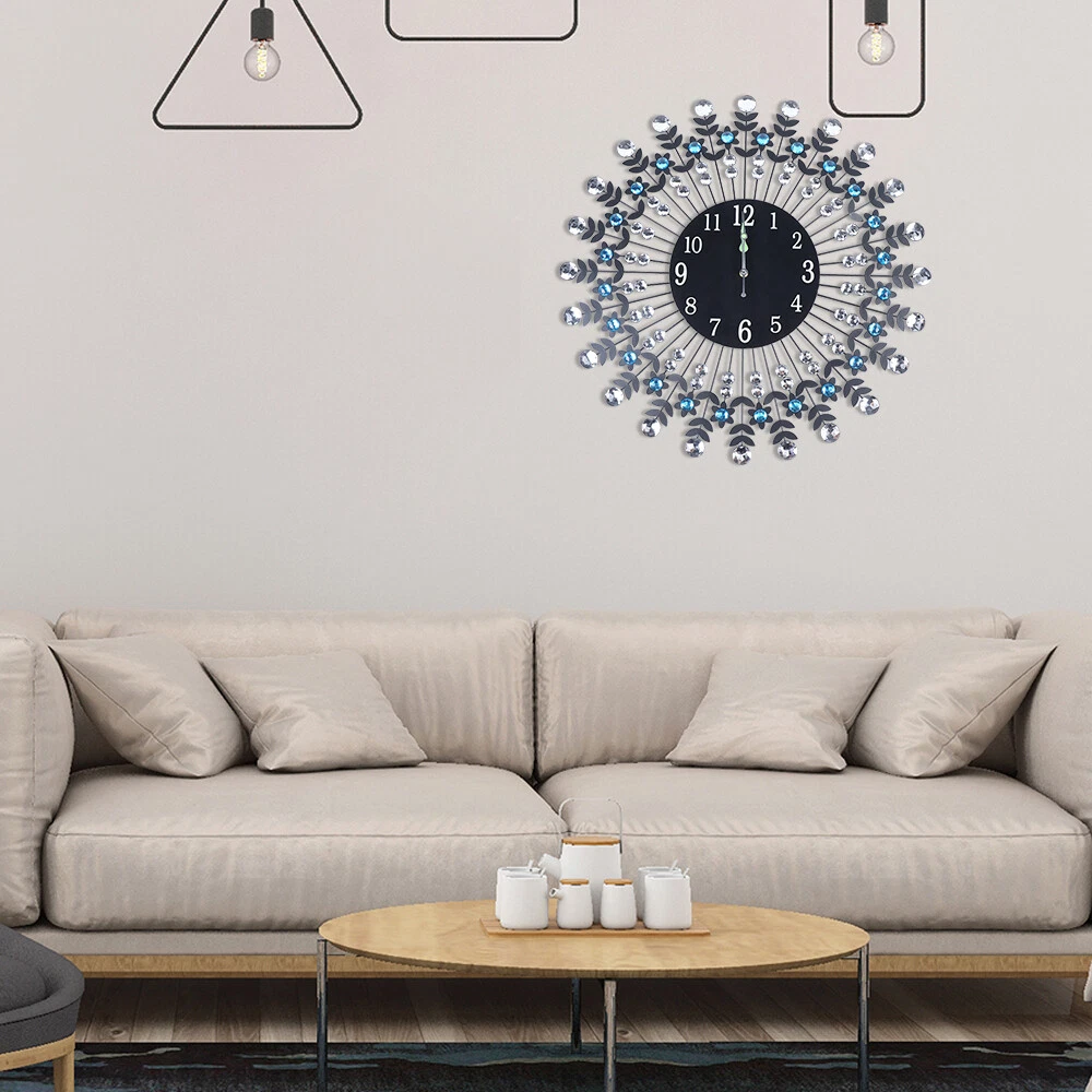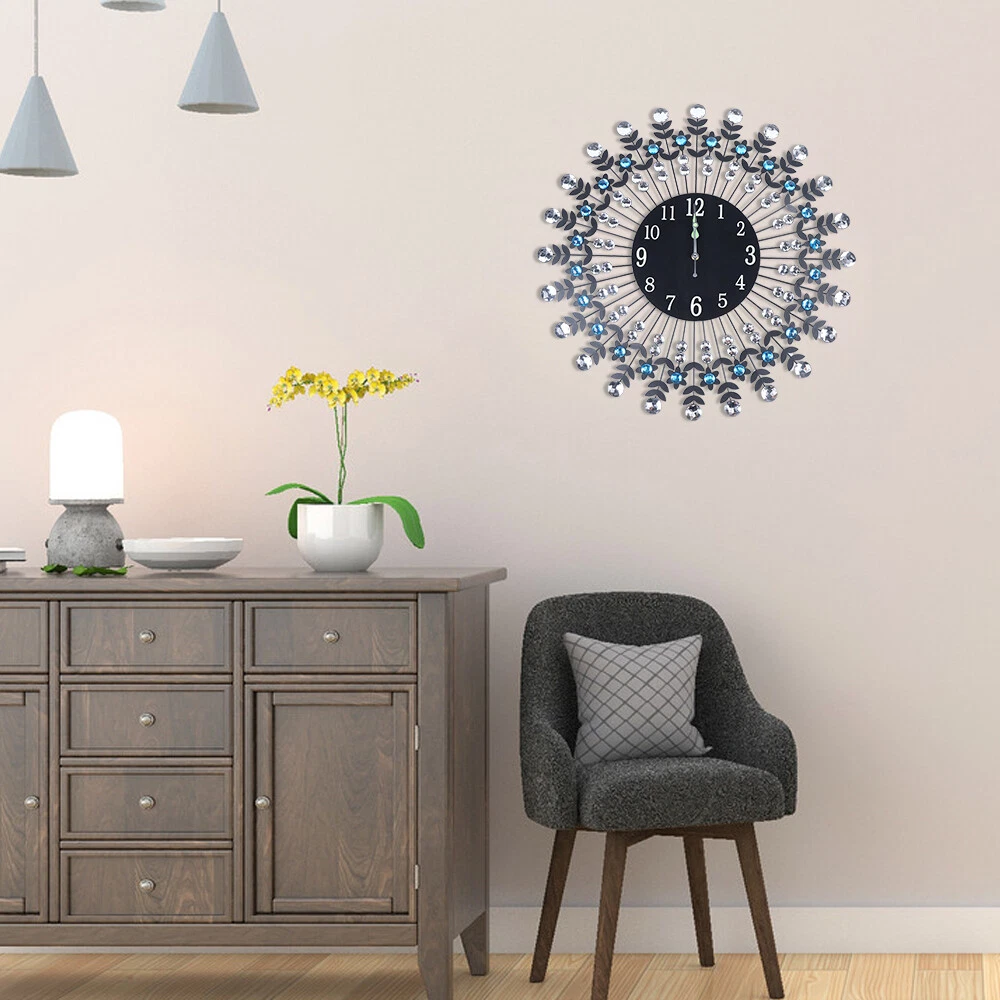 Large 3D Crystal Round Wall Clock Non Ticking Silencer Quartz Movement Clock