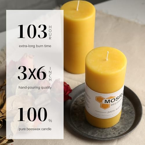 Return Policy Fast Delivery Trusted seller Large 3x6 Inch 100% Beeswax Pillar Candles, 85 Hours Long Burn Time, Unscented Beeswax Candle, Handcrafted Pure Bees Wax Candle for Ambience, Home Fragrance, Decor, Relax (1 Pack) Product Description 【100% PURE BEESWAX PILLAR CANDLES】 beeswax pillar candle is made from natural beeswax and we add no scent to these pillar candles, but beeswax itself is naturally honey scented with a very light and gentle aroma. With 100% cotton wicks improve the burning process; you'll enjoy a smokeless flame that flickers less than others. 【LONG LASTING BURN TIME BEESWAX CANDLE】Enjoy over 85 hours of burn time with each dripless bees wax pillar candle. Each large beeswax pillar candle is 3 inches in diameter and 6 inches tall. The size of our beeswax pillar candle will be slightly smaller than listed due to the natural cooling process, leaving a smooth and scuff-free finish on each pillar. Beeswax Pillar Candles are perfect addition to your party table and home decor. 【SMOKELESS AND DRIPLESS PILLAR CANDLES】Our pure beeswax pillar candles are harvested from natural bees farms, the wonderful fragrance of raw beeswax candles is free of chemicals or coloring, leaving only long lasting wax scents of sweet honey with a natural deep yellow color, so that bees wax pillar candles burn cleanly and evenly, with no dripping or mess. 【NATURAL HONEY SCENTED BEESWAX CANDLES】Beeswax candles are known for being slow-burning and hypoallergenic. They can bring a feeling of comfort with their natural honey aroma and color. The aroma of an organic beeswax candle brings can set a positive tone in your home, inviting ambiance and peace. 【WARM AND RELAXING FOR YOU】Whether it is for a romantic night, peaceful evening, prayer, or meditation, our Bees Wax Candles can help create a positive and warming environment. Make any space feel cozy and welcoming with an beeswax pillar candle. The pure beeswax candles are perfect for home decor. The warm, natural glow of these beeswax pillar candle adds a touch of elegance to any room. They are perfect for any occasion, from a romantic dinner to a cozy night in. Shipping Returns Payment Shipping Shipping is FREE to all addresses other than APO/PO boxes in the lower 48 states. All our stock ships from US-based warehouses. Shipped via USPS or UPS (depending on location and package weight) Unless stated otherwise, all orders will ship within 24-72 hours of your payment being processed. Check our feedback to see the great reviews of FAST shipping we offer. Returns Seller does not accept returns Payment We currently accept payment via eBay managed payments only. Once payment is cleared, we will dispatch your shipment within 1-3 business days. Please refer to the "Shipping" tab for more information regarding shipping speed to your destination.
