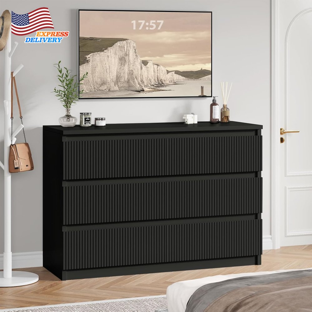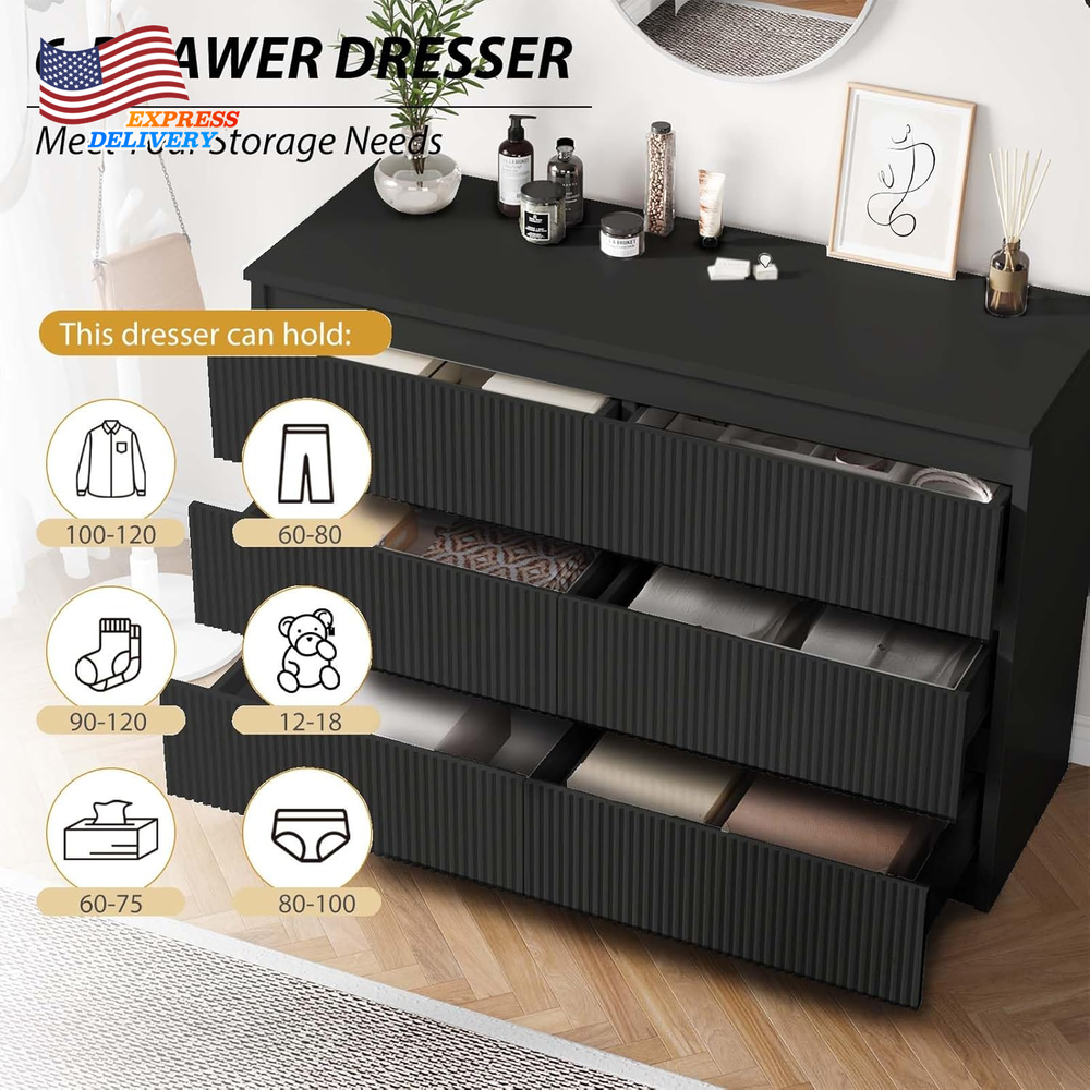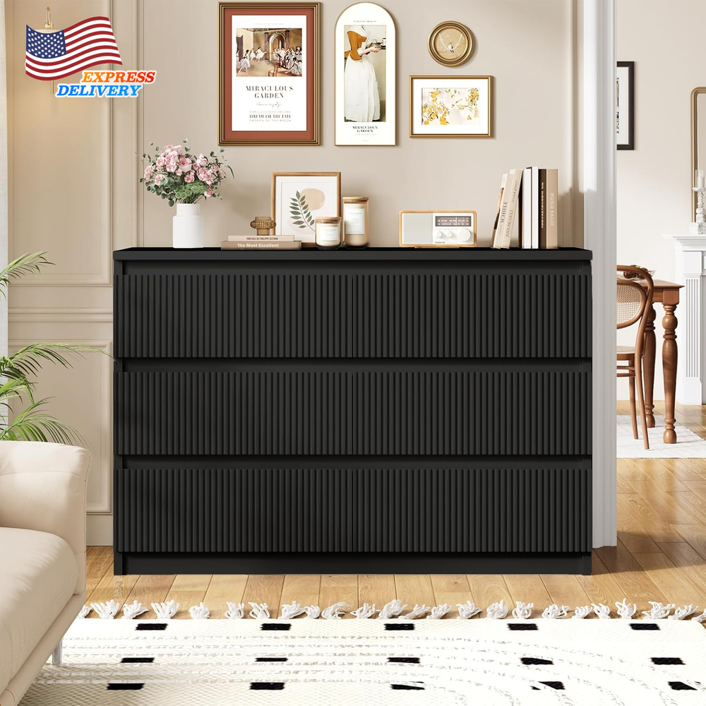 Store New Arrivals Add to Favorite View Feedback Contact Six Drawer Dresser Large Double Wooden Dresser Chest w/Deep Drawers for Bedroom Description Item model number farmhouse dresser Room Type Living Room, Bedroom Assembly Required Yes Mounting Type Floor Mount Color Black Material Engineered Wood, Metal Finish Type Polished Country of Origin China Item Weight 92 pounds Model Name farmhouse dresser Number of Drawers 6 Item Weight 92 Pounds Size 15.7"D x 47.3"W x 31.6"H (6 Drawers) Special Feature Scratch Resistant Product Dimensions 15.7"D x 47.3"W x 31.6"H Material Wood Room Bedroom MPN Does not apply Mounting Free Standing Six Drawer Dresser Large Double Wooden Dresser Chest w/Deep Drawers for Bedroom Modern Aesthetic Appeal: The six drawer dresser features a modern design with wave - like fluted panels, adding a touch of sophistication to your space. The clean lines and handleless design create a sleek look that complements any home decor. Whether placed in the bedroom, hallway, or living room, it serves as both a functional storage unit and a decorative piece, enhancing the overall aesthetic of the room. This six drawer dresser is a perfect blend of style and practicality. Superior Quality Materials: Constructed from high - quality MDF wood and equipped with sturdy metal slides, this dresser is built to last. The thickened dresser top is scratch - resistant, waterproof, and easy to maintain, ensuring long - term use. The reinforced bottom provides stable support, and the strong load capacity can handle heavy items. The high - quality metal slide rails ensure smooth and quiet operation of the drawers, making it a reliable choice for your storage needs in the six drawer dressers for bedroom. Ample Storage Space: Measuring 47.3" L X 31.6" H X 15.7" W, this double dresser offers 6 spacious smooth - glide drawers. Ideal for organizing clothes, shoes, socks, and other personal items. The large dresser chest top provides additional space for placing lamps, photo frames, or plants, helping you keep your space neat and organized. Say goodbye to clutter with this well - designed six drawer dresser for bedroom. Versatile Placement Options: This black dresser is extremely versatile and can be used in multiple rooms. It can function as a bedroom storage cabinet, an entryway dresser for storing daily essentials, or a TV dresser in the living room. Suitable for various home styles, it can be easily integrated into different areas such as the bedroom, living room, closets, hallway, and entryway. The fluted dresser with drawers is a great addition to any home layout. Simple Assembly Process: We've designed this modern dresser with easy assembly in mind. It comes with detailed installation instructions, parts, and accessories are numbered for easy identification, and the precise holes make the installation process quick and accurate. Spend less time assembling and more time enjoying your new six drawer dresser. If you have any questions, our customer service team is available around the clock to assist you. Product Description ABOUT US We offer the best prices around on high quality products. Our E-store includes media such as books, movies, music and games while offering electronics, toys, sporting apparel, clothing, tools, general home, garden items and more. SHIPPING We are always working hard to ensure your package arrives as soon as possible. Please understand that some factors like weather, high postal traffic, and the performance of shipping companies are outside of our control. We offer free shipping to the lower 48 states and ship within 2 business days of payment, usually sooner. We do not accept P.O. Boxes. Please provide a physical address. For shipping outside of the continental USA, we only use eBay's Global Shipping Program.The item is shipped to KY and then sent to the rest of the world. International customers are responsible for all duties and taxes. Continue to check out in order to calculate costs for shipping the item to your country. Messages regarding eBay's Global Shipping Program MUST be directed at eBay EXCLUSIVELY. RETURNS We offer a 30-Day Return Policy on items which you are not completely satisfied with. You have the option for a full-refund or an exchange of the item. No returns are available on items shipped outside of the USA. PAYMENT We accept PayPal. CONTACT US This page content is yet to come Please ad us to your favorite seller and visit again later Thank You CUSTOMER SATISFACTION We try our very best to make sure every customer is completely satisfied. If there's a problem, message us! We're happy to help. WE ACCEPT Copyright © 2021 AutoDS. | All Rights Reserved