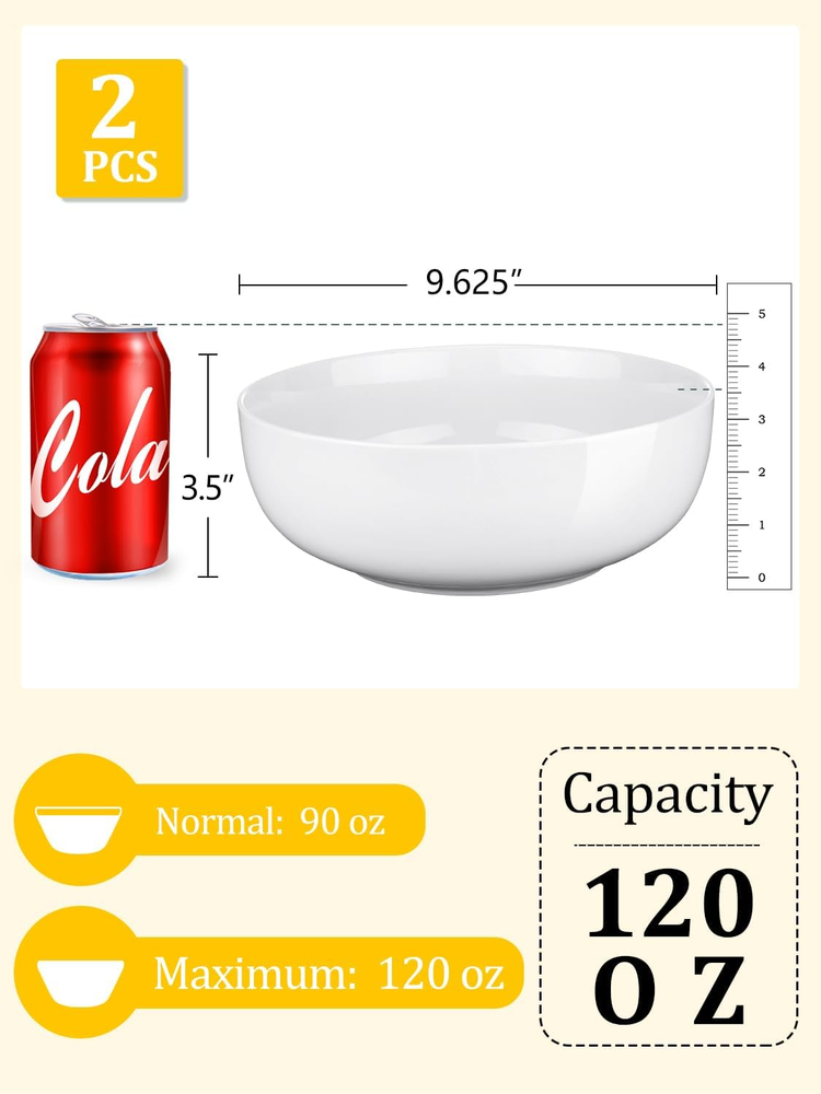 gtin13: 7445043393321 Occasion: Christmas, Wedding, Party, Dinner, Thanksgiving Product Care Instructions: Microwave Safe, Dishwasher Safe Theme: Christmas, Thanksgiving Country of Origin: China Manufacture Year: 2023 Material: Porcelain Item Weight: 7.26 pounds Style: Minimalist Item model number: Y013 Pattern: Solid Product Dimensions: 9.63"W x 3.5"H Specific Uses For Product: Pasta Is Dishwasher Safe: Yes Number of Pieces: 2 Size: 90 oz Type: Does not apply Bowl Material: Porcelain Shape: Round Brand: Does not apply Capacity: 1.2E+2 ounces Special Feature: Oven Safe, Microwave Safe, Dishwasher Safe, Scratch Resistant, Fr UPC: 7445043393321 Color: White Is Microwaveable: Yes