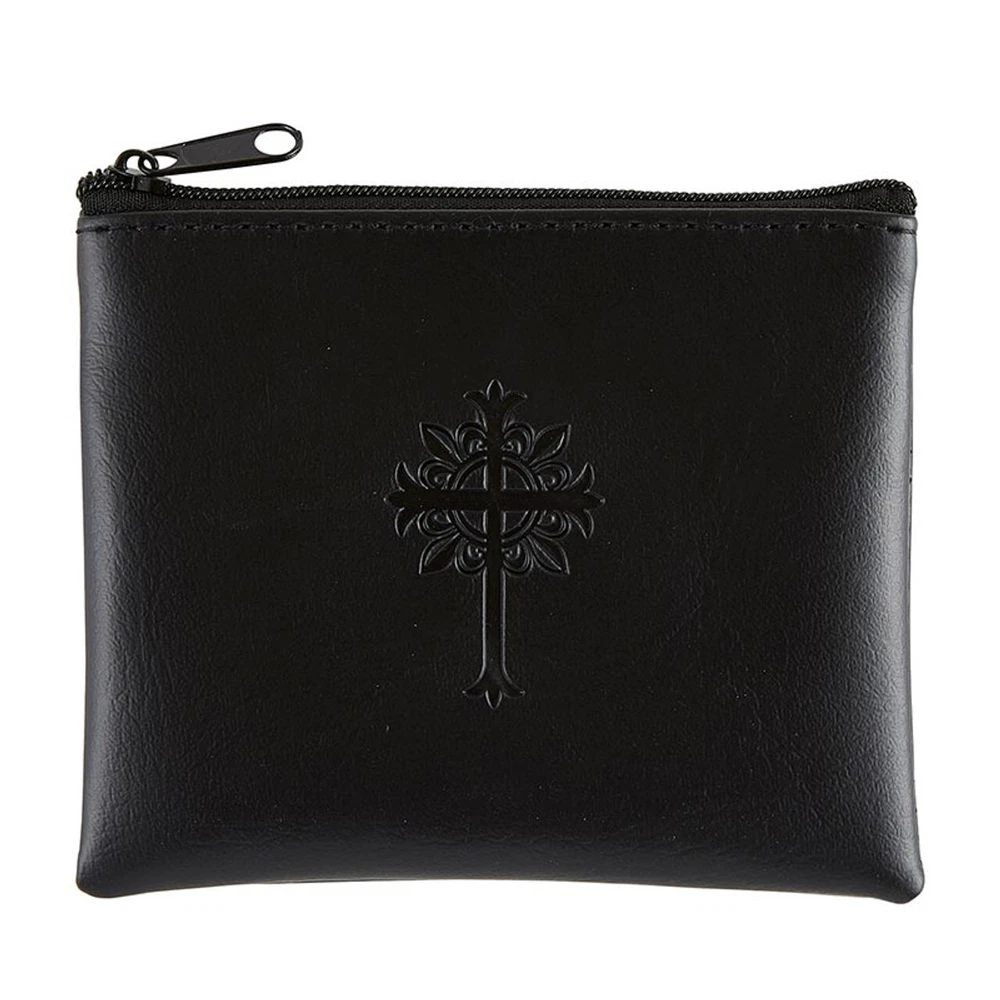 Great rosary pouch for a Large rosary! ♦ Black Imitation Leather ♦ Large size case is 4.5 W x 3.5" H ♦ Zipper Closure ♦ Case is Lined ♦ Cross Design on Front Add another item with NO additional shipping; just use cart to check out Orders over $39 ship for FREE