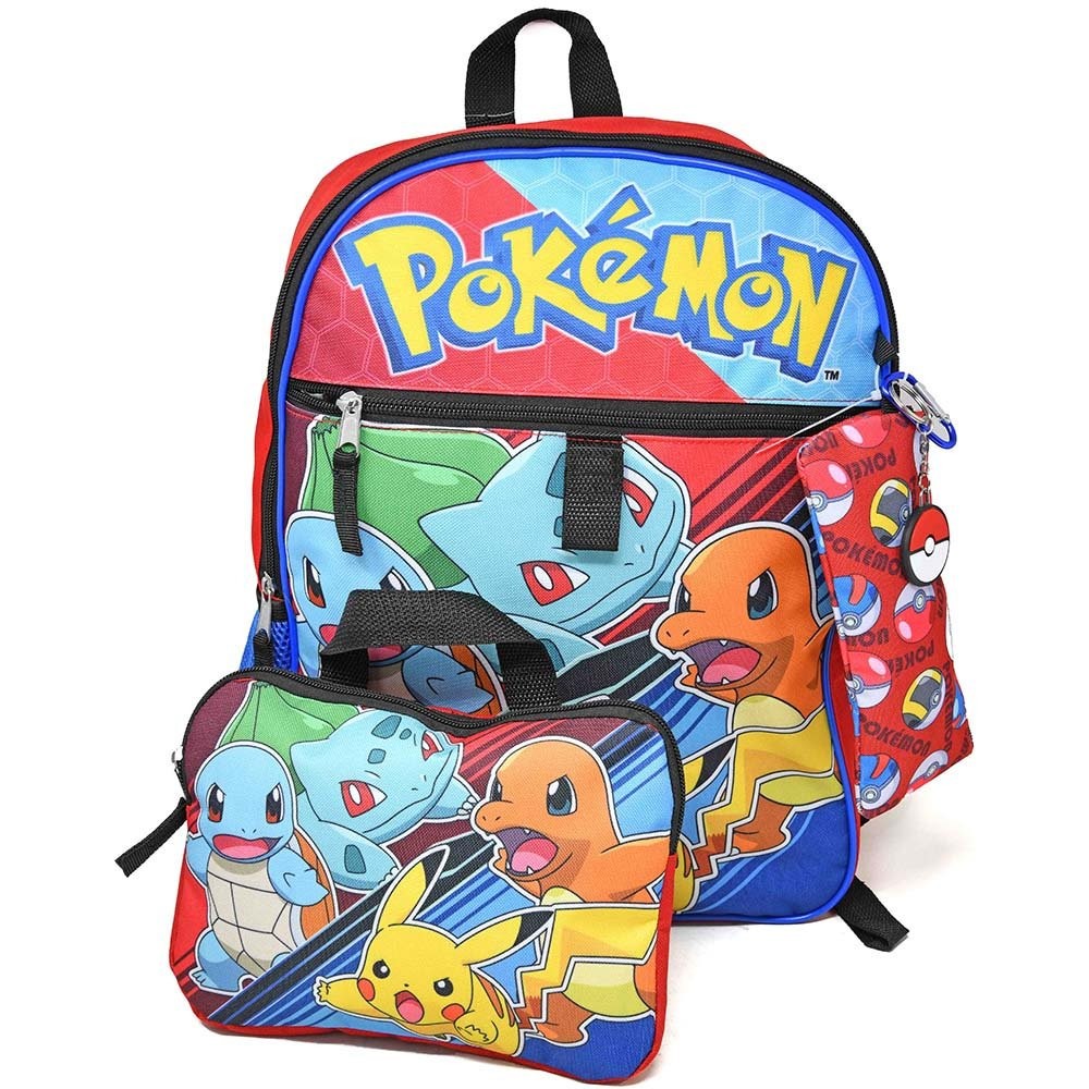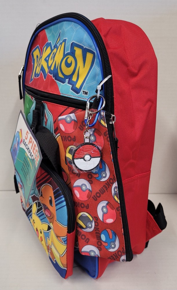 Large Backpack Pokemon Charizard 5pc Utility Pencil Case Lunch Bag Key Chain 16"