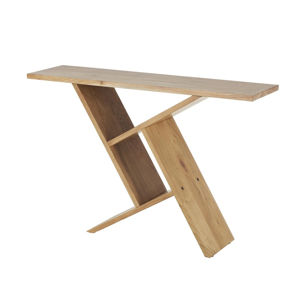 TRADITIONAL LIVING ROOM FURNITURE: Designed with timeless sophistication, rich old-world textures and warm hues come together for a refined classic taste of luxury WOOD LIVING ROOM TABLE: A combination of acacia wood and iron gives this brown living room console table a sturdy and appealing natural look BROWN HOME TABLE: Rectangle living room furniture showcases a stunning oiled brown finish, adding a touch of elegance and refinement RECTANGLE HOME CONSOLE TABLE: One of the main features of this acacia console table is its geometric patterned legs, which add a unique aesthetic appeal LARGE SIZE TABLE FOR LIVING ROOM: The brown wood console table measures 48L x 12W x 31.5H inches, and weighs 51 lbs