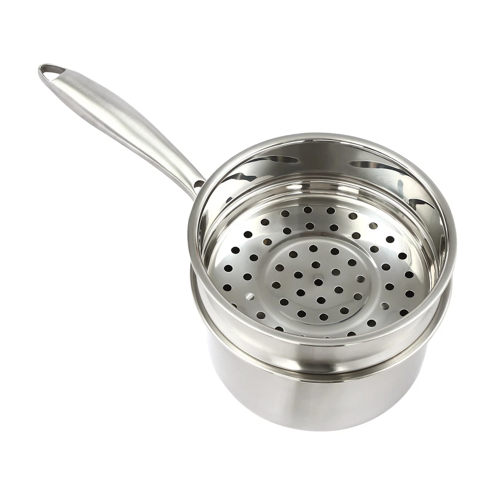 Package Included 1* Saucepan with Handle 1* Steamer 1* Lid Large Capacity Sauce Pan For Cooking With Handle Double Layer Steaming Pot Description If you like to cook food at home, then this steamer pot made of high-quality stainless steel is ideal for you. It can be used to make soups and steam a variety of foods at the same time, and its excellent heat conductivity provides you with increased cooking efficiency. One pot for two purposes, you should not miss such a convenient cooking prop, come and enjoy the fun of cooking! Specification Material: 304 Stainless Steel, 201 Stainless Steel, 430 Stainless Steel, Glass, Aluminum Process: Wire Drawing, Polishing Color: Silver Shape: Round Style: Modern Assembly Required: No Is Dishwasher Safe: Yes Is Oven Safe: Yes Capacity: 1297ml/ 1.37qt Steamer Size(D*H): 18*5.5cm/ 7.08*2.16in Saucepan Size(D*H): 14*9.8cm/ 5.51*3.85in Handle Length: 19cm/ 7.48in Thickness: 0.5mm/ 0.02in Gross Weight: 1.8kg/ 3.97 lbs Net Weight: 1.6kg/ 3.53 lbs Package Size: 35*12*18 cm/ 13.78*4.72*7.09in Package Included 1* Saucepan with Handle 1* Steamer 1* Lid Key Features Long Service Life: This product is mainly made of 304 stainless steel and 210 stainless steel and adopts wire drawing and polishing processes, making it bright and resistant to abrasion, heat, rust, and deformation and ensuring a long service life. Additionally, it adopts an uncoated design to take care of your family's health. Steaming and Cooking: This product includes a saucepan for cooking, stewing soup, making Congee, etc., and a steamer for steaming seafood, dumplings, egg custard, etc. while preserving the nutrients and flavors of the dish for a healthier and tastier dining experience. They can be used simultaneously to improve cooking efficiency. Good Heat Conductivity: The three -layer composite pot bottom design (304 stainless steel + aluminum + 430 stainless steel) can conduct heat quickly and evenly to improve the efficiency and quality of cooking without a long waiting time. Visual Design: The clear glass lid allows you to easily observe the status of the food inside the pot without removing the lid. Large Capacity: Its 1.37qt capacity can handle your breakfast, lunch, and dinner and allow you to enjoy every meal you have. Its deepening design allows you to cook more comfortably without worrying about food overflowing out of the pot. Space Saving: The overlapping design allows you to place the steamer and saucepan together, which saves tabletop space and makes your kitchen more organized. Easy to Clean: The smooth surface of the stainless steel makes it very easy to clean. After use, you can easily clean it with water and detergent or put it in the dishwasher. Good Customer Service: We stand behind all our guests and look forward to assisting you with your purchase. It is our pleasure to answer your confusion and questions. The end of the story between us is not "we sell and you buy". Details Practical Lid: This lid with a handle and ventilation hole can effectively prevent dust and insects from entering, reduce internal air pressure, and make it easy for you to open and close. Safe Handle: The 7.48" long handle is fixed with rivets and features a hollow design, ensuring firmness, providing a comfortable grip, preventing burns, and improving safety in use. Moreover, the hanging hole design at the handle end facilitates hanging the saucepan on the wall for storage. Smooth Edge: The rounded and smooth edges not only add to the aesthetics of the product but also improve the safety of use. Application It is suitable for homes, restaurants, hotels, fast food stores, and other places. It applies to a ll kinds of stoves, such as induction, electric, ceramic, or gas stoves. Notes Please note that the newly purchased product needs to be scrubbed clean with detergent and white vinegar, and should not be put into use by simply rinsing with water. The black substance washed out is the residue produced after the metal mirror treatment, which is not a product quality problem. If you can't clean it, please use hot water and white vinegar to clean it at a ratio of 10 to 1 (white vinegar shouldn't be too much), and then wash it and dry it with boiling water. Please note that washing the product with water for a long time will make the surface dull and lose its proper luster. Please avoid contact with sharp objects and strong acids and alkalis to ensure the surface is not scratched and food hygiene and safety. Please wash and dry it thoroughly after each use and place it in a dry place to avoid food grease residue, which may cause rust. Please use lukewarm water for a better cleaning effect. Sponge, dishcloth, and detergent/detergent can be used as cleaning tools. It is not recommended to use wire brushes salt and other large particles to scrub the product, which will cause the mirror surface to darken and become old. In case of sticking, it is recommended to use lukewarm water until it is soft and easy to clean. Please allow the slight color difference caused by the shooting light and the 1-3 cm error due to manual measurement, and make sure you do not mind before ordering. Payment Delivery details Terms of sales About us Contact us Payment We accept ebay payment 。 Fees such as import duties, taxes are not included in the item price or shipping costs. These charges are the buyer's responsibility. Delivery details Shipping: 2-9 working days to: USA Terms of sales We maintain high standards of excellence and strive for hundred percent customer satisfaction. Feedback is very important to us. We hope that you contact us immediately before you give neutral or negative feedback, so that we can address your concerns. It is impossible to address issues if we do not know about them! About us Your satis faction is our ultimate goal. We work hard to earn your trust and future business. Our certified technicians have tested each item before shipping. The unit comes with 1 year limited warranty on all manufacturing d