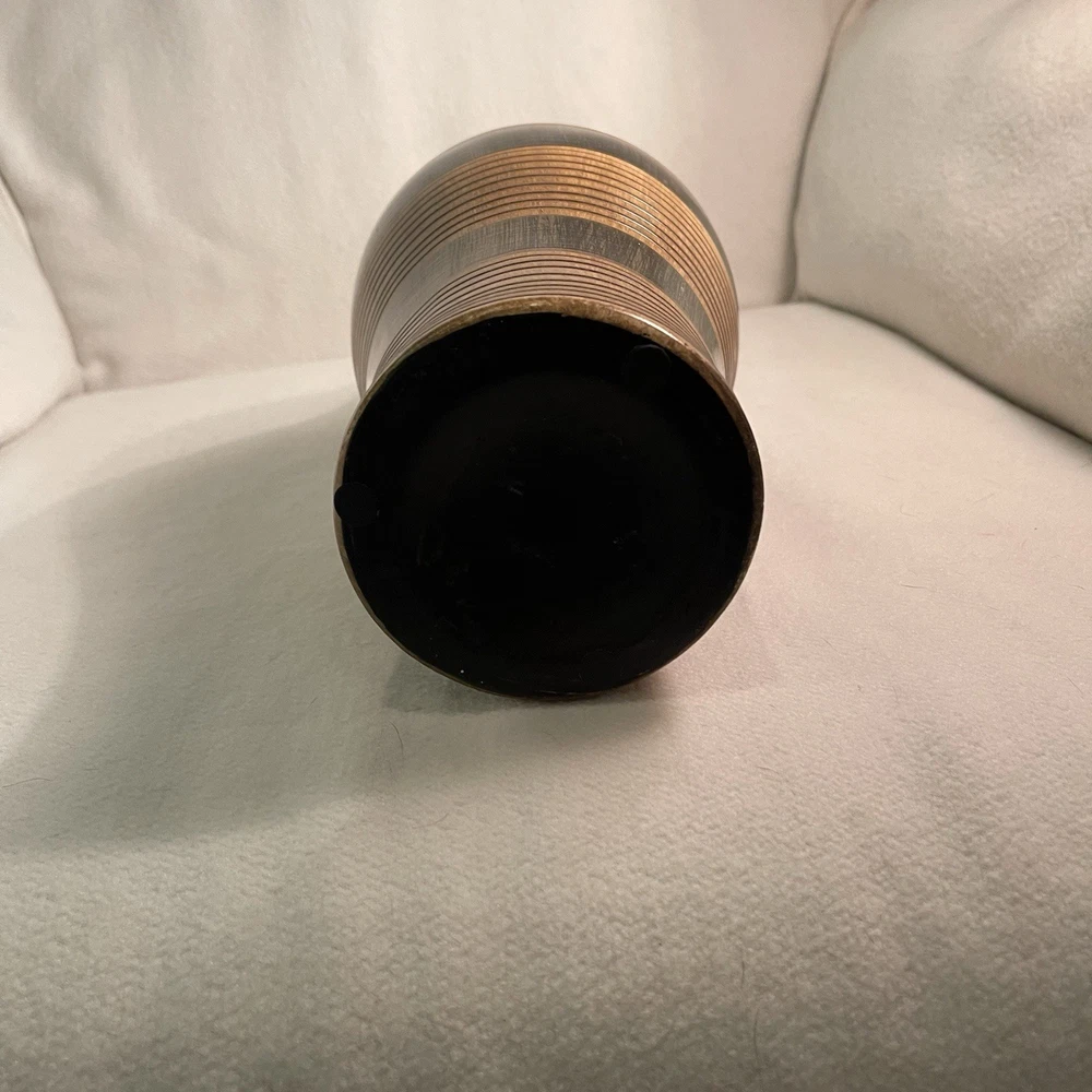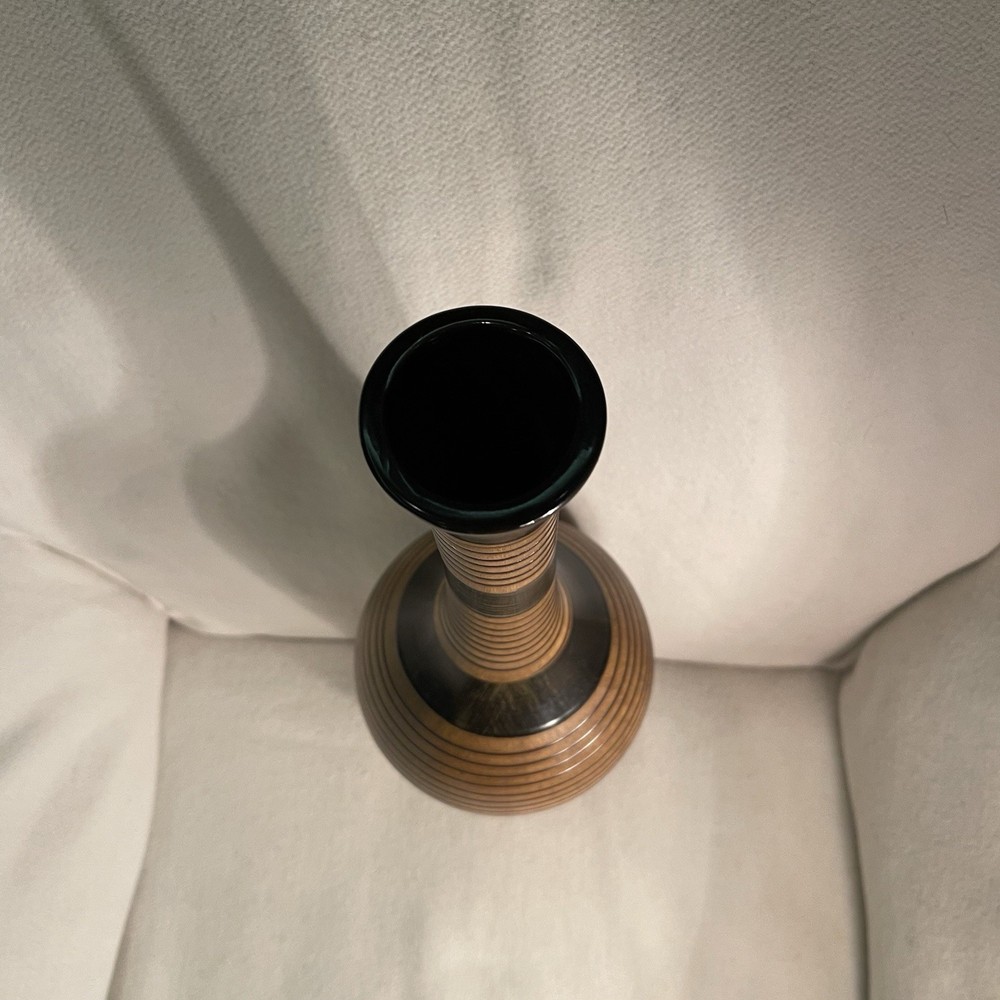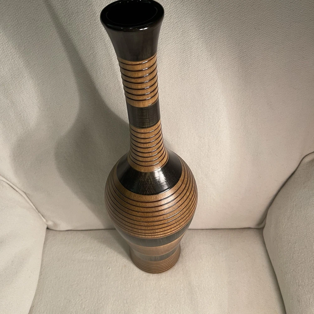 Elevate your space with a touch of rustic elegance. This 19-inch ceramic vase offers a unique wooden texture that brings the beauty of nature into any room. Its brown color scheme and circular pattern evoke a country-style charm, perfect for those who appreciate the simplicity of the earthy aesthetic. Designed to serve as a decorative piece, this art vase is both versatile and eye-catching. The varying width dimensions of the top, middle, and bottom provide a dynamic visual appeal, while its sturdy weight of 2.1 lbs ensures it stands firm as a centerpiece or on a mantel. Ideal for anyone looking to add a vintage-inspired, nature-themed accent to their decor collection. Excellent condition. No chips or cracks.