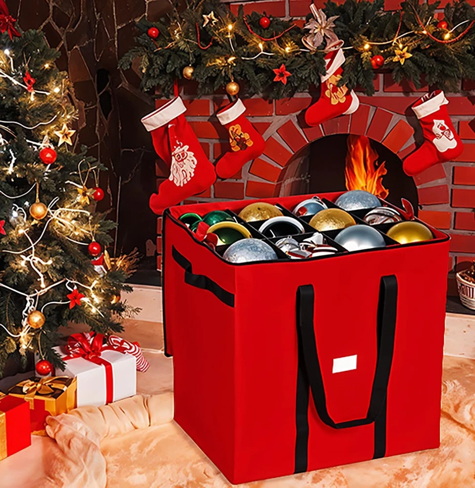 Christmas Extra Large Ornament Storage Container - Box Stores Up to 48 – 6” Ornaments – With 4 Individual Trays -Heavy Duty 600D Tear Resistant Material, Zippered, Adjustable Dividers. Product Details Size: 48 6" Ornaments Color: Red Brand: HOLDN’ STORAGE MPN: 6445248 UPC: 850027756479 EAN: 0850027756479 Brand: HOLDN’ STORAGE Material: Tear-Resistant 600D Color: Red Product Dimensions: 24.75"L x 18.75"W x 24.5"H Special Feature: Stackable, Adjustable Dividers, Zippered Lid, Impact Resistant Recommended Uses For Product: Decorations Closure Type: Zipper Shape: Rectangular Number of Items: 1 Size: 48 6" Ornaments Brand: HOLDN’ STORAGE Material: Tear-Resistant 600D Color: Red Product Dimensions: 24.75"L x 18.75"W x 24.5"H Special Feature: Stackable, Adjustable Dividers, Zippered Lid, Impact Resistant Recommended Uses For Product: Decorations Closure Type: Zipper Shape: Rectangular Number of Items: 1 Size: 48 6" Ornaments Number of Sets: 1 UPC: 850027756479 Manufacturer: HOLDN’ STORAGE Part Number: 6445248 Item Weight: 10.33 pounds Item model number: 6445248 Style: Modern Pattern: Solid Number Of Pieces: 1 Special Features: Stackable, Adjustable Dividers, Zippered Lid, Impact Resistant Included Components: Carry Handles Batteries Included?: No Batteries Required?: No Date First Available: September 15, 2022 600D Tear resistant TEAR RESISTANT 600D MATERIAL: This Christmas Ornament Storage Container will keep your decorations safe and secure. The chest is made of premium quality 600D Tear-Resistant Material. The storage container features durable zippers for easy opening and closing and 4 individual stackable trays that can hold up to 48 - 6-inch ornaments. EASY TRANSPORT-DUST PROOF DESIGN: This Christmas Ornament Storage Container comes with 4 individual trays to make your tree decoration fun and hassle free. Container measures 24.75 W x 18.75 D x 24.5" H. The durable cardboard dividers can be adjusted to store big or small or oddly shaped ornaments into the cubes. No need for multiple containers. Recommended for Extra Large Ornaments. STURDY HIGH-QUALITY CONSTRUCTION: Engineered for a lifetime of quality and service this Christmas Ornament Storage Box is made of highly durable, heavy-duty cardboard, a non-tear 600D exterior. This holiday storage container preserves your ornaments from dirt, dust and debris while the dividers prevent them from bumping into each other preventing breaks. Recommended for Extra Large Ornaments. CHEERFUL & FUN HOLIDAY COLORS: The storage container comes in cheerful holiday colors and includes a clear identification card slot so you can label it and readily identify it from your other storage boxes. Durable handles allow you to comfortably carry the container or the tray anywhere. Unlike other trays, ours have side walls ensuring that the ornaments won't slide off