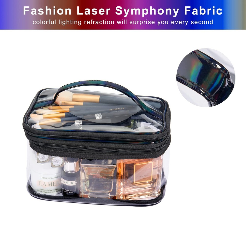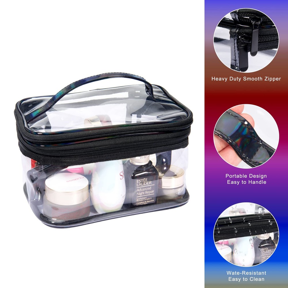 Lermende Large Clear Makeup Bag, 2 Layer Portable Makeup Organizer Bag Water-Resistant PVC Travel Makeup Pouch Laser Cosmetic Bag For Girl and Women (upblack) 💅Double Layer Design& Large Capacity: The clear travel cosmetic bags features double layers, can keep your makeup brushes and beauty tools from your liquid bottle skincare product as well as seperate wet product from Dry.Help you keep reusable clear toiletry bags tidy at all times. 💅Transparent & Water-Resistant:Large makeup bag clear made of Premium transparent PVC material, the transparent appearance makes it easier for you to find what you need and save you time,no more hassle on airport checking ; High water-resistant function can effectively prevent liquid leaking out and staining your clothes . It is great clear travel cosmetic bags for your travel. 💅Thick Portable Handle Design : With Thickness laser leather Cosmetic bag , you are freely to carry on your travel organizers anytime to anywhere you want . 💅Well Design Cosmetic Bag: Compared with ordinary clear makeup toiletry bags , This large travel pouch adopt 3 Reinforced skeletons which More stressed and storage more ; the 2-way alloy double slider design is smoother and more convenient to take. 💅Fashion Laser Elements: Integrated with laser illusion elements, which is brilliant and dazzling under sunshine , Your every second has a surprise with colorful spectrum refraction . Bring your family and your toiletry bag to tavel along ! SHIPPING Domestic Buyers - We have confidence in our products, but if you are not fully satisfied please contact us within 30 days of purchase and you will get full refund. - We ship within 3 business days of payment, usually sooner - We offer FREE shipping on all orders! - We only ship to the lower 48 states, no APO/FPO addresses or PO Boxes allowed International buyers – please note: Import duties, taxes, and charges aren't included in the item price or postage cost. These charges are the buyer's responsibility. - Please check with your country's customs office to determine what these additional costs will be prior to bidding or buying. * Order Cancellation Policy ** You can return a product for up to 30 days from the date you purchased it. 1. The seller reserves the right to cancel the special case only due to eBay cancellation fee. 2. The decision of seller is the final. 3. The seller will respond to the cancellation request within 2 business days. Please wait for the result of cancellation. 4. In case the cancellation is not completed by some reasons, the buyer can follow the options below to get the refund. 4.1 The buyer can reject the item when it arrives. 4.2 The buyer can send the item back to the seller within 30 days If the buyer receives item (USA Shipment ONLY). The seller will provide the FREE return label to the buyer when the buyer opens " Return Item" case on eBay by using the reason as "Change my mind" ONLY. 5. When buyer has placed the order. The order will be processed and completed by automatic warehouse system within 5 minutes. In case that buyer sends the cancellation request after 5 minutes of placing the order, the request will be rejected. **Sending direct message to cancel the order is not allowed for every case.* Return Policy For the return case - If buyer would like to return the items for refund or replacement, please CONTACT SELLER to receive the free return label from seller. The refund or replacement will be processed with the tracking number of return label which is provided by seller only. The other ways of return which are not approved by seller will not be processed for the refund or replacement.