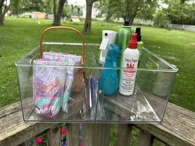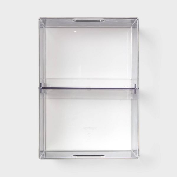 This Large All Purpose Clear Storage Bin with Adjustable Divider is your ultimate companion for decluttering. Made from recycled PET material, this rectangular storage bin is clear in hue, letting you see the contents, and the adjustable dividers offer flexibility for convenient storage. Featuring cut-out handles for easy portability, this 560-cubic-inches bin is ideal for storing various seasonal items in compact spaces.