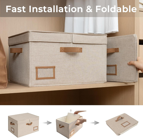 StorageWorks Large Clothes Storage Bins, Fabric Boxes with Divider Board, Baskets for Clothes, Linen Closet Organizers with Lid, Mixing of Brown & Beige, 2-Pack LuxeFusion Product Description Features Large Capacity: 42 L fabric storage bin easily holds bedding, seasonal clothes, sweaters, etc., making it a great helper for organizing household items. Versatile Storage: The removable T-shaped divider in these decorative storage boxes provides flexible closet storage solutions. Handles & Label Holder: PU handles and a label holder make these storage bin organizer easy to use and identify. Flip-Top Lid: Decorative storage bins with practical dual-opening lids that could keep your items clean and organized. Stackability & Foldability: With a sturdy structure, the closet storage organizers are stackable and easy to assemble. Product Details Brand: StorageWorks Color: Mixing of Brown & Beige Material: Cotton Blend Recommended Uses For Product: For Clothes Product Dimensions: 19"L x 14"W x 10"H Capacity: 42 Liters Shape: Rectangular Number of Items: 2 Unit Count: 2.0 Count Item Package Quantity: 1 Item Weight: 4.33 pounds Manufacturer: StorageWorks Country of Origin: China Item model number: SW0008DLBN2Q2 Finish types: Unfinished Batteries required: No 🚚 Free Shipping All orders ship free and fast to your doorstep. 🔁 Easy Returns Satisfaction guaranteed. 30-day returns, no questions asked. 💬 24/7 Support Contact us anytime; we’re here to help, day or night. Brought to you by LuxeFusion – Quality you can trust.