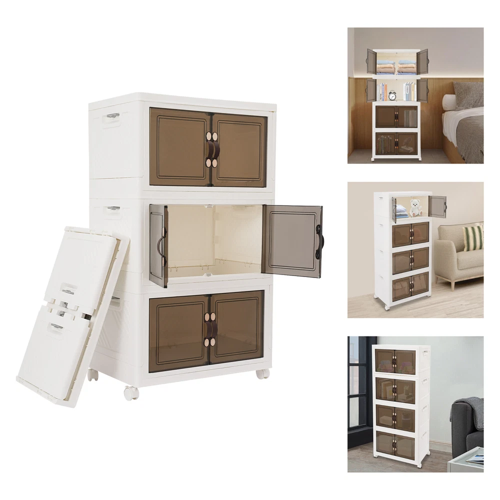 Large Collapsible Storage Bins Bedroom Folding Storage Box Stackable Storage Box Welcome to our store~ Description Our storage box is an efficient storage solution designed for modern home and office environments. It not only has a simple and generous appearance but also has a large space with 4 tiers, which can meet the user's needs for categorized storage of clothing, documents, books, snacks, miscellaneous items and other items, making it an ideal choice for enhancing the tidiness of your living and working space. Key Features Made to Last: High-class PP material and exquisite injection molding process make this product sturdy, scratch-resistant , impact-resistant , and not easy to corrode and deform, ensuring a long service life. Excellent Storage Function: Its large space and weight capacity of around 16.53lbs makes it big enough to hold your clothes, snacks, books, toys and various other items, creating a neat storage space for you. Space Saving: The foldable structure design allows you to place it under your bed, under your sofa or in a corner without taking up too much extra space. Humanized Design: Translucent cabinet doors not only make it easy to find your stored items, but also protect the interior items from dust buildup and have good waterproof performance. Move at Will: Four universal wheels help you move around easily and make it convenient for you to sweep the floor. Two of them come with brakes to hold it in place and prevent it from sliding away. Simple Installation: The product structure is simple and does not require complex assembly procedures. The fixed slots on the top allow you to overlap multiple boxes, and sliding latches helps you quickly expand and fix the product. Modern Appearance: The product's simple structure, stylish appearance, and smooth lines enable it to match a wide range of home decor. Ideal Gift: With good performance and a modern appearance, you can give it as an ideal gift to your family or friends to create a neat and tidy home environment for them. Buy with Confidence: We stand behind all our guests and look forward to assisting you with your purchase. It is our pleasure to answer your confusion and questions. The end of the story between us is not "we sell and you buy". Details Practical Handles: The handles on the doors help you to open the cabinet doors more easily. Magnetic Double Doors: The double opening magnetic cabinet doors make it easy for you to open the door and access your items. Application This product is suitable for storing clothes, shoes, books, stationery, cleaning products, and various other items in bedrooms, living rooms, etc. Specification Material: PP Color: White, Clear Black Process: Injection Molding Style: Modern Assembly Required: Yes Mounting Type: Free Standing Number of Wheels: 4(2 with Brakes) Number of Pieces: 4 Product Size: 55*35*123cm/21.65*13.78*48.43in Package Size: 58.5*39*38.5cm/ 23.03*15.35*15.16in Each Box Max. Load Capacity: About 7.5kg/16.53lbs Gross Weight: 7.3kg/ 16.09lbs Net Weight: 6.94kg/ 15.3lbs Package Included 4* Storage Boxes 4* Wheels Other Accessories for Assembly Notes Please note that items such as towels, snacks, and books are not included in this product. Please use this product within its load-bearing capacity to avoid damage. Please allow the slight color difference caused by the shooting light and 1-3cm error due to manual measurement, and make sure you do not mind before ordering. Payment Delivery details Terms of sales About us Contact us Payment We accept ebay payment 。 Fees such as import duties, taxes are not included in the item price or shipping costs. These charges are the buyer's responsibility. Delivery details Shipping: 2-9 working days to: USA Terms of sales We maintain high standards of excellence and strive for hundred percent customer satisfaction. Feedback is very important to us. We hope that you contact us immediately before you give neutral or negative feedback, so that we can address your concerns. It is impossible to address issues if we do not know about them! About us Your satis faction is our ultimate goal. We work hard to earn your trust and future business. Our certified technicians have tested each item before shipping. The unit comes with 1 year limited warranty on all manufacturing defects. a) If you receive a defective item, you may return it or ask for a discount. Please contact us within 14 days after you receive the package. b) What you returned must be intact and in its original packaging as re? u. Customer is responsible for shipping costs of the returned item. c) We will cover the cost of shipping back t with the shipping rate indicated in the registration page. We will send you a new unit or refund the full payment you paid. Thank you. Contact us Business Hour Business Hour: Monday To Friday: 8:30 AM to 5:00 PM (Beijing China time) Due to time zones, our reply to your questions may not be immediately. But within above working time, we will reply your email within 24 hours. If it's non-workdays, please kindly be patient and wait till Monday. Please contact us with ebay message. Please feel free to contact us if you have any questions. Monday To Friday: 8:30 AM to 5:00 PM (Beijing China time) Due to time zones, our reply to your questions may not be immediately. But within above working time, we will reply your email within 24 hours. If it's non-workdays, please kindly be patient and wait till Monday. Please contact us with ebay message. Please feel free to contact us if you have any questions. Feature 1 Easy installation,Convenient Use,Easy Operation * Feature * Nice and Practical, High Quality Packaging Brand Unbranded Item Height 123cm/48.43in Item Length 55cm/21.65in Item Width 35cm/13.78in Type Storage Box Material PP Mounting Free Standing Assembly Required Yes Color White, Clear Black Capacity About 7.5kg/16.53lbs (Each Box) Item Weight 6.94kg/15.3lbs Style Modern