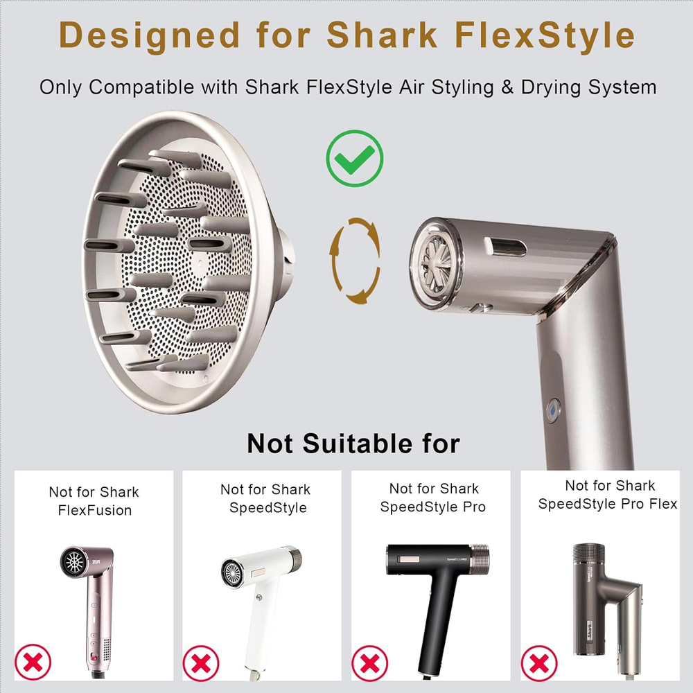 Store New Arrivals Add to Favorite View Feedback Contact Large Diffuser Attachment Suitable for Shark Flexstyle, Upgraded Larger Shark Di Description Color White Product Dimensions 5.5 x 5.5 x 3.13 inches; 5.93 ounces Bigger Size, Less Time: This new upgraded 5.7 inch shark diffuser attachment features an enlarged, reinforced design that generates 15% more airflow than previous versions, cutting your hair drying time in half while protecting hair quality Curl Enhancement: The shark flex style diffuser attachment reaches the hair roots to add volume to curls of any length, delivering professional results in less time Heat Protection: Even with extended use of this shark diffuser, our thermal protection system safeguards hair during styling, ensuring each application leaves strands healthier and more luminous than before Salon-Quality Results: The shark flex style diffuser is expertly crafted for wavy, curly and coily hair types, enhancing your natural curl pattern with lasting bounce and elasticity - delivering salon-quality results from the comfort of home Designed for Shark: The shark flexstyle diffuser attachment seamlessly integrates with shark flexStyle, featuring tool-free click-on/click-off functionality and effortless cleaning - ensuring a completely hassle-free styling experience after every use Product description Niluks Large Diffuser Attachment for Shark Flex Style Extra-large Size + Extended Nozzle = A Whole New Experience 10% longer nozzle for root stimulation 15% more airflow vs. standard dryers Comes with a specially designed travel pouch for this diffuser Wake up your hair's natural beauty Single-piece Formed Surface Seamless one-piece surface with no visible joints or exposed screws—rust-proof for long-lasting reliability Feature of Shark Flexstyle Diffuser 1 Wavy 2 Curly 3 Coily Which shark products is this diffuser suitable for? This shark diffuser attachment compatible with Shark FlexStyle HD400 series, not for the SpeedStyle series products. Is this shark flex style diffuser attachment easy to use? Yes, this shark diffuser features a snap-fit design for tool-free installation and removal. Is this shark flex style diffuser portable? Yes, comes with a free travel storage bag for easy carrying and protect this shark flexstyle diffuser. Is this shark hair dryer diffuser only an attachment? Yes, attachment only, styler not includeed ABOUT US We offer the best prices around on high quality products. Our E-store includes media such as books, movies, music and games while offering electronics, toys, sporting apparel, clothing, tools, general home, garden items and more. SHIPPING We are always working hard to ensure your package arrives as soon as possible. Please understand that some factors like weather, high postal traffic, and the performance of shipping companies are outside of our control. We offer free shipping to the lower 48 states and ship within 2 business days of payment, usually sooner. We do not accept P.O. Boxes. Please provide a physical address. For shipping outside of the continental USA, we only use eBay's Global Shipping Program.The item is shipped to KY and then sent to the rest of the world. International customers are responsible for all duties and taxes. Continue to check out in order to calculate costs for shipping the item to your country. Messages regarding eBay's Global Shipping Program MUST be directed at eBay EXCLUSIVELY. RETURNS We offer a 30-Day Return Policy on items which you are not completely satisfied with. You have the option for a full-refund or an exchange of the item. No returns are available on items shipped outside of the USA. PAYMENT We accept PayPal. CONTACT US This page content is yet to come Please ad us to your favorite seller and visit again later Thank You CUSTOMER SATISFACTION We try our very best to make sure every customer is completely satisfied. If there's a problem, message us! We're happy to help. WE ACCEPT Copyright © 2021 AutoDS. | All Rights Reserved