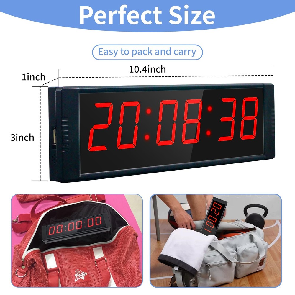Large Stopwatch Timer with Start/Stop Button, LED Digital Wall Timer with Remote, Countdown Timer Clock with Buzzer, Gym Timer Clock for Home Gym, Interval Timer for Workout Multiple Timing Functions – Gym Timer features a 12/24-hour digital display with start/stop buttons, alarm function, count-up/countdown timer, interval timer for workouts, and a stopwatch accurate to milliseconds. Choose from 3, 5, or 10-second lead times for added flexibility. This versatile digital timer is perfect for home gyms and fitness enthusiasts Pushbutton & Remote Control – The unique external pushbutton design makes timing easy and enjoyable. The pushbutton cord extends up to 200 inches, allowing you to start, stop, resume, or reset your gym timer with ease. You can also control all functions using the included remote, which has a control range of up to 30 feet Super Bright LED Digital Display – With a visibility range of up to 40FT, the large, bright LED display ensures you can easily read the gym clock from a distance. Whether you're using it as a countdown clock, interval timer for workouts, or a general digital timer, it’s the perfect tool for staying on track during your training. It also makes a great gift for fitness enthusiasts and gym-goers Portable & Compact Design – Measuring 26x8x2.5 cm, this portable workout timer is lightweight and easy to carry in your gym bag. Track your workout time anywhere, ensuring you stay on top of your fitness goals, whether at home or on the go. It's the ideal digital timer for both personal and professional use in your home gym Versatile Applications – This countdown timer is perfect for a wide range of activities, including work, study, training, games, cooking, and more. It can also be mounted on the wall to double as a digital clock with a clear, easy-to-read display. Whether you need a gym timer for your workout or a digital timer for everyday tasks, this timer is up to the challenge