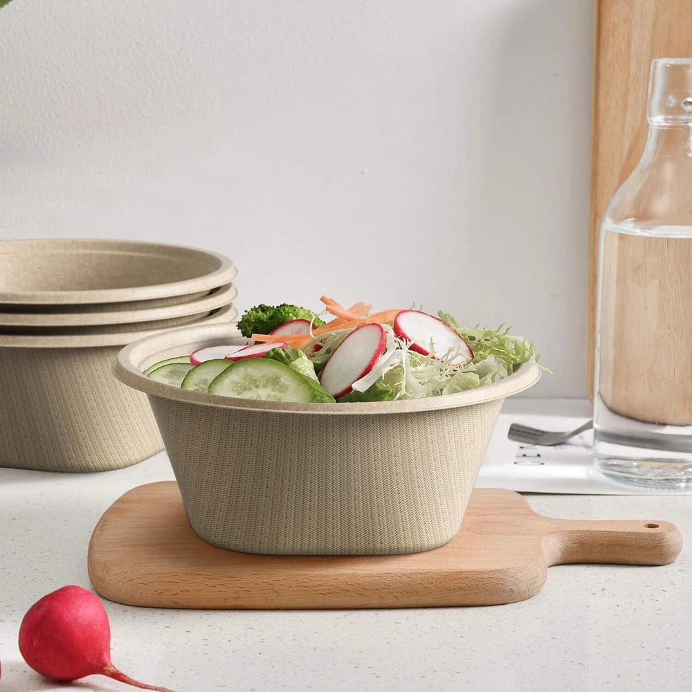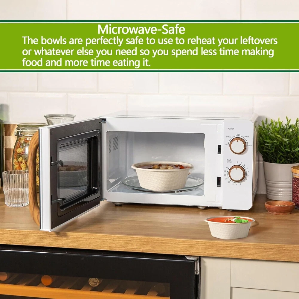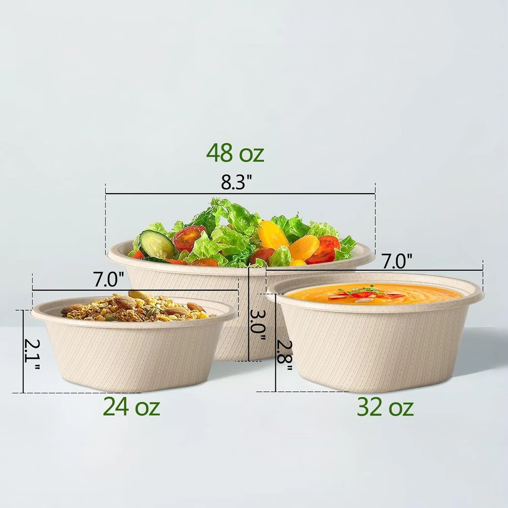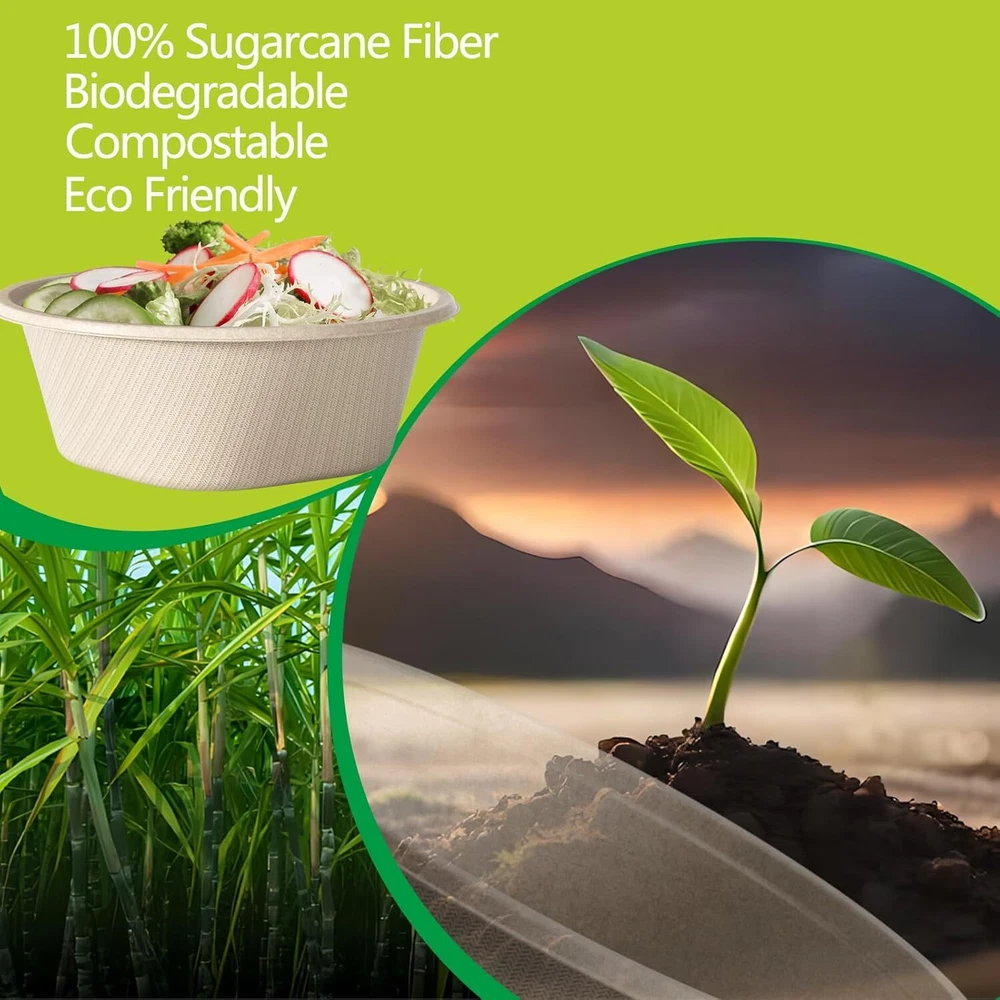 💖【Eco Friendly Sugarcane Fiber】paper bowls are made of 100% sugarcane fiber, which is a sustainable, renewable, and biodegradable material. Biodegradable bowls are free of bisphenol A, wax, gluten, and chemicals. ♻【Compostable paper bowls】Our disposable bowls will degrades quickly, bio-based materials free of harmful chemicals keeping your food safe to eat. Under ideal conditions the recyclable bowls can decompose in 3-6 months. Compostable at any home or industrial facility per regulations and standards. ✅【Freezer & Microwave Safe】 Our large soup bowls are microwave and freezer safe, they can be used for hot and cold food. These disposable serving bowl have good oil-resistant, heat-resistant, and cut-resistant. When you use them, you don't need to worry about them breaking. 🥣【Heavy Duty 】disposable salad bowls are made of high thickness without plastic lining. Their design has excellent strength, cutting resistance, and leak resistance, which will not break or crack even under full bowl pressure. The disposable bowls for party perfect for serving for salad, dessert, ice cream and soup, as well as other hot and cold food. 🍀【High Quality and Service】are committed to providing the most comprehensive customer service. If you have any questions about our large paper bowls, please feel free to contact us at any time.