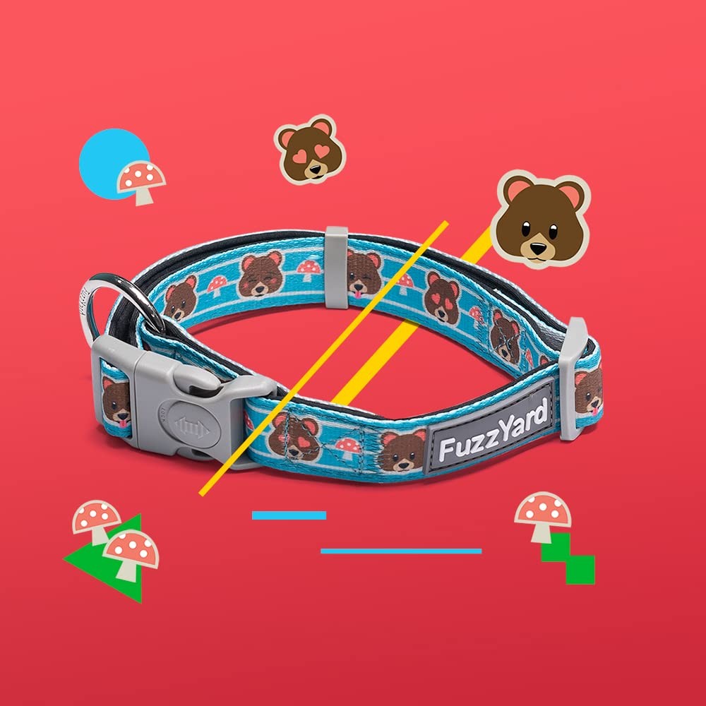 The cutest bear you'll see! Fuzz Bear is the adorable character you'd want on your dog's walking acessories, guaranteed to get lots of compliments at the park! Every collar features a sturdy die-cast attachment ring and thick cushioned webbing for durability and the most comfortable fit.This spongy neoprene collar is lightweight, won't rub on your dog's fur and is quick drying.Complete the look by matching your dog’s collar with its companion lead or walking harness. The cutest bear you'll see! Fuzz Bear is the adorable character you'd want on your dog's walking acessories, guaranteed to get lots of compliments at the park! Every collar features a sturdy die-cast attachment ring and thick cushioned webbing for durability and the most comfortable fit.This spongy neoprene collar is lightweight, won't rub on your dog's fur and is quick drying.Complete the look by matching your dog’s collar with its companion lead or walking harness. Small: 25-38cm (9.8-14.9 inch) / width - 15mm (.59 inch) Medium: 32-50cm (12.5-19.6 inch) / width - 20mm (.79 inch) Large: 50-65cm (19.6-25.5 inch) / width - 25mm (.98 inch)