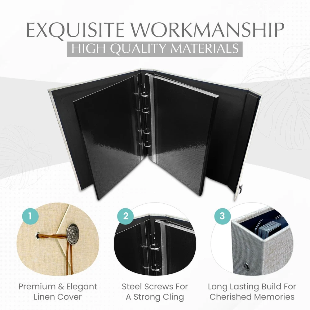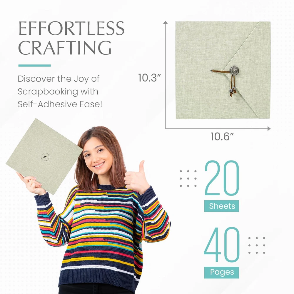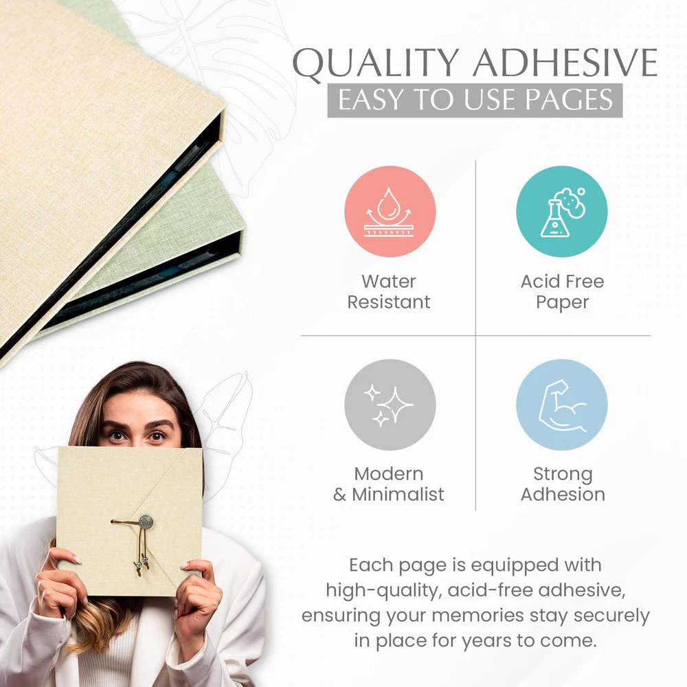 AMPLE STORAGE CAPACITY: This large photo album is sized at 10.2"L x 10.6"W with self-adhesive pages of 10.1"L x 7.6, providing 20 sheets/40 pages, capable of holding up to 80 cherished photos sized at 3x5, 4x6, and 5x7. There’s plenty of room to capture your life’s most treasured moments! ACID-FREE PROTECTION: Say goodbye to those annoying photo corner stickers. Featuring a high-quality protective film, this picture album ensures that all the text on photos remains intact and unfaded. Shield your photos from air oxidation and other pollutants to ensure the images remain timeless. SELF-ADHESIVE: Our family photo album flexibly fits photos of all sizes – 3x5, 4x6, 5x7 inches – along with tickets or souvenirs if they hold some sentimental value. The reusable pages allow for easy adjustments to your display, so you can carefully curate your memories in the way that suits you. ELEGANT LINEN COVER: Your new photo album book boasts an exquisite, retro style, with the durable linen cover not only enhancing the aesthetic appeal but also ensuring lasting longevity. You can properly safeguard your precious memories with style and grace when you choose . PERFECT GIFT CHOICE: Whether you use this picture album as a travel journal, wedding album, or baby's growth tracker, this scrapbook is the ideal gift for special people. Surprise loved ones on special occasions like Valentine's Day, Mother’s Day, or anniversaries, and continue making memories!