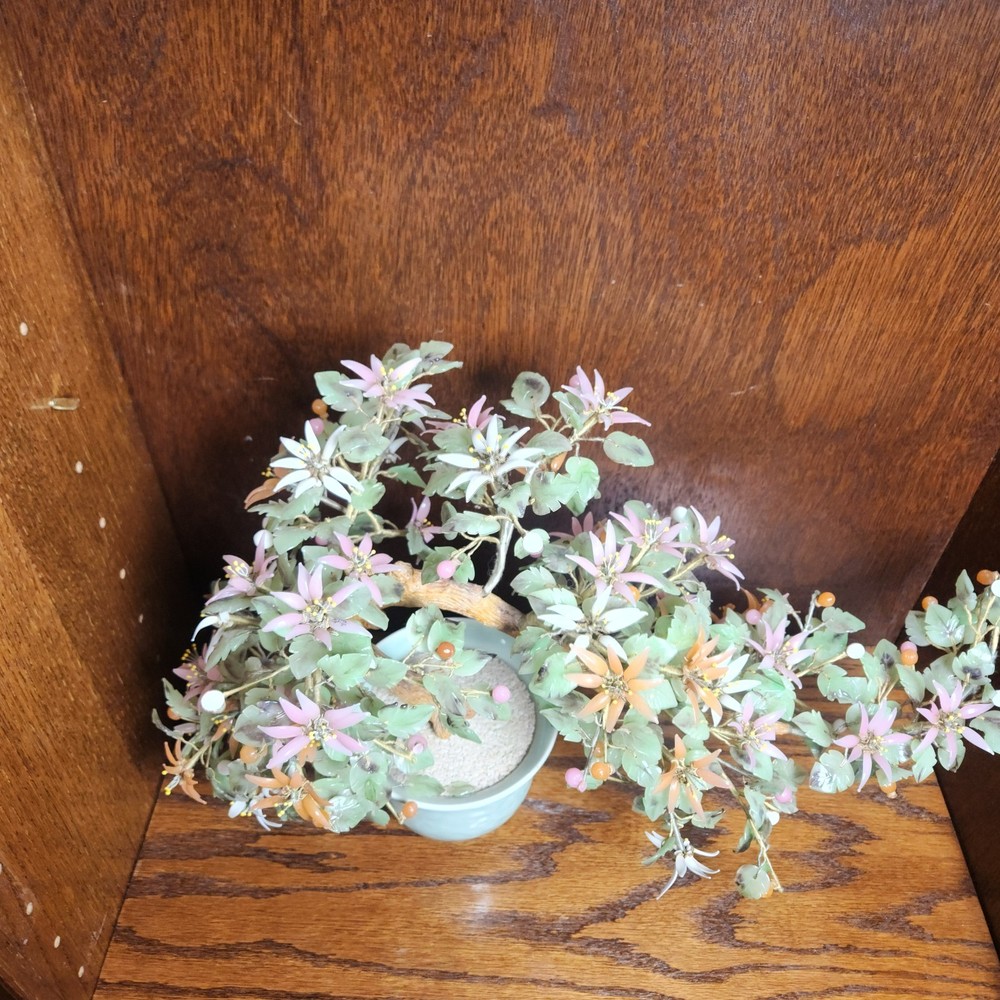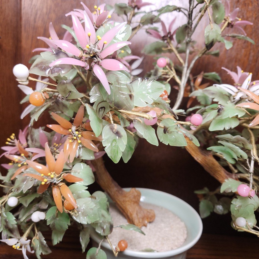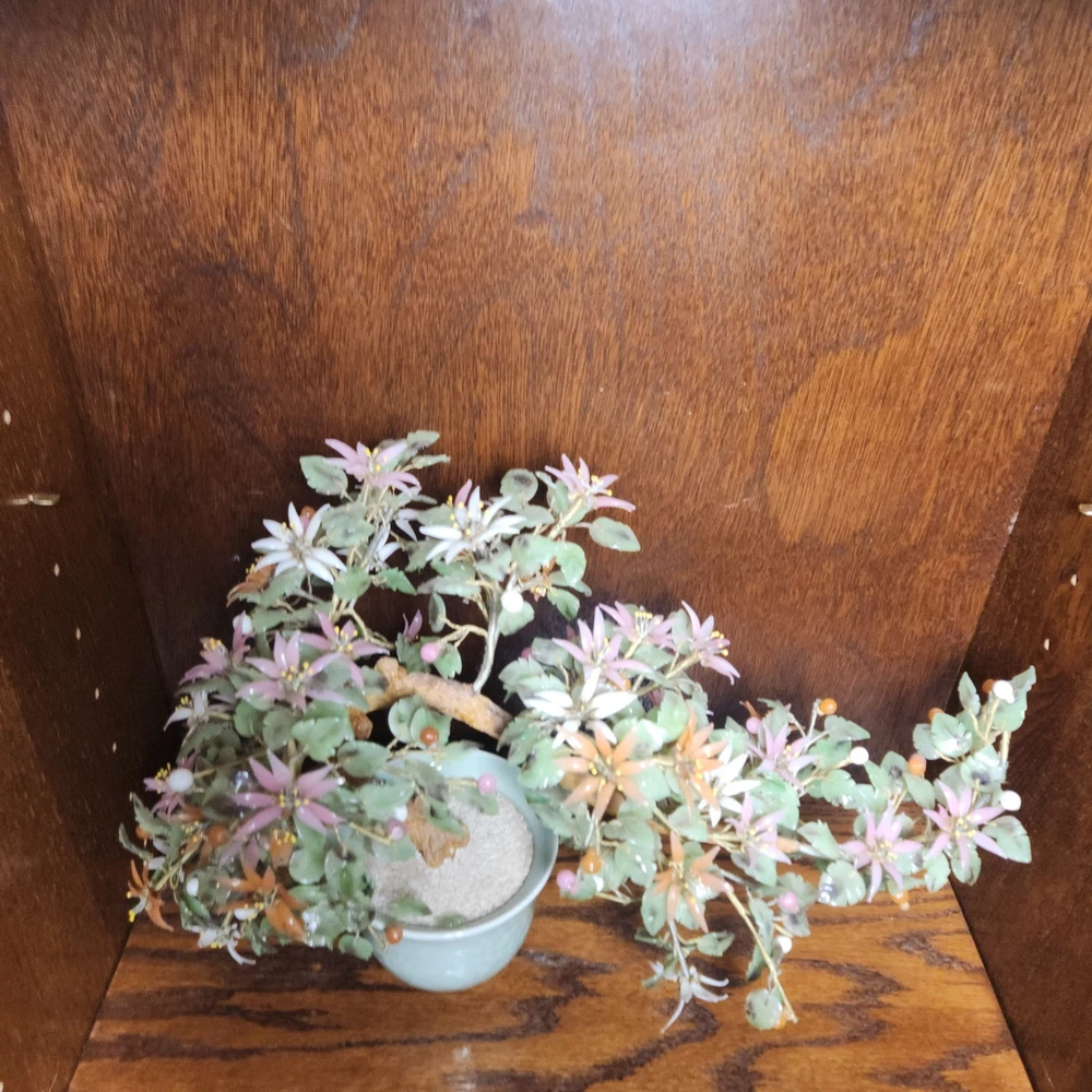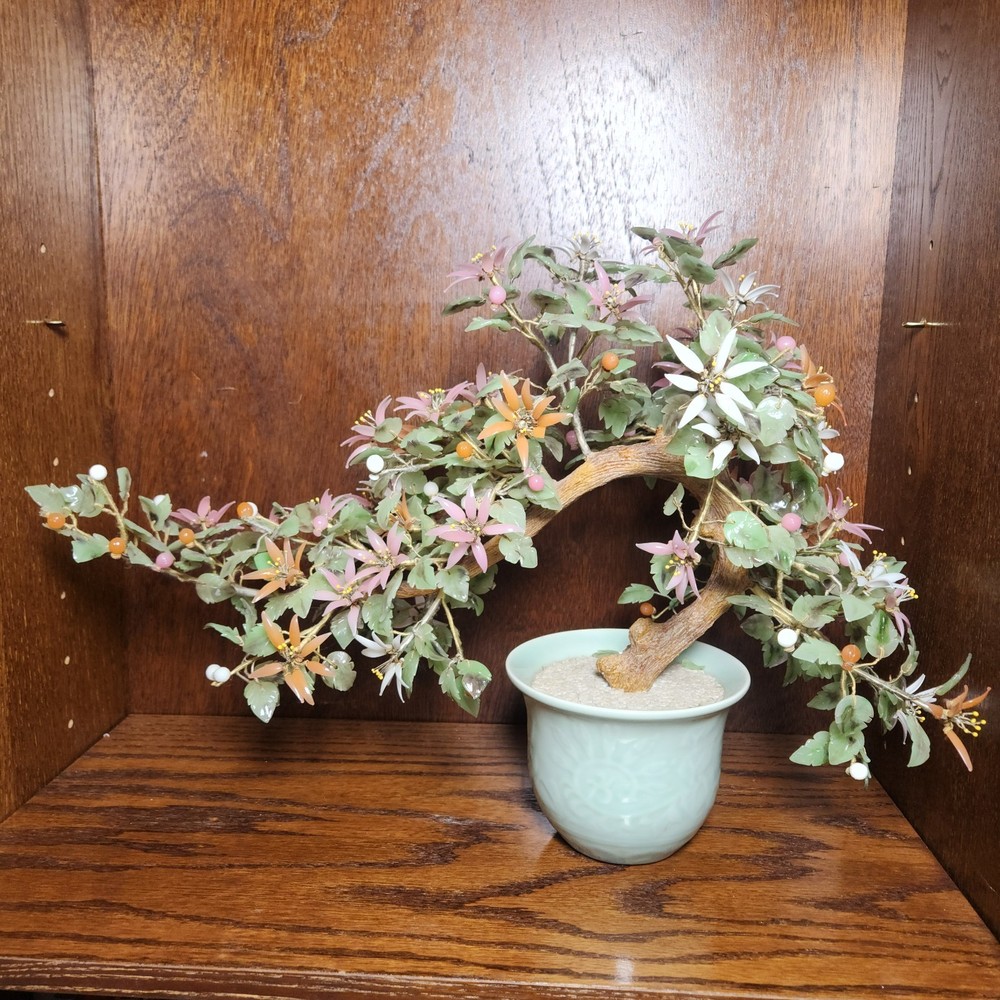 $ 66.0Large Chinese Jade Quartz Stone Glass Flower Bonsai Tree Vintage