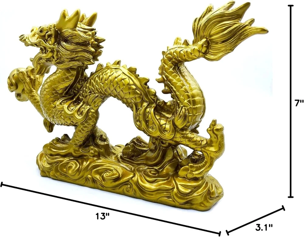 Large Gold Dragon Figurines - 13-Inch Feng Shui Decor for Fortune & Protection ‹ › ‹ › ‹ › ‹ › ‹ › ‹ › ‹ › ‹ › ‹ › Large Gold Dragon Figurines - 13-Inch Feng Shui Decor for Fortune & Protection Welcome prosperity and safeguard your space with our stunning Large Gold Dragon Figurine. Measuring approximately 13 x 3.1 x 7 inches, this exquisite piece is crafted from high-quality resin, embodying the powerful symbolism of Feng Shui. Features: Dimensions: About 13 x 3.1 x 7 inches Material: High-quality resin for durability Beautiful golden finish that enhances the aesthetic of any room Symbolizes protection, fortune, and success Benefits: Ideal for enhancing positivity and warding off negativity in your home or office Attracts good luck and prosperity, making it an excellent addition to any space Serves as a unique gift for friends and loved ones, perfect for special occasions A beautiful decorative statue that complements both modern and traditional decor Encourages a sense of calm and safety in your personal and professional environment Why choose our Large Gold Dragon Figurine? This striking representation of the Chinese Feng Shui dragon is not only a captivating decor piece but also a meaningful symbol of success and protection. By placing this figurine in your home or office, you are making a statement about your aspirations for fortune and well-being. Its elegant design and powerful symbolism make it a thoughtful gift for anyone who values good fortune and home harmony. Elevate your living or workspace and invite positive energy into your life with our Large Gold Dragon Figurine. Order yours today and let it guard your domain with grace and strength! Shipping Free & Fast Shipping - We offer free shipping to most of the USA with a normal delivery time of 3-7 days. However, due to the current situation, additional delivery time (up to 3 weeks) may be required for some items. Alternative Carriers - We may use alternative carriers (e.g. USPS, FedEx, UPS, etc.) to ensure your package arrives safely and on time. Due to the use of multiple carriers, we are unable to provide a tracking number automatically. Handling Time - Orders are processed and shipped within 1-2 business days of receiving cleared payment. Shipping Restrictions - Shipping to Alaska, Hawaii, Puerto Rico, Guam, and other US territories may incur shipping charges or delivery restrictions. Please contact us before ordering, or your order can be refunded/cancelled. State Restrictions - There may be restrictions based on your state of purchase. For example, certain items may not be shipped to California due to state regulations. Contact for Tracking Updates - If you require tracking updates or have any concerns about the delivery of your order, please feel free to contact us, and we will be happy to assist you. Return 30-Day Hassle-Free Returns - We want you to be completely satisfied with your purchase. If you are not, you can return the item within 30 days of receiving it for a full refund or exchange. Easy Return Process - To start a return, simply contact us and we will provide you with a prepaid return shipping label and detailed instructions. Restocking Fee - There are no restocking fees for returns. However, the buyer is responsible for return shipping costs if the return is not due to a seller's error. Refund Processing Time - Refunds will be processed within 5 business days of receiving the returned item in its original condition. Payment We accept all major credit cards, PayPal, and Apple Pay for your convenience. Your payment information is secure and encrypted to ensure a safe and seamless transaction. Please complete your payment within 3 days of purchase to avoid any delays in shipping. Feedback Your feedback is extremely important to us. We strive to provide the best products and customer service possible. If you are satisfied with your purchase, please take a moment to leave us a positive review. If you have any concerns or issues with your order, please contact us before leaving negative feedback. We are committed to resolving any problems and ensuring your satisfaction. Contact Us If you have any questions or concerns, please feel free to reach out to our customer support team. You can contact us through the eBay messaging system. We are available Monday to Friday, 9:00 am to 5:00 pm EST, and we will do our best to respond to your inquiry within 24 hours. Thank you for supporting our small family business! Handmade: Chinese Dragon Statue Provenance: Chinese Dragon Statue Country/Region of Manufacture: Chinese Dragon Statue Culture: Chinese