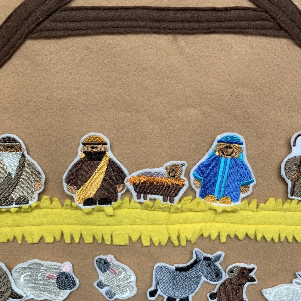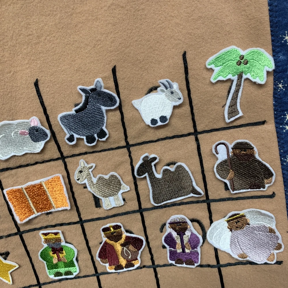Large Hanging Nativity Scene Advent Calendar Hook & Loop Embroidered Figures
