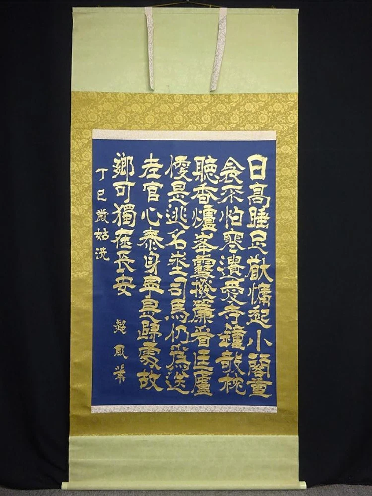 Item Title Large Hanging Scroll Super Sailing Chinese Book Navy Paper Gold Handwritten A092 Payment Supports managed payments Please pay within 5 days after auction is finished. About Us We are located in Japan. It's our pleasure to make you happy by proposing our recommend item. If you have any questions or request about items, please feel free to ask us. International Buyers - Please Note: -Import duties, taxes, and charges are not included in the item price or shipping charges. These charges are the buyer's responsibility. -Please check with your country's customs office to determine what these additional costs will be prior to bidding/buying. -These charges are normally collected by the delivering freight (shipping) company or when you pick the item up - do not confuse them for additional shipping charges. -We do not mark merchandise values below value or mark items as - gifts - The US and International government regulations prohibit such behavior. Thank you for your understanding.