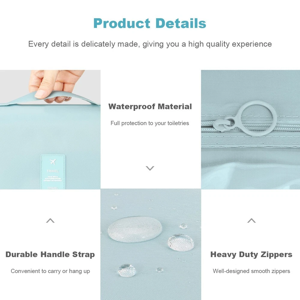 Mossio Hanging Toiletry Bag - Large Cosmetic Makeup Travel Organizer for Men & Women with Sturdy Hook (Sky Blue) HIGH QUALITY - Made of durable, water-resistant polyeser fabric & ventilate mesh cloth. Lined to prevent leaks. The stitching is well sewn and reinforced at all stress points HANGS FOR EASY ACCESS - The attached hanging hook lets you hang the bag on the bathroom door, shower rod or towel rack for fast access to your toiletries, as well as simply storing your travel case when not needed LARGE CAPACITY - Size: 9.45"L x 7.48" W x 3.74" H. You can put your make-up, shampoo, toothbrush, toothpaste and so on, all in one place. Make your travel comfortably to have all your necessities in one bag MULTIPLE COMPARTMENTS - Large outside pockets holds additional items for easy access when the bag is closed. Three interior main compartments keep your toiletries and cosmetics in place, and a front zipper pocket that provides extra storage with easy TRAVEL IN STYLE - Compact, sturdy, portable, lightweight. Our traveler bag is a perfect choice to put in your suitcase on any business or family trip, camping, beach or gym SHIPPING Domestic Buyers - We have confidence in our products, but if you are not fully satisfied please contact us within 30 days of purchase and you will get full refund. - We ship within 3 business days of payment, usually sooner - We offer FREE shipping on all orders! - We only ship to the lower 48 states, no APO/FPO addresses or PO Boxes allowed International buyers – please note: Import duties, taxes, and charges aren't included in the item price or postage cost. These charges are the buyer's responsibility. - Please check with your country's customs office to determine what these additional costs will be prior to bidding or buying. * Order Cancellation Policy ** You can return a product for up to 30 days from the date you purchased it. 1. The seller reserves the right to cancel the special case only due to eBay cancellation fee. 2. The decision of seller is the final. 3. The seller will respond to the cancellation request within 2 business days. Please wait for the result of cancellation. 4. In case the cancellation is not completed by some reasons, the buyer can follow the options below to get the refund. 4.1 The buyer can reject the item when it arrives. 4.2 The buyer can send the item back to the seller within 30 days If the buyer receives item (USA Shipment ONLY). The seller will provide the FREE return label to the buyer when the buyer opens " Return Item" case on eBay by using the reason as "Change my mind" ONLY. 5. When buyer has placed the order. The order will be processed and completed by automatic warehouse system within 5 minutes. In case that buyer sends the cancellation request after 5 minutes of placing the order, the request will be rejected. **Sending direct message to cancel the order is not allowed for every case.* Return Policy For the return case - If buyer would like to return the items for refund or replacement, please CONTACT SELLER to receive the free return label from seller. The refund or replacement will be processed with the tracking number of return label which is provided by seller only. The other ways of return which are not approved by seller will not be processed for the refund or replacement.