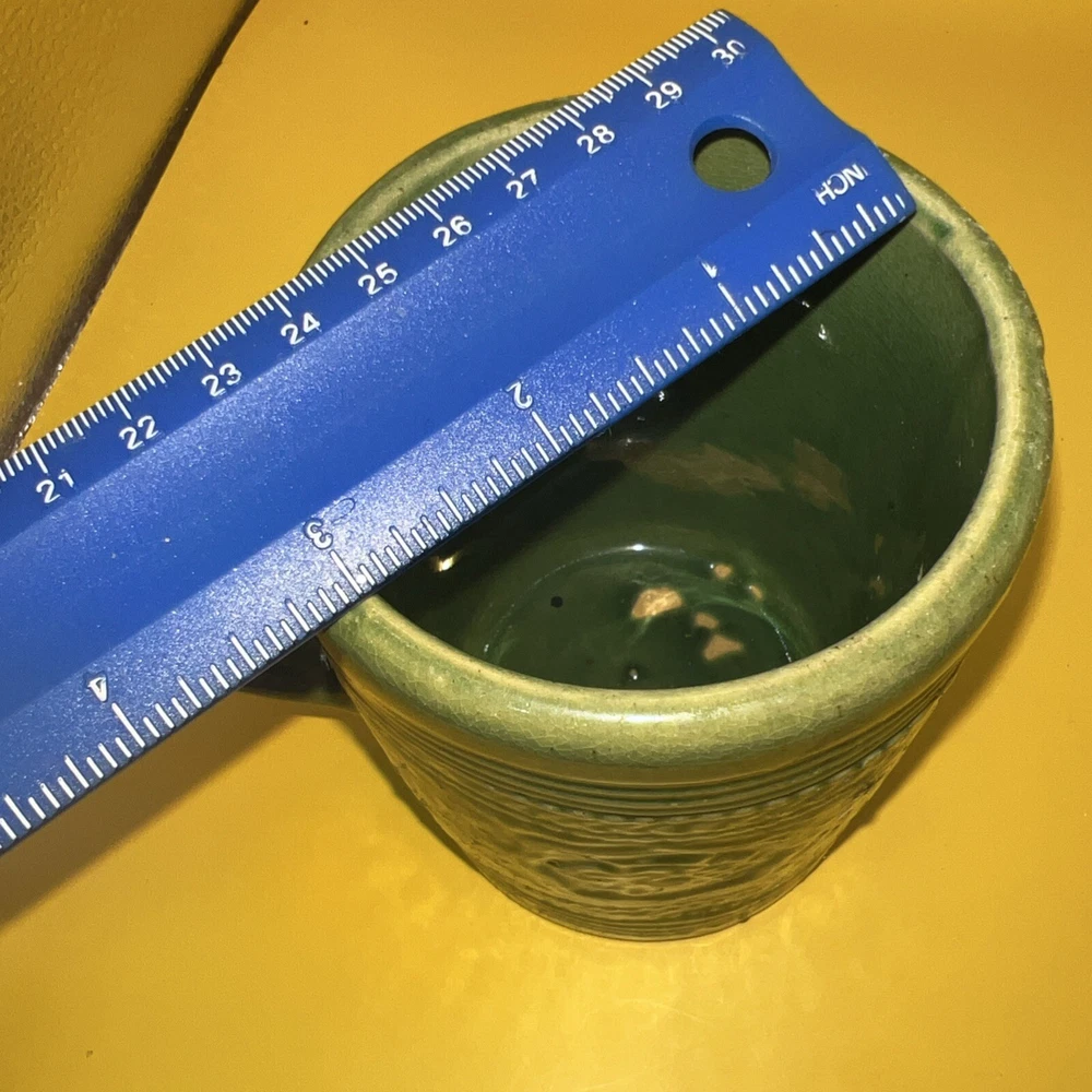 Embrace the charm of the early 20th century with this Large Heavy Antique McCoy Pottery Green Grape and Leaf Stoneware Mug. Crafted between 1920 and 1929, this authentic piece features a lush green leaf pattern that wraps around the exterior, exuding a timeless elegance that's sure to compliment any home decor. The mug stands at an impressive 5.25 inches tall with a robust diameter of 3 inches, making it ideal for a generous pour of your favorite beverage. Weighing in at 1.8 pounds, its substantial heft is a testament to the quality craftsmanship of the era. Whether for use or display, this mug is a genuine slice of Americana, celebrating the artistry of vintage pottery.