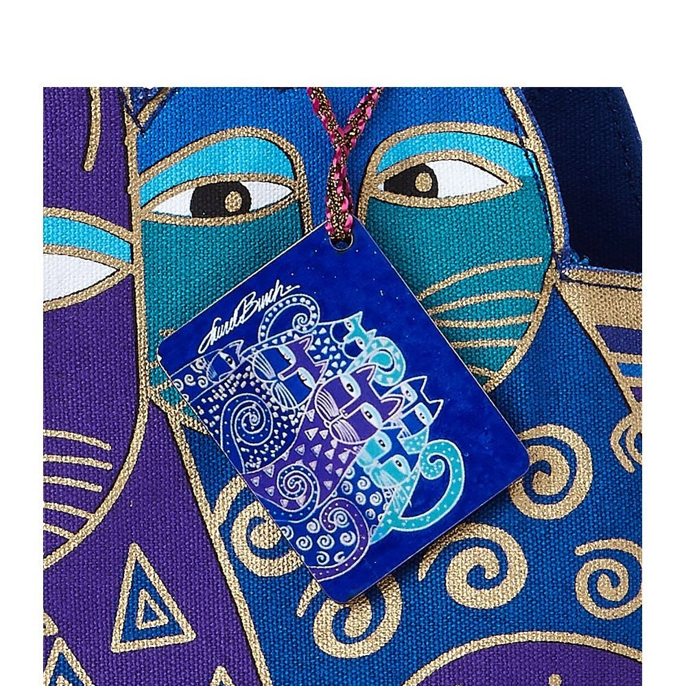 Description Cat lovers everywhere will love this shoulder tote with it's very rich looking colors, of blues, purples, and golds all over! Not to mention the picture of the three adorable cutout cats that line up in the front of the bag with their tails curled up in delight. Measures 20" x 5" x 14.5" Zipper top closure Inside pockets Water resistant interior Reinforced bottom panel