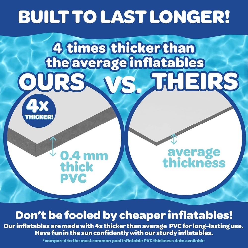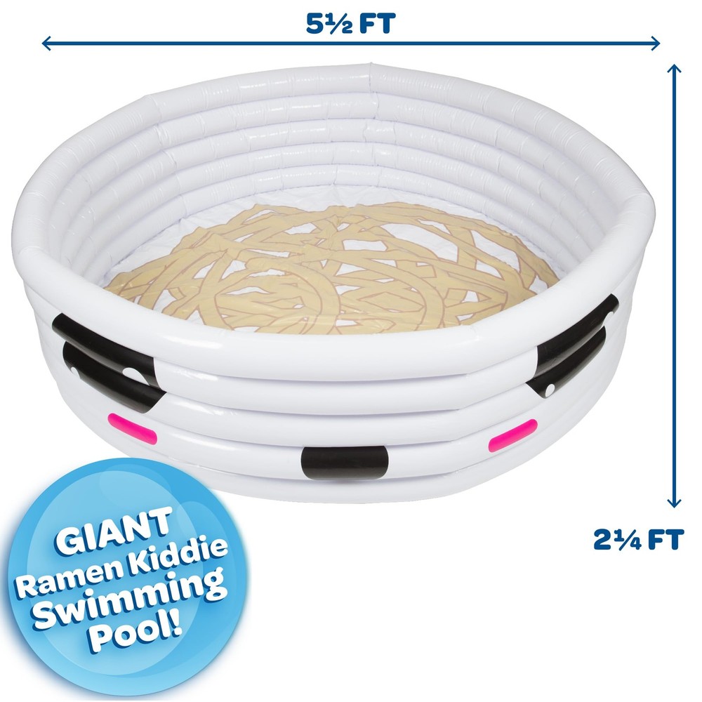 Aquamazing Large Inflatable Kiddie Pool has the most adorable ramen theme! This children's pool comes with exciting inflatable play pillow floats and accessories, Measures 67" x 26" and is the perfect family sized kiddie pool for baby, toddlers, kids, & adults. The perfect gift for any ramen lover! ADORABLE RAMEN THEME: Unique design features Ramen noodles on the pool floor! INFLATABLE ACCESSORIES INCLUDED: Pool features large tamago egg and fish cake inflatable toys - Great for pictures and parties! SUPER STURDY AND DURABLE: Heavy-duty durable 6P-free PVC plastic resists tears and punctures for long-lasting usage. Sturdy design is built to last! EASY TO DRAIN WATER AFTER USE: Includes drain plug for easy draining PERFECT FOR FAMILIES WITH KIDS: The perfect gift for any ramen lover! Great for pool parties, rivers, lakes, backyard and outdoor activities and more!