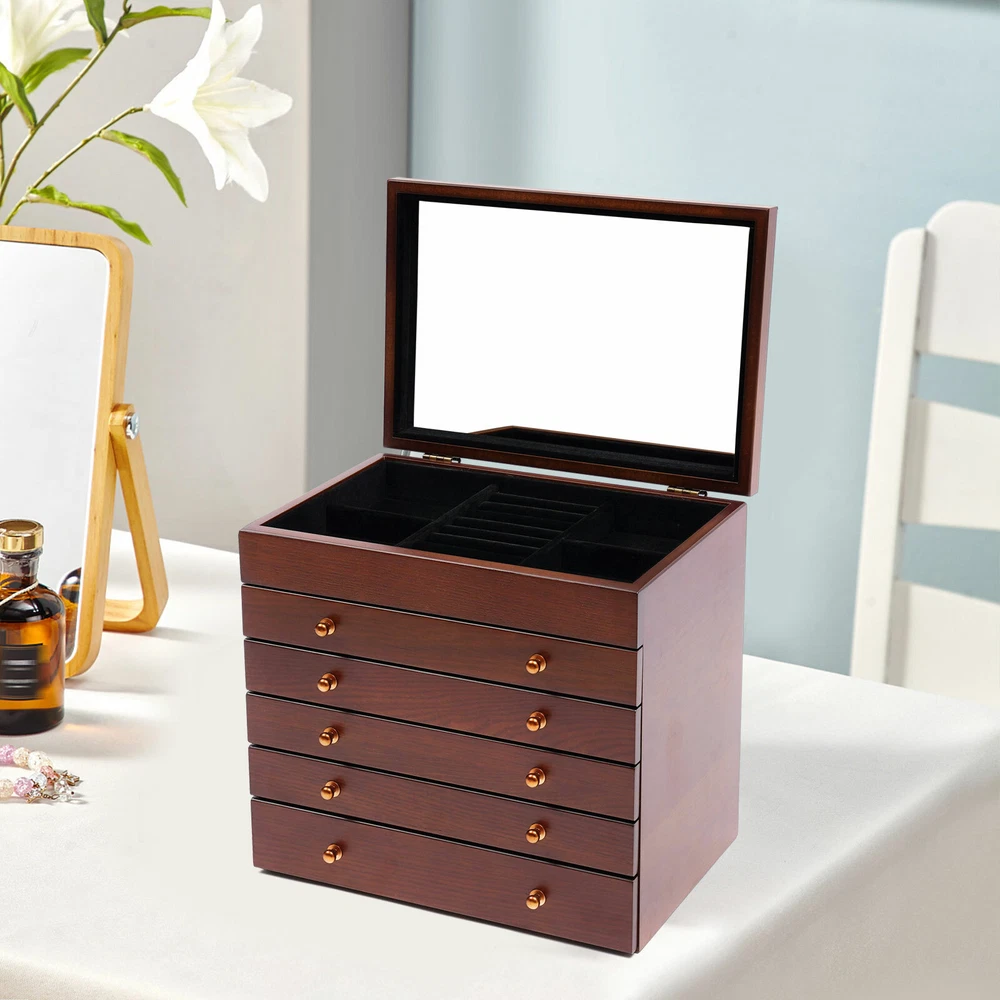 Specifications: Colors: white/ Walnut Color Layer: 6 layers Types: without mirror Material: Wooden Sizes: 31x20x24.5 cm/12.2*7.9*9.6 inch Features: - This is a retro wooden jewellery box. Fashionable and practical. - Made of high quality wood. - Can hold many kinds of jewelry. - No need to assemble. - A great gift for your mother/girlfriend/sister. Package included: 1 x Wooden Jewellery Box On Jan 22, 2025 at 04:37:15 PST, seller added the following information: