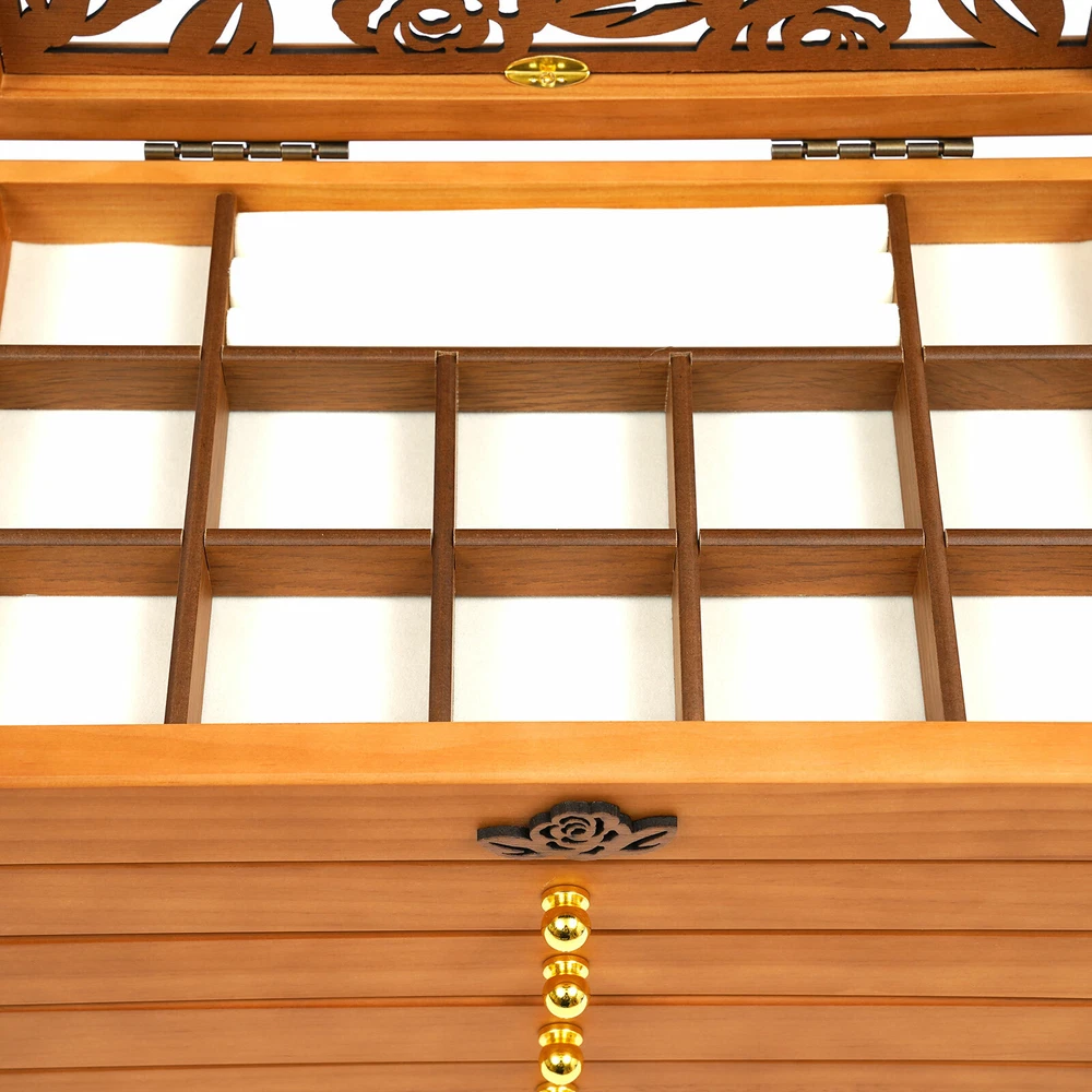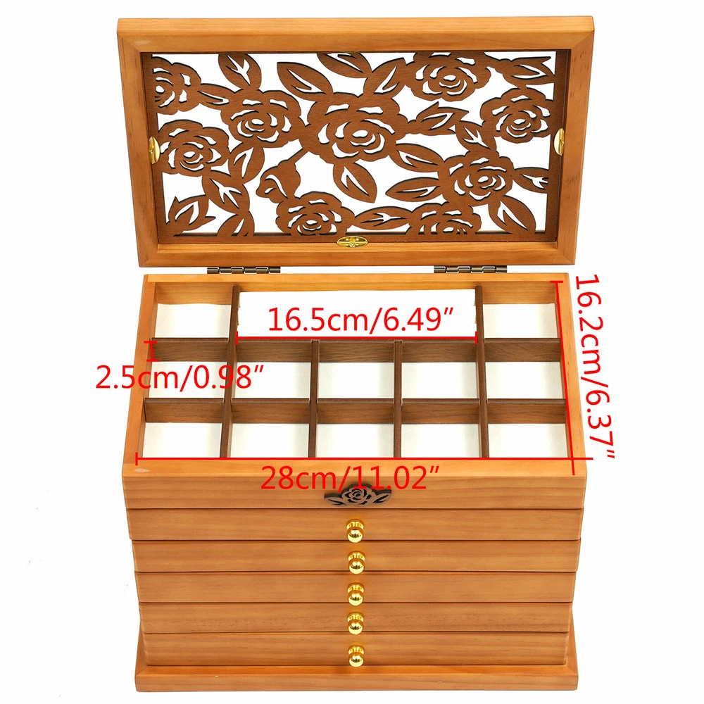 Specifications: Colors: white/ Walnut Color Layer: 6 layers Types: without mirror Material: Wooden Sizes: 31x20x24.5 cm/12.2*7.9*9.6 inch Features: - This is a retro wooden jewellery box. Fashionable and practical. - Made of high quality wood. - Can hold many kinds of jewelry. - No need to assemble. - A great gift for your mother/girlfriend/sister. Package included: 1 x Wooden Jewellery Box On Feb 18, 2025 at 19:16:36 PST, seller added the following information: