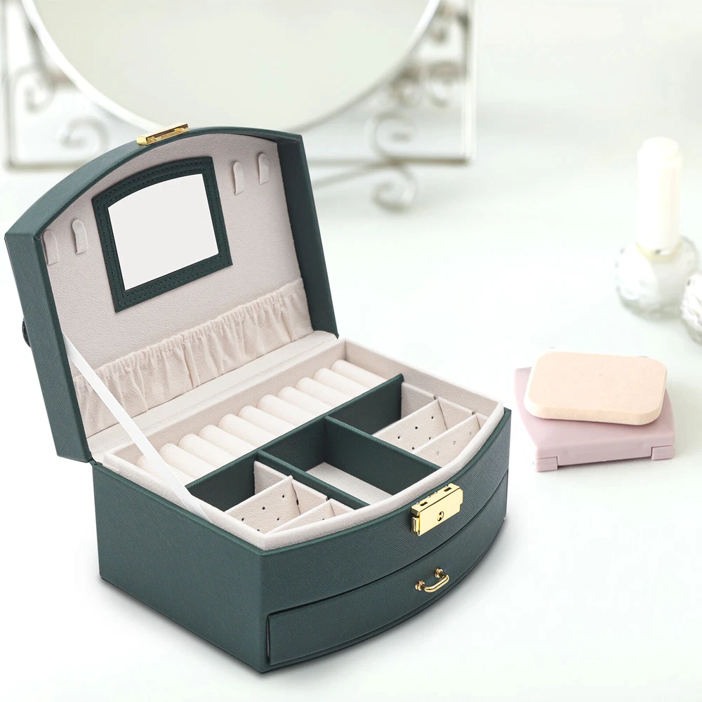 Description Are you still having trouble finding a particular piece of jewelry because you don't have a special storage box for it? Are you looking forward to having a sophisticated, personalized jewelry box? Then look no further than this double drawer jewelry box. With this jewelry box, your jewelry will have a cozy and comfortable home. Key Features High-quality Materials: The box is made of high-quality PU and flocked fabric. The PU surface gives the box a beautiful look and is hard-wearing and easy to clean, giving the box a long life. The soft material of the flocked fabric keeps your jewelry well protected. Large Jewelry Storage Case Jewelry Box Organizer for Women Girls w/ 2 Drawers US Welcom to yybshop06 Description Are you still having trouble finding a particular piece of jewelry because you don't have a special storage box for it? Are you looking forward to having a sophisticated, personalized jewelry box? Then look no further than this double drawer jewelry box. With this jewelry box, your jewelry will have a cozy and comfortable home. Key Features High-quality Materials : The box is made of high-quality PU and flocked fabric. The PU surface gives the box a beautiful look and is hard-wearing and easy to clean, giving the box a long life. The soft material of the flocked fabric keeps your jewelry well protected. Waterproof Casing: The casing is made of waterproof, mold-resistant PU, so your jewelry is well protected. Large Volume: With its double drawer design, this jewelry box can hold more jewelry than those of a single drawer, so you no longer have to worry about storing your many pieces of jewelry. Clear Sorted : Each layer of the box has a sectioned divider, which allows you to keep your jewelry in a separate place for easy access. Great Look : The dark green casing and gold clasp give the box a stylish, classic look. The white velvet lining of the box complements your jewelry beautifully. Partition Design: The jewelry box has removable compartments, which allows for flexible storage space. Earrings, large earrings, bracelets, rings, and necklaces all have a special place. Wide Application: The stylish appearance and practical design of this jewelry box make it suitable for both home use and gift-giving. The large capacity of the box makes it suitable for all kinds of jewelry. Customer Service: Our goal is to provide quality products and services. If you have any questions, please feel free to contact us. We will reply and solve the problem for you as soon as possible. Details High-quality Mirror: The jewelry box with a high-quality mirror allows you to store your jewelry and use it for make-up at the same time. The mirror on the box also makes it easier to put on your jewelry. Sturdy Carry Handle: The carrying handle is secured with a metal clasp, so it is sturdy and durable. And the carry handle is designed to make it easy for you to carry. Flocked Lining: The lining of this jewelry box is made of soft flocked fabric, which is comfortable to the touch. The delicate flocked fabric protects the jewelry well. Locking Design: The box comes with a locking design for better storage and carrying of jewelry. The lustrous metallic clasp enhances the overall quality of the box. Application This jewelry box is designed to hold a wide range of jewelry and to keep it well sorted. This beautiful jewelry box is suitable for home or travel storage and gift-giving. Specification Material: PU, Flocked Fabric Product Size: 20*16*10cm/7.87*6.29*3.93in Package Size: 21*16.7*11.7cm/8.26*6.57*4.60in Net Weight: 0.7kg/1.54lbs Gross Weight: 0.9kg/1.32lbs Package Included 1 x Jewelry Box Notes Please allow the slight color difference caused by the shooting light and 1-3cm error due to manual measurement. Please make sure you do not mind before you order. Description Payment Delivery details Terms of sales About us Contact us Payment We accept ebay payment 。 Fees such as import duties, taxes are not included in the item price or shipping costs. These charges are the buyer's responsibility. Delivery details Shipping: 2-9 working days to: USA Terms of sales We maintain high standards of excellence and strive for hundred percent customer satisfaction. Feedback is very important to us. We hope that you contact us immediately before you give neutral or negative feedback, so that we can address your concerns. It is impossible to address issues if we do not know about them! About us Your satis faction is our ultimate goal. We work hard to earn your trust and future business. Our certified technicians have tested each item before shipping. The unit comes with 1 year limited warranty on all manufacturing defects. a) If you receive a defective item, you may return it or ask for a discount. Please contact us within 14 days after you receive the package. b) What you returned must be intact and in its original packaging as re? u. Customer is responsible for shipping costs of the returned item. c) We will cover the cost of shipping back t with the shipping rate indicated in the registration page. We will send you a new unit or refund the full payment you paid. Thank you. Contact us Business Hour Business Hour: Monday To Friday: 8:30 AM to 5:00 PM (Beijing China time) Due to time zones, our reply to your questions may not be immediately. But within above working time, we will reply your email within 24 hours. If it's non-workdays, please kindly be patient and wait till Monday. Please contact us with ebay message. Please feel free to contact us if you have any questions. Monday To Friday: 8:30 AM to 5:00 PM (Beijing China time) Due to time zones, our reply to your questions may not be immediately. But within above working time, we will reply your email within 24 hours. If it's non-workdays, please kindly be patient and wait till Monday. Please contact us with ebay message. Please feel free to contact us if you have any questions. Features ❤High quality w/ warranty❤ Brand ( 品牌 ) SENDERPICK Transportati
