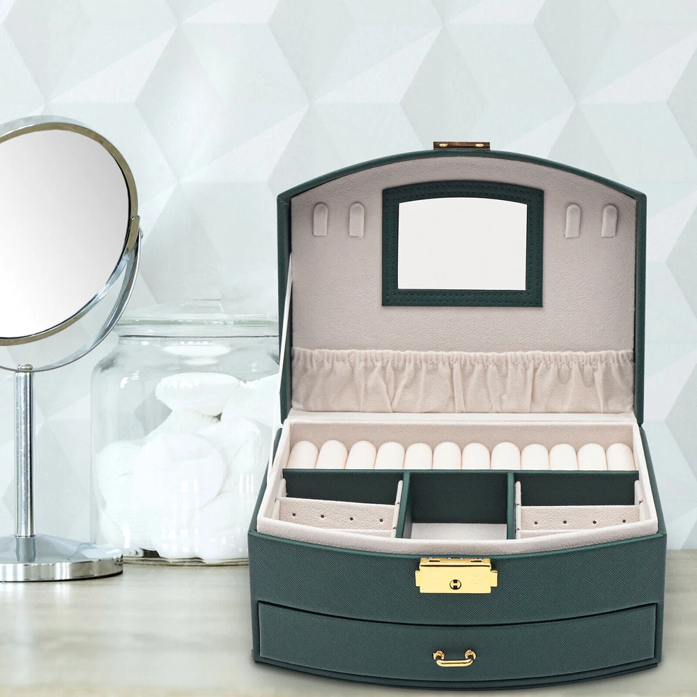 Large Jewelry Storage Case Jewelry Box Organizer for Women Girls with 2 Drawers Large Jewelry Storage Case Jewelry Box Organizer for Women Girls with 2 Drawers Description: Are you still having trouble finding a particular piece of jewelry because you don't have a special storage box for it? Are you looking forward to having a sophisticated, personalized jewelry box? Then look no further than this double drawer jewelry box. With this jewelry box, your jewelry will have a cozy and comfortable home. Key Features: High-quality Materials : The box is made of high-quality PU and flocked fabric. The PU surface gives the box a beautiful look and is hard-wearing and easy to clean, giving the box a long life. The soft material of the flocked fabric keeps your jewelry well protected. Waterproof Casing: The casing is made of waterproof, mold-resistant PU, so your jewelry is well protected. Large Volume: With its double drawer design, this jewelry box can hold more jewelry than those of a single drawer, so you no longer have to worry about storing your many pieces of jewelry. Clear Sorted : Each layer of the box has a sectioned divider, which allows you to keep your jewelry in a separate place for easy access. Great Look : The dark green casing and gold clasp give the box a stylish, classic look. The white velvet lining of the box complements your jewelry beautifully. Partition Design: The jewelry box has removable compartments, which allows for flexible storage space. Earrings, large earrings, bracelets, rings, and necklaces all have a special place. Wide Application: The stylish appearance and practical design of this jewelry box make it suitable for both home use and gift-giving. The large capacity of the box makes it suitable for all kinds of jewelry. Customer Service: Our goal is to provide quality products and services. If you have any questions, please feel free to contact us. We will reply and solve the problem for you as soon as possible. Details High-quality Mirror: The jewelry box with a high-quality mirror allows you to store your jewelry and use it for make-up at the same time. The mirror on the box also makes it easier to put on your jewelry. Sturdy Carry Handle: The carrying handle is secured with a metal clasp, so it is sturdy and durable. And the carry handle is designed to make it easy for you to carry. Flocked Lining: The lining of this jewelry box is made of soft flocked fabric, which is comfortable to the touch. The delicate flocked fabric protects the jewelry well. Locking Design: The box comes with a locking design for better storage and carrying of jewelry. The lustrous metallic clasp enhances the overall quality of the box. Application This jewelry box is designed to hold a wide range of jewelry and to keep it well sorted. This beautiful jewelry box is suitable for home or travel storage and gift-giving. Specification Material: PU, Flocked Fabric Product Size: 20*16*10cm/7.87*6.29*3.93in Package Size: 21*16.7*11.7cm/8.26*6.57*4.60in Net Weight: 0.7kg/1.54lbs Gross Weight: 0.9kg/1.32lbs Package Included 1 x Jewelry Box Notes Please allow the slight color difference caused by the shooting light and 1-3cm error due to manual measurement. Please make sure you do not mind before you order. Payment Delivery details Terms of sales About us Contact us Payment We accept ebay payment 。 Fees such as import duties, taxes are not included in the item price or shipping costs. These charges are the buyer's responsibility. Delivery details Shipping: 2-9 working days to: USA Terms of sales We maintain high standards of excellence and strive for hundred percent customer satisfaction. Feedback is very important to us. We hope that you contact us immediately before you give neutral or negative feedback, so that we can address your concerns. It is impossible to address issues if we do not know about them! About us Your satis faction is our ultimate goal. We work hard to earn your trust and future business. Our certified technicians have tested each item before shipping. The unit comes with 1 year limited warranty on all manufacturing defects. a) If you receive a defective item, you may return it or ask for a discount. Please contact us within 14 days after you receive the package. b) What you returned must be intact and in its original packaging as re? u. Customer is responsible for shipping costs of the returned item. c) We will cover the cost of shipping back t with the shipping rate indicated in the registration page. We will send you a new unit or refund the full payment you paid. Thank you. Contact us Business Hour Business Hour: Monday To Friday: 8:30 AM to 5:00 PM (Beijing China time) Due to time zones, our reply to your questions may not be immediately. But within above working time, we will reply your email within 24 hours. If it's non-workdays, please kindly be patient and wait till Monday. Please contact us with ebay message. Please feel free to contact us if you have any questions. Monday To Friday: 8:30 AM to 5:00 PM (Beijing China time) Due to time zones, our reply to your questions may not be immediately. But within above working time, we will reply your email within 24 hours. If it's non-workdays, please kindly be patient and wait till Monday. Please contact us with ebay message. Please feel free to contact us if you have any questions. shipping notice Can not ship to Puerto Rico,Alaska/Hawaii Feature 6 Easy installation Matetial 1 high quality & Duable OE/OEM Part Number Does not apply MPN ( MPN ) n/a Note: Do not send to the Canary Islands Destination never sent to or arrived: Canarias Island EAN Does not apply UPC Does not apply Brand Unbranded Type Display Case Items Included Jewelry Box Suitable For Necklace Theme Vintage Material PU, Flocked Fabric Color Green Lining Material Flocked Lining Features Fast shipping On Feb 23, 2025 at 19:03:41 PST, seller added the following information: