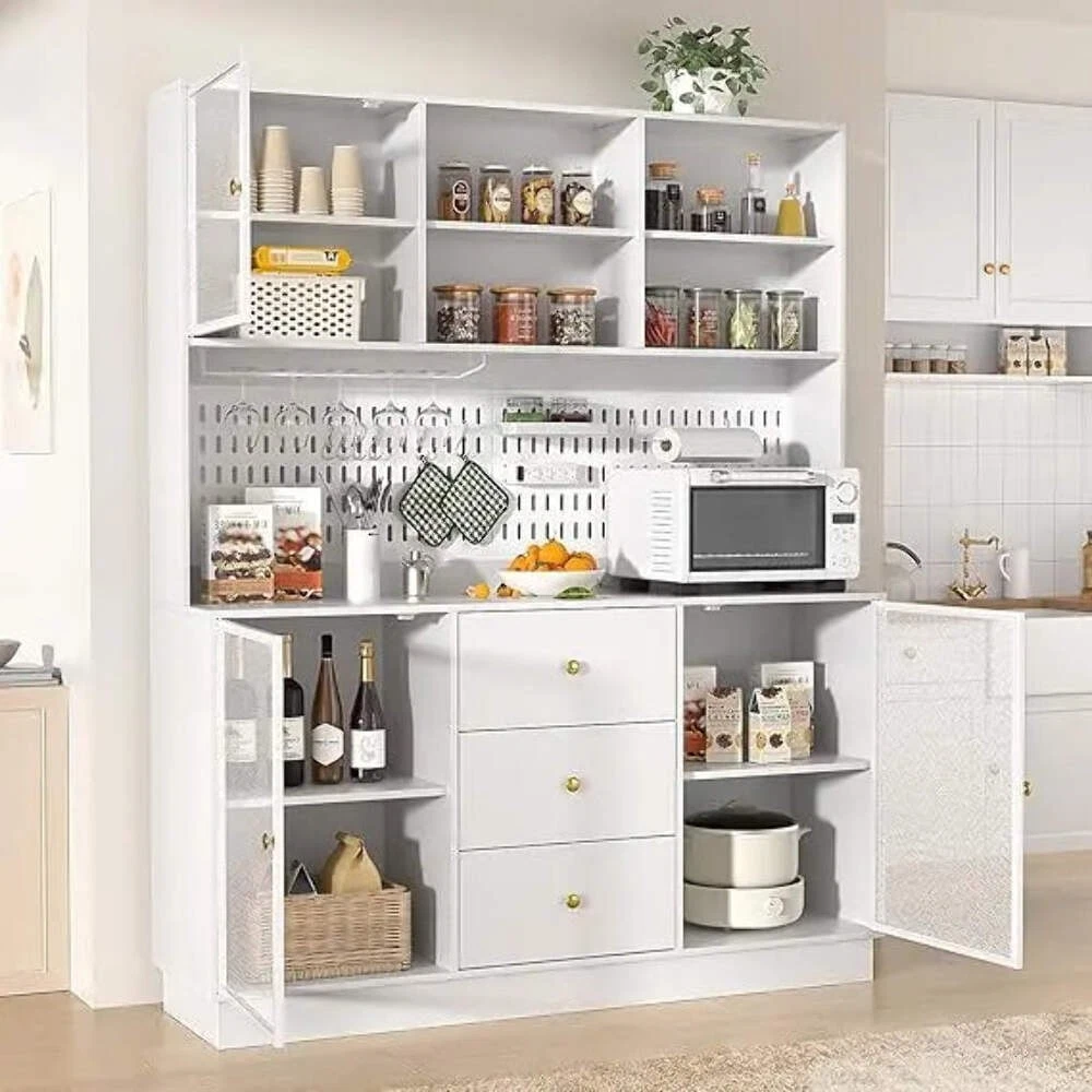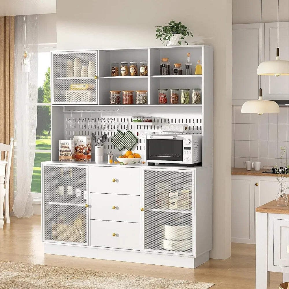 Large Kitchen Hutch Cabinet with 3 Metal Doors Storage Organizer Transform Your Kitchen with Ljustra's Large Kitchen Hutch Cabinet Discover the ultimate blend of style and functionality with the Ljustra Large Kitchen Hutch Cabinet. This modern pantry cabinet is designed to elevate your kitchen experience while providing ample storage space for all your essentials. Key Features: Large Storage Space: Features 3 easy-glide drawers, multiple open compartments, cup holders, microwave racks, power outlets, and hooks. Dimensions: 59"W x 15.75"D x 74.8"H. Modern Design: With classic details and timeless elegance, this freestanding kitchen cabinet matches a variety of home decors, showcasing your refined taste. Sturdy Construction: Made from high-grade MDF wood and quality metal hardware, this cabinet is built to last with a stable base that can bear up to 500 pounds. Versatile Storage: Full-size drawers and metal doors provide easy access to cookware and tableware, helping you maintain an organized kitchen. Easy Assembly: Comes with all necessary accessories and detailed assembly instructions. Note that the product may arrive in two packages. Product Specifications: Brand Name: Ljustra Material: Solid Wood Boards, Engineered Wood Number of Doors: 3 Number of Drawers: 3 Installation Method: Self-Contained Color: White Special Feature: Scratch Resistant Elevate your kitchen organization and style with the Ljustra Large Kitchen Hutch Cabinet. Order yours today and experience the difference! Explore more from Ljustra Kitchen Cabinet home organization Ljustra Large Kitchen Hutch Cabinet with 3 Metal Doors Storage Organizer Transform Your Kitchen with Ljustra's Large Kitchen Hutch Cabinet Discover the ultimate blend of style and functionality with the Ljustra Large Kitchen Hutch Cabinet . This modern pantry cabinet is designed to elevate your kitchen experience while providing ample storage space for all your essentials. Key Features: Large Storage Space: Features 3 easy-glide drawers, multiple open compartments, cup holders, microwave racks, power outlets, and hooks. Dimensions: 59"W x 15.75"D x 74.8"H . Modern Design: With classic details and timeless elegance, this freestanding kitchen cabinet matches a variety of home decors, showcasing your refined taste. Sturdy Construction: Made from high-grade MDF wood and quality metal hardware, this cabinet is built to last with a stable base that can bear up to 500 pounds . Versatile Storage: Full-size drawers and metal doors provide easy access to cookware and tableware, helping you maintain an organized kitchen. Easy Assembly: Comes with all necessary accessories and detailed assembly instructions. Note that the product may arrive in two packages. Product Specifications: Brand Name: Ljustra Material: Solid Wood Boards, Engineered Wood Number of Doors: 3 Number of Drawers: 3 Installation Method: Self-Contained Color: White Special Feature: Scratch Resistant Elevate your kitchen organization and style with the Ljustra Large Kitchen Hutch Cabinet. Order yours today and experience the difference! Explore more from Ljustra Kitchen Cabinet home organization Ljustra × × × × × × × × Shipping info Click the Shipping & Payments tab above the listing description for more info FREE Shipping Click the Shipping & Payments tab above the listing description for more info! Additional delivery notes PICK UP OPTION Sorry, our items are NOT available for pick-up. PAYMENT Immediate payment is required upon selecting "Buy It Now" or upon checking out through the cart. We accept payment via U.S. PayPal accounts and all Major Credit Cards, Debit Cards & Google Pay. We are legally required to collect sales tax in those states and localities where we maintain a physical presence (nexus). The applicable amount of sales tax charged to an order will be calculated based on the shipment destination's state and local sales tax laws. Thank you for shopping with us on eBay! Additional Information No additional information at this time Ask seller a question You might also like Ljustra Modular Sectional Sofa Set with Storage Ottoman and Pillows Ljustra 107" Modular Cloud Sectional Sofa Deep Seat Corduroy L-Shaped Couch Corduroy Sofa Couch Adjustable Seat Depth 75"–142" Small-XL Couch 4-Seater Love Luxurious 3 Piece Velvet Chesterfield Living Room Sofa Set Contact To contact our Customer Service Team, simply click the button here and our Customer Service team will be happy to assist. Ask seller a question © My Store Shipping & Payments Shipping is FREE for this item Payment Accepted Payment Methods Immediate payment is required upon selecting "Buy It Now" or upon checking out through the cart. We accept payment via U.S. PayPal accounts and all Major Credit Cards, Debit Cards & Google Pay. We are legally required to collect sales tax in those states and localities where we maintain a physical presence (nexus). The applicable amount of sales tax charged to an order will be calculated based on the shipment destination's state and local sales tax laws. Thank you for shopping with us on eBay! Returns Returns are accepted Items must be returned within 14 days of the auction ending Buyer will pay for return shipping. eBay integration by
