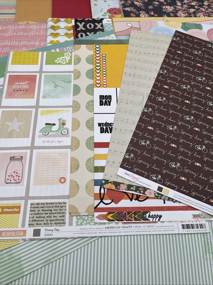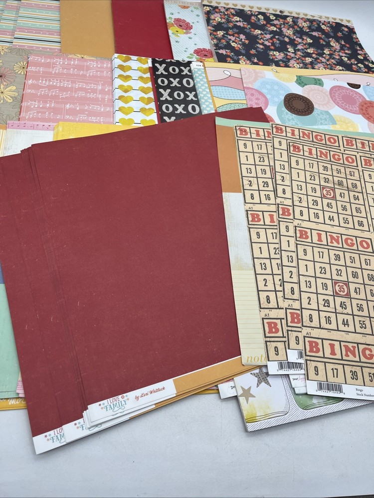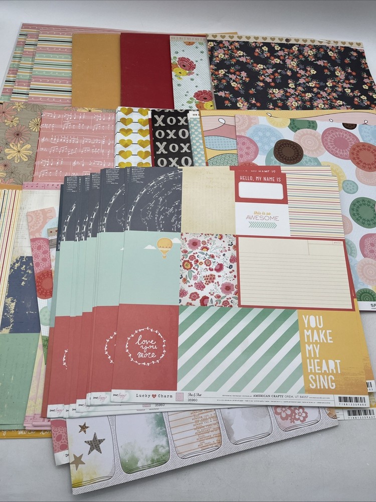 Large lot of 12x12 scrapbook paper sheets. Includes a variety of colors, patterns and themes. Some sheets are new, others are loose sheets from paper pads. Great for: • scrapbooking • card making • journaling • craft projects Mixed brands and designs. Pre-owned lot. Several paper packs are still sealed in original plastic, while the rest are loose sheets that appear unused.
