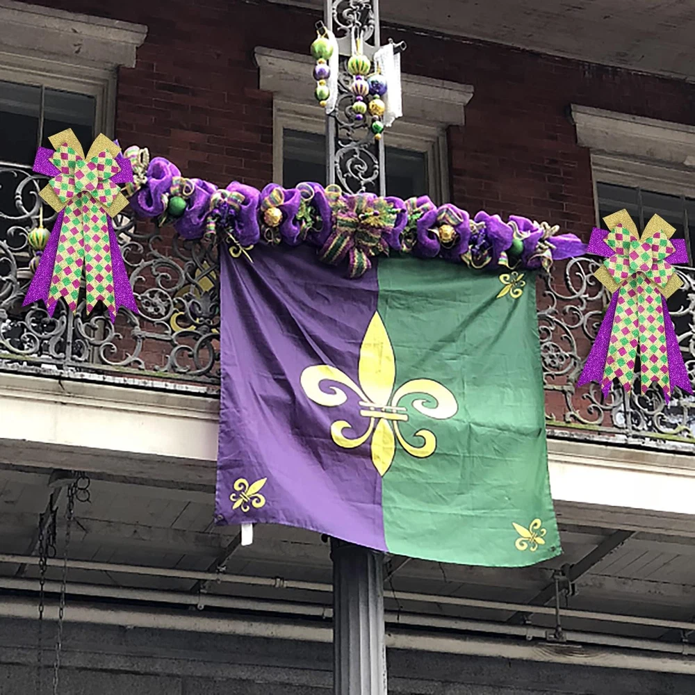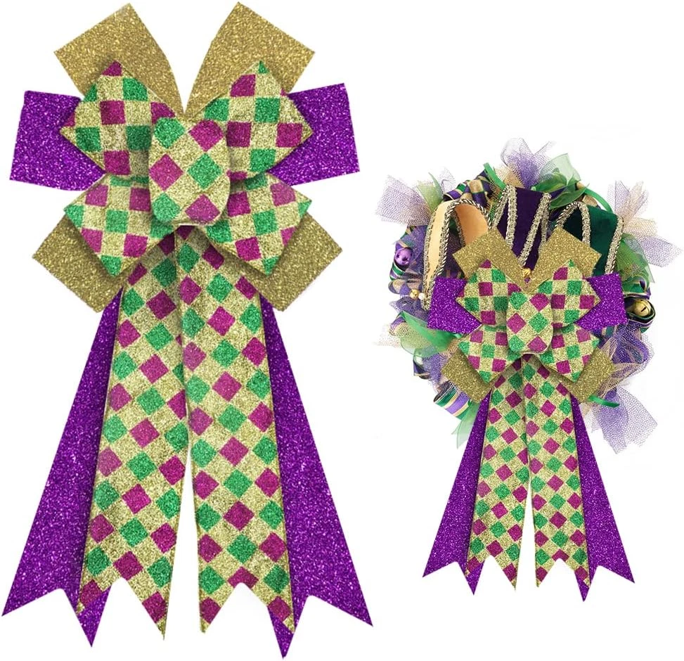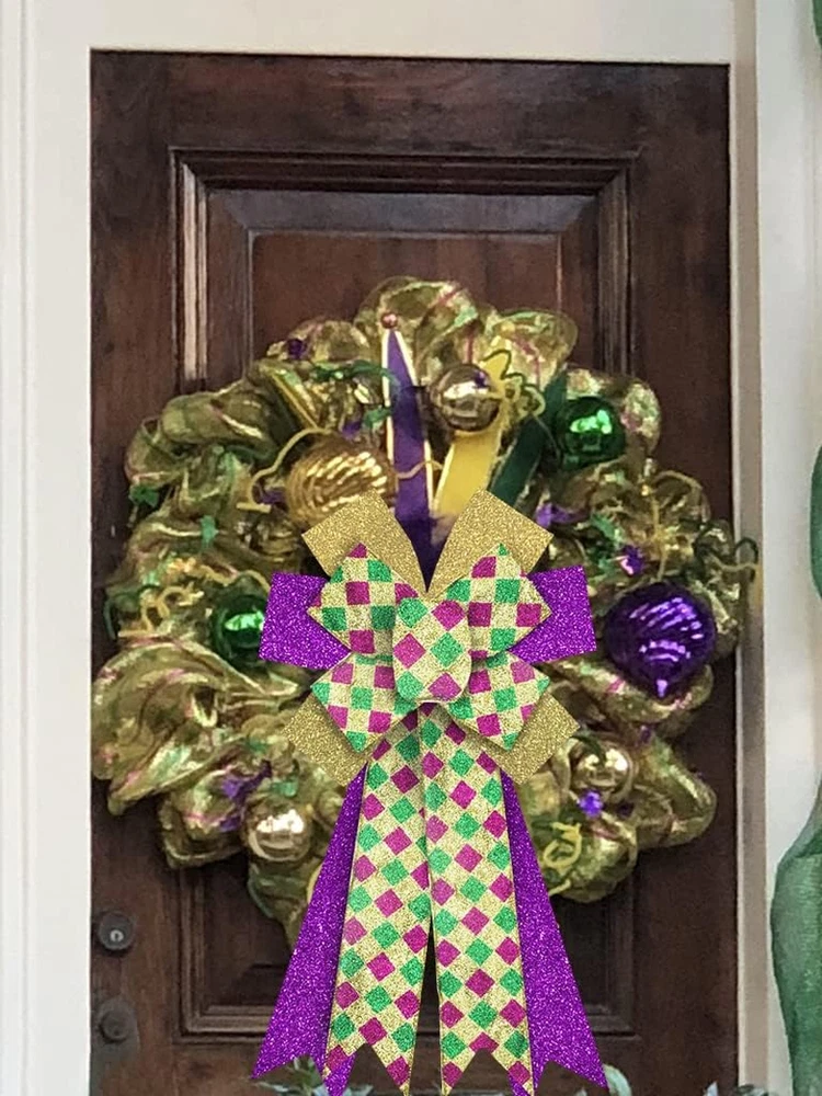 Large Mardi Gras Bows for Wreaths, Mardi Gras Wreath Bows, Glitter Purple Gold G