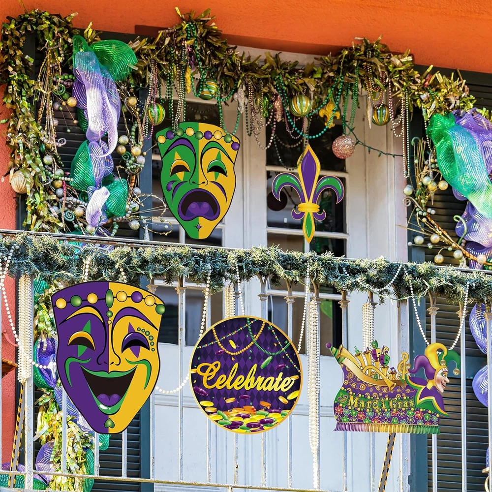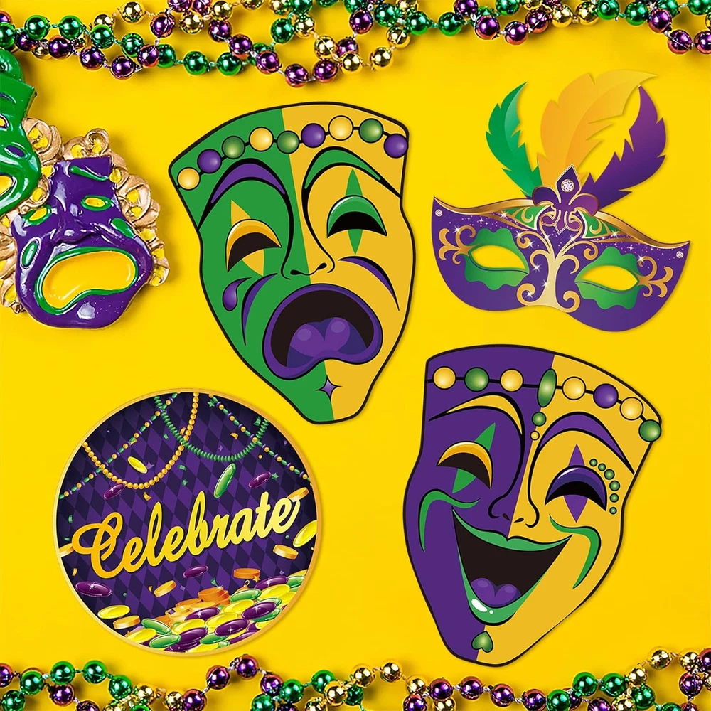 Large Mardi Gras Decorations with Comedy Tragedy Face Mardi Gras Float Mask Cuto