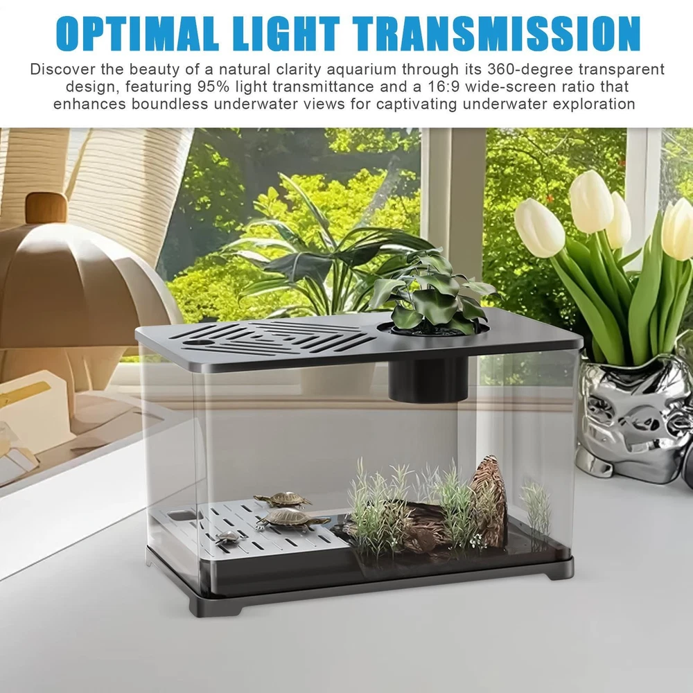 Fish Tank Large Fish Tank Kit Desktop Aquarium Modern Container With Well-liked Product Description Bullet Points: Wide-Screen Aquatic Clarity: Enjoy boundless underwater views with a 360-degree transparent design, providing 95% light transmittance and a natural clarity aquarium experience in a 16:9 wide-screen ratio, ideal for vivid aquatic scenery Amphibious Ecosystem Integration: Features a turtle basking area and tiered micro-ecosystem for amphibious tank structure, ensuring submerged plant compatibility and diverse aquatic life support Clear Visioning: Achieve great 4K optical precision for clear, distortion-proof views, enabling seamless fish movement tracking and detailed plant growth observation within an aesthetically balanced golden aspect ratio Ambient Style Enhancer: This fish tank blends modern home decor with a dynamic water feature and curved corners, to create an air-transparent aesthetic, that upgrade any room's ambiance naturally Peaceful Reflections: Discover the art of relaxation through gentle light refraction effects, perfect for enhancing both desk spaces and living areas Designed for modern interiors, this desk decor adds charm to home decorations with its panoramic HD aesthetic. The versatile container supports aquatic planting and houses turtle, betta, jellyfish, guppy, shrimp, while offering a turtle resting area. A sleek addition to any home, apartment, or workplace, it enriches your desktop accessories ensemble effectively. Specifications: Name: Desktop fish tank Color: white, black Product size: about 39.5x22.5x21.5cm/15.55x8.86x8.46 inches Weight: about 1.8kg Material: PP Note: This product is only an aquarium with lid and turtle area, no other plants or accessories are included Packing List: 1 x Aquarium Tank 1 x turtle resting area Notes: 1. Due to the different monitor and light effects, the actual color of the item might be slightly different from the color shown in the pictures. 2. Please forgive a slight measuring deviation due to manual measurement. Payment 1.PayPal is a preferred Payment method. 2.You can make a Credit payment via Paypal.Paypal will let you use MasterCard,Visa to pay. 3.Payment should be completed within 3 days after auction closed, or unpaid dispute will be filed for an closing auction.An unpaid case will be filled after 4 days. Delivery details 1. We ship to many countries. 2. Delivery Time: Ship from China via Speedpak to US (takes 8-12 days) Ship from China via others shipping method to other countries (takes 15-60 days) 3. If you want to choose another address, please leave us a message on ebay.Please check your shipping address carefully before checkout,it can't be changed if order completed. Seriously promise:Refund or resend will be offered if item still not arrive in 7-10 business days. Just send us an email,we will give you a satisfied solution as soon as possible. Return policy 1.All item comes with Basic 3 Months Sellers Warranty, if item defective in 3 months,We will offer replacement without extra charger (including shipping fee) After we receive the defective item. If item Defective after 3 Month, Buyers can still send it back, We will contact suppliers or Manufactory for Warranty. Buyers Might Need pay the Shipping fee For resend the replaced item. 2.If item DOA(Dead of Arrival), Buyers can return it in 30 Days, we will replace it with new item after we receive DOA item. Please Contact us Before you sent the item back. 3.All item can be returned for exchange only. The buyer has responsibility for all return shipping including DOA or defective return. About Feedback When you receive the item and satisfied with the product, please leave positive feedback and 5 scores DSR. We will leave a 5 Scores DSR feedback for you. If, for any reason you are not satisfied with your purchase, please contact via Ebay Message and we will do our best to resolve it. Please don't leave neutral or negative feedback without any communition with .