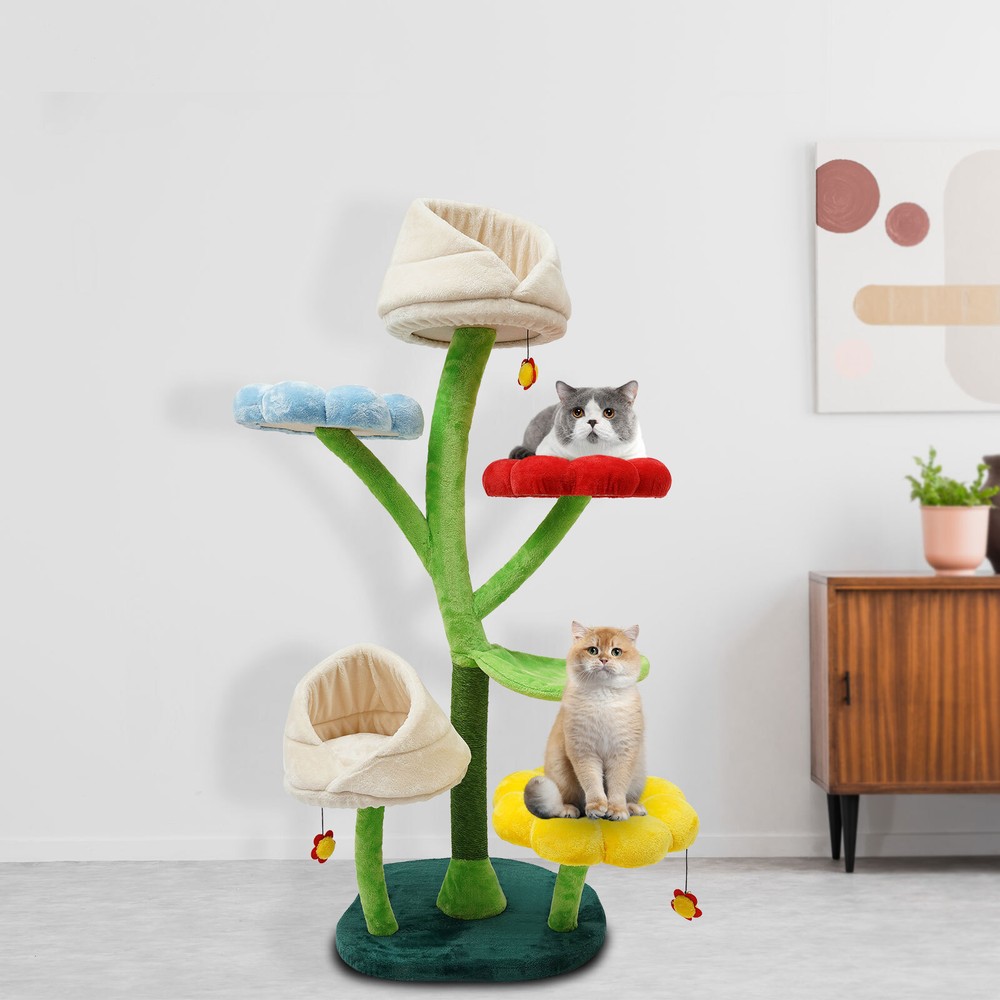 Specification Material: Particleboard, Paper String, Sisal, Iron, and Plush Fabrics Color: Green, Red, Blue, Yellow, and White Resting Platform Shape: Flower Style: Modern Target Species: Cat Wash Style: Hand Wash Assembly Required: Yes Mounting Type: Freestanding Specific Uses For Product: Indoor Number of Tiers: 6 Load Capacity: About 10kg/22 lbs Base Size: 60*55cm/23.6*21.6inch Total Height: 162cm/63.8inch Each Cat Nest Size(D*H): 38*25 cm/15*9.8inch Each Cat Resting Platform Diameter: 40 cm/15.7inch Leaf-type Hammock Size: 48*31cm/18.9*15inch Package Included 1* Cat Tree 1* Allen Key 1* Assembly Diagram Other Accessories for Use 6 Tiers Indoor Cat Tree Tall Cat Tower For Large Cats 22 Lbs Cat Climbing Frame Description Are you still worried that your cat has nowhere to sharpen its claws thus scratching the sofa, or are you still worried about your cat not having a suitable place to live? Then come to see our cat tree. The wide springboard, comfortable cat nest, durable scratching board, sturdy columns, and scratching post give your cat an ideal place to play and rest. The beautiful shape and coordinated color scheme can fit well into your furniture decor. Key Features Build to Last: It is made of high-quality particleboard, paper string, sisal, iron, and plush fabrics, making it robust, wear-resistant, impact-resistant, environmentally friendly, and safe, and has a long service life. Family Playground: This cat tree has resting platforms(also can be used as springboards), scratching posts, cat nests, and more, making it a family playground for cats to play, scratch, rest, and climb. You can take photos to document your cat's life and add to the fun. Thoughtful Design: Its structure is designed according to the climbing habits of cats, so both old cats and kittens can climb up and down easily. Kittens can lean on the padded upper platform to rest or observe the environment or sleep comfortably in the narrow upper and wide lower litter. Good Load-bearing: The sturdy material, thick columns, and stable base endow the product with a bearing capacity of approximately 22 lbs, so you don't have to worry about collapsing when your cat is playing or resting on it. Nice Decoration: The colorful appearance makes the product look very simple and atmospheric, flowers and leaves type resting platforms make it rich in a kind of natural beauty, so it will be a beautiful scenery in your home! Space Saving: The upright structure makes full use of vertical space, saving you more space in the bedroom or living room. Easy to Install: With complete accessories, a simple structure, and an intuitive assembly diagram, you can install it yourself and enjoy the installation process. Effortless Cleaning: Because of its simple detachable structure and smooth surface, you can easily wash this product clean. Ideal Gift: Thanks to its powerful functions and beautiful novel appearance, you can give it as a Christmas, Thanksgiving, or housewarming gift to your friends who love cats! Details Leaf-shape Hammock: It not only is stylish in shape but also provides maximum comfort for cats, allowing them to experience the fun of hanging. Flower-shape Plush Balls: They can easily attract your cats' interest, unleash their nature, make them jump like wild animals, and make them play happier. Practical Column: Wrapped with paper string, it helps your cats climb or sharpen their claws, prevent them from destroying the sofa or bed in your home, and protect their nails. Application It applies to cats weighing up to 22 pounds and is suitable for homes, pet shops, living rooms, bedrooms, balconies, and other places where cats can interact and rest. Specification Material: Particleboard, Paper String, Sisal, Iron, and Plush Fabrics Color: Green, Red, Blue, Yellow, and White Resting Platform Shape: Flower Style: Modern Target Species: Cat Wash Style: Hand Wash Assembly Required: Yes Mounting Type: Freestanding Specific Uses For Product: Indoor Number of Tiers: 6 Load Capacity: About 10kg/22 lbs Base Size: 60*55cm/23.6*21.6inch Total Height: 162cm/63.8inch Each Cat Nest Size(D*H): 38*25 cm/15*9.8inch Each Cat Resting Platform Diameter: 40 cm/15.7inch Leaf-type Hammock Size: 48*31cm/18.9*15inch Package Included 1* Cat Tree 1* Allen Key 1* Assembly Diagram Other Accessories for Use Notes 1.If your pet chews the pompom, please remove it and keep it away from your pet for a while. 2.It is recommended to place the cat tree against the wall and use the anti-tip kit(not included) to ensure the safety of your family members. Additionally, try not to place the cat tree in a humid environment, considering the material. 3.Please check the tightness of the screws and tighten them regularly. Please allow the slight color difference caused by the shooting light and 1-3 cm error due to manual measurement, and make sure you do not mind before ordering. Payment Delivery details Terms of sales About us Contact us Payment We accept ebay payment 。 Fees such as import duties, taxes are not included in the item price or shipping costs. These charges are the buyer's responsibility. Delivery details Shipping: 2-9 working days to: USA Terms of sales We maintain high standards of excellence and strive for hundred percent customer satisfaction. Feedback is very important to us. We hope that you contact us immediately before you give neutral or negative feedback, so that we can address your concerns. It is impossible to address issues if we do not know about them! About us Your satis faction is our ultimate goal. We work hard to earn your trust and future business. Our certified technicians have tested each item before shipping. The unit comes with 1 year limited warranty on all manufacturing defects. a) If you receive a defective item, you may return it or ask for a discount. Please contact us within 14 days after you receive the package. b) What you returned must be intact and in its original packaging as re? u. Customer is responsible for shipping costs of