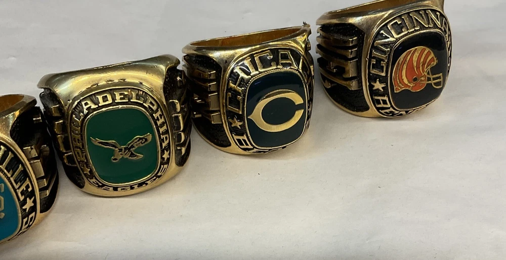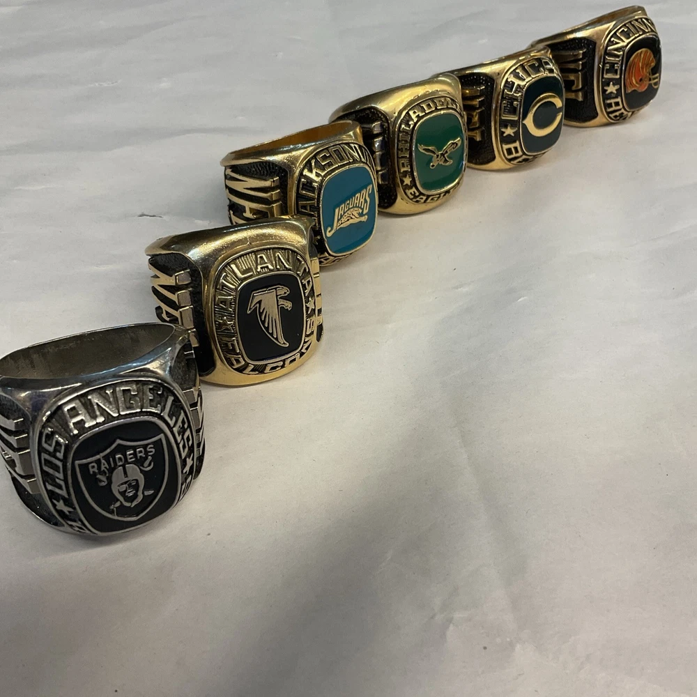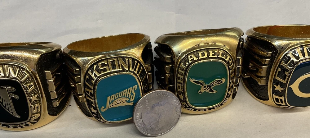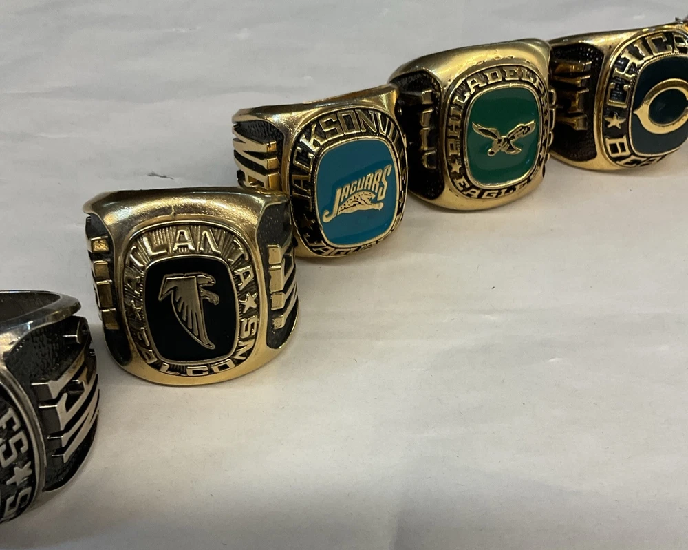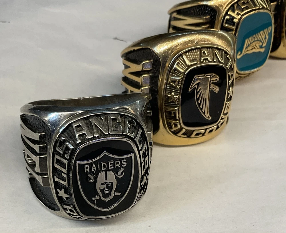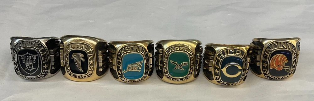 Large NFL jumbo ring lot Raiders Falcons Eagles, Bears Bengals Jaguars, no RSV