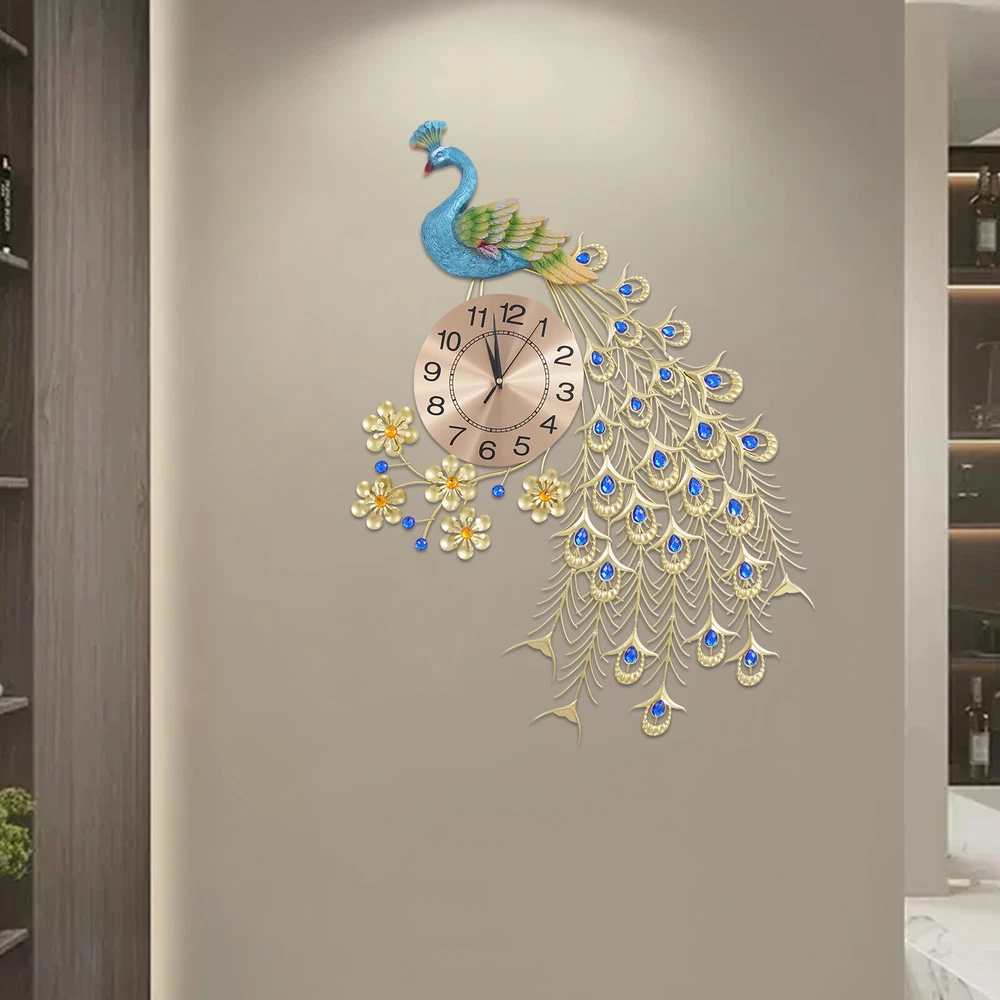This stunning peacock clock adds such elegance to my living room! The rich royal blue and gold colors pop beautifully against the wall, and the intricate metal details show incredible craftsmanship. Surprisingly easy to put together, and it keeps perfect time. Absolutely love how it transforms the space into something truly special!