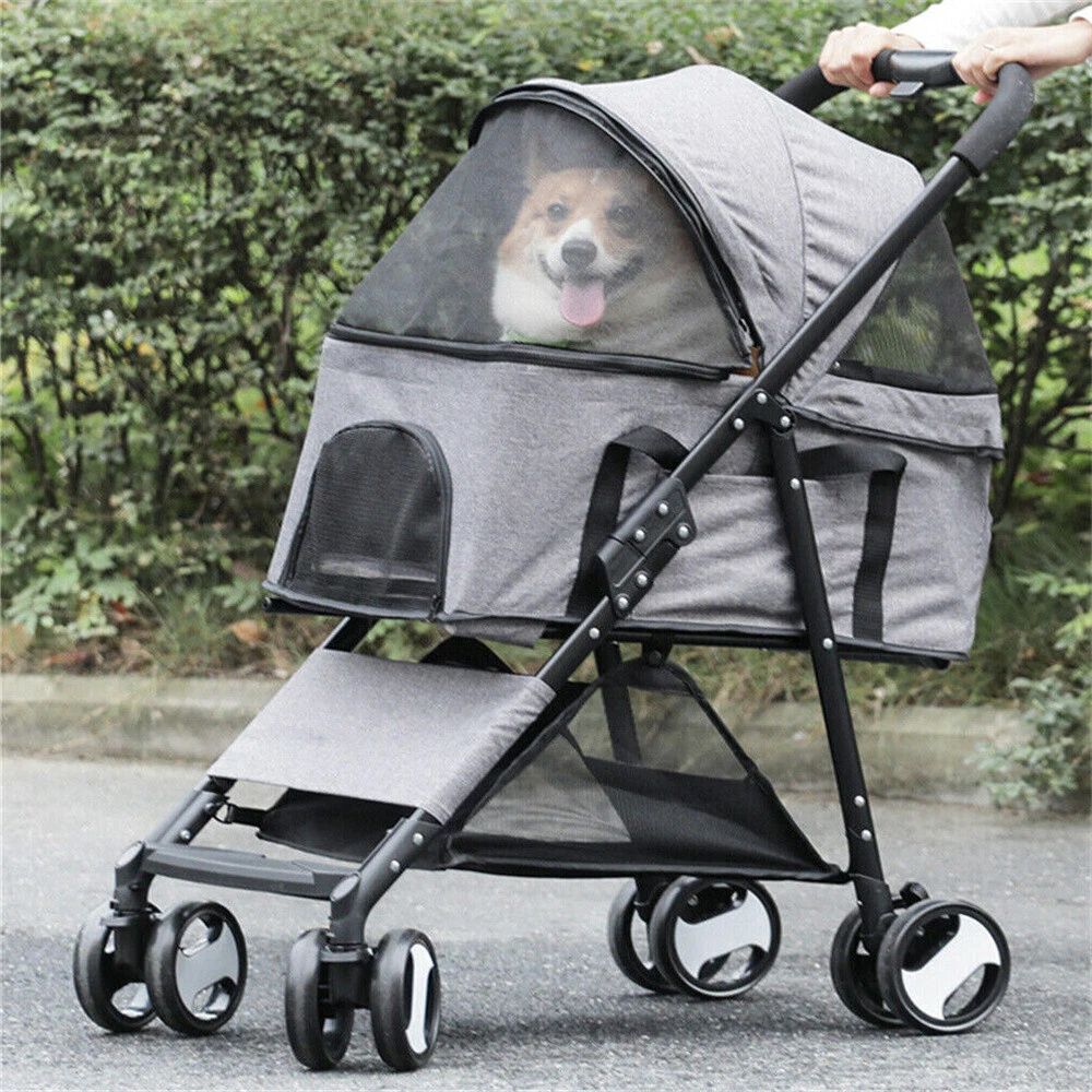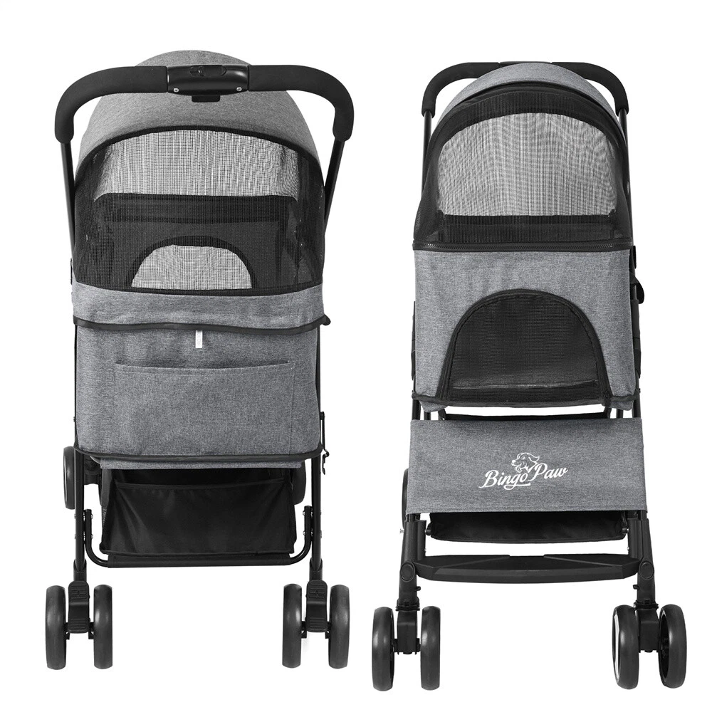Large Pet Dog Stroller Pushchair Buggy Pram w Rain Cover Travel Car Seat Carrier Large Pet Dog Stroller Pushchair Buggy Pram w Rain Cover Travel Car Seat Carrier US SELLER FAST SHIPPING! Large Pet Dog Stroller Pushchair Buggy Pram w Rain Cover Travel Car Seat Carrier Features: Well-made luxury stroller. Perfect for small cats and dogs. There is extra space when he lays down. Solid EVA wheels easy to maneuver and for smooth ride. Easy to fold up and fit into the car trunk. The storage basket underneath and the pockets in the side or back for holding a little shopping. A well-constructed cat stroller with a weight capacity of 20kg (max do not exceed 30kg), designed breathable mesh cover offers maximum visibility and continuous airflow. The storage basket you can hold some supplies. Safety lock wheels prevent accidental movement. The cat stroller designed shock-absorbent wheels that offer incredible stability. Its canopy works well for anxious cats who prefer to avoid confrontation with other animals. Well-padded cushion base inside provides extra comfort. Collapsible and foldable feature for easy storage. Specifications: Material: 600D Linen Fabric + EVA (wheel) + Steel Pipe Color: Grey Net Weight: 7.1 kg Weight Capacity: within 30 kg / 66lbs Product Dimension: L x H 50.5 x 77.8 x 99.5 cm / 19.88 x 30.63 x 39.17 inch Pet Carrier Size: 39.5 x 54 x 62 cm / 15.55 x 21.26 x 24.4 inch Package Size: 75 x 44 x 19.5 cm / 29.5 x 17.3 x 7.7 inch Package Weight: 8.03 kg Package Included: 1 x Cat Stroller 1 x Waterproof Cover 1 x Instruction Guide Payment Delivery details Terms of sales About us Contact us Payment Delivery details We ship orders within 24 hours of payment. Orders are shipped daily Monday - Friday Orders are shipped through USPS and FedEx, normally take 3-6 days to arrive! Terms of sales Pls contact us if there is any problems with your order via ebay message. we will try our best to resolve it to your satisfaction! About us We are a store, mainly run home garden kitchen items, also, we are professional makeup case factory. We work with a good quality OEM supplier and factory. Help you and us save money greatly. Contact us If you have any questions or any helps, pls feel free to contact us via ebay message. We will reply back to you in 24 business hours. Brand BingoPaw Type 4-Wheel Pet Stroller MPN WIS78439R9DFG Features Detachable Carrier, Foldable, Rain Cover/Rain Screen, with Storage Basket Dog Size S Model Pet Stroller Custom Bundle Yes Color Gray