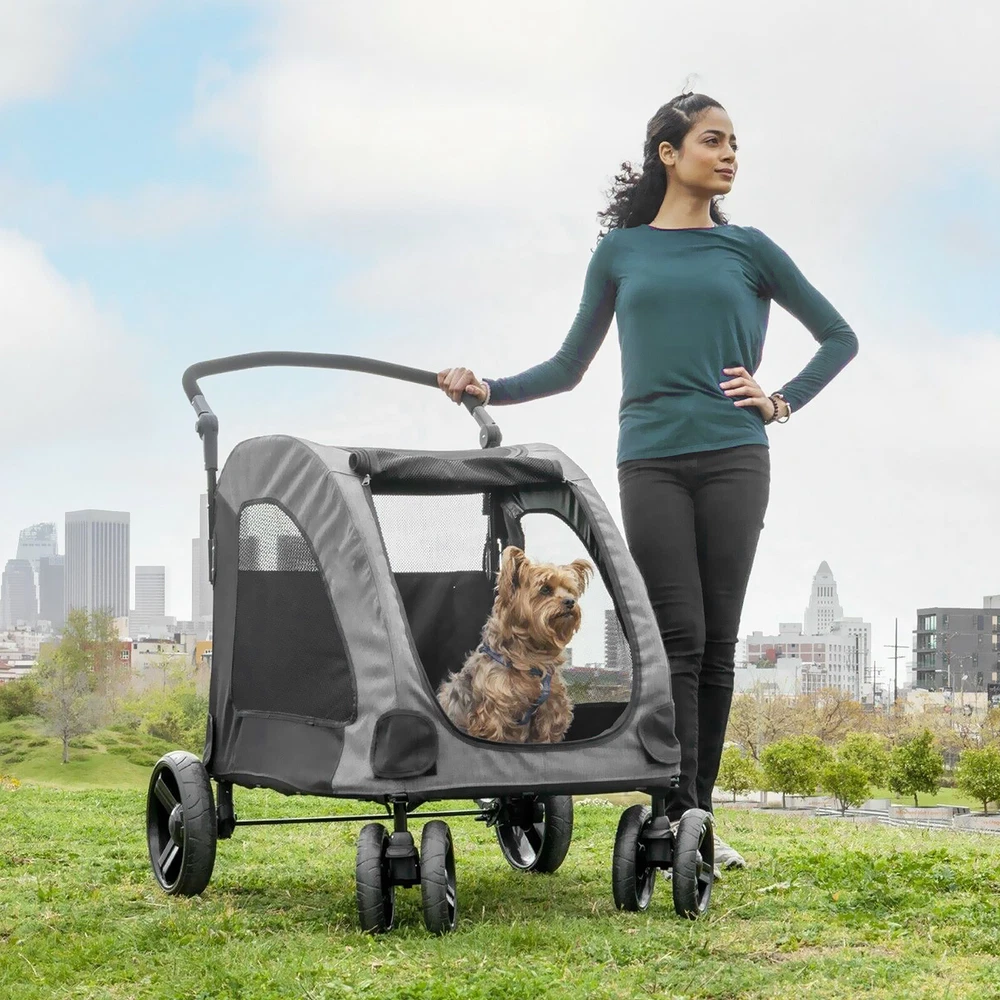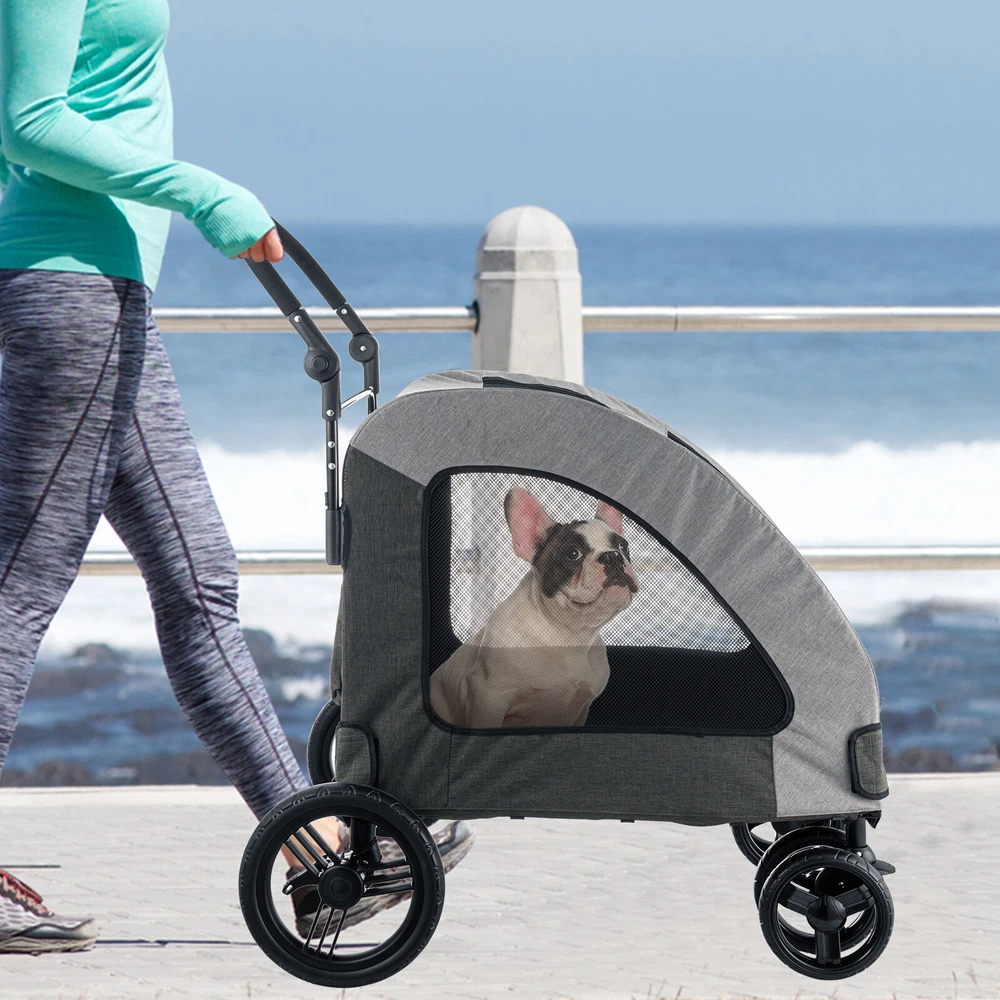 For more information on our products Please send message to us Why Choose Us 4-Wheel Dog Stroller for Large Dogs, Waterproof Oxford Cloth, Detachable Folding eBay Best Seller, Large Quantity Sold, Commercial Warranty Fast Shipping USA Stock, United States Wide Trusted Seller Lifetime Warranty 60 Days Return Policy (conditions apply) Customer Feedback What Customers Have To About Us "Just As It Says, Got here fast. Have not used yet. Can't wait to use it" n***3(155) "Item was received quickly and was exactly as described. THANKS to a great Ebayer" s***1( 283) "Fast shipping and very good communication!" h***r "excellent, very good seller" r***a( 107) "5++ Stars the product works wonders" m***w( 93) "Great seller to work with. Extremely professional, takes care of cust. AAA+" j***8(15) "Item as described!!!!!! Thank you!!" d***s(115) "Fast ship would buy from seller again" p***4(198) Picture Description Dog Stroller for Large Dogs, Breathable Large Space, Waterproof Oxford Cloth, Detachable Folding, Lightweight 4 Rubber Wheel Stroller for 2 Medium Dogs or 1 jumbo dogs, Up to 150lbs. Take your pet anywhere and everywhere in style with the pet stroller. Designed with your pet's needs and comfort in mind the stroller has two 360° double wheels for smooth maneuverablitiy, large 12" back locking wheels,large mesh windows, a water proof interior,and a zip up cover with a leash attachment. Set up is a breeze,simply install the wheels ,unfold the stroller and attach the adjustable hanlde. Large wheels allow you to walk or jog on a variety of surfaces and terrains. About this item: Light weight & portable:Set up is a breeze! Simply attach the wheels, unfold and place the adjustable handle. At only 25 Lbs. the wagon is light weight and portable, when you are done simply fold and store until your next walk. Adjustable Handle:The ergonomically designed padded adjustable handle lets you choose the perfect height for you to use the pet wagon. Handle can be adjusted from 31" - 41" with the push of a button. Spacious Interior :The interior of the pet wagon is lined with a PVC waterproof cover and a safety strap to help keep your pet safe inside the wagon. The exterior is made from a high density oxford polyester fabric. Superior Mobility :The Pet wagon was designed with large 12" locking back wheels and 360° eight inch double wheels which allow you to jog or walk on a variety of terrains. Specifications Material: PVC waterproof interior & Oxford polyester exterior & Carbon steel frame Fabric Type Oxford Fabric with Large Mesh Windows Color Gray Product Dimensions 37"L x 30"W x 37"H Recom-mended Pet Sizes Under 21"W x 21"H x 33"L Item Weight 25 Pounds Maximum weight recommendation 150 Pounds In The Box Pet Stroller x 1 Feature Oxford Fabric with Large Mesh Windows MADE FOR PETS - The pet stroller provides a safe and comfortable way to travel on walks with your pets. Designed with your pet's needs in mind the large mesh windows provide airflow, spacious interior is waterproof and the rear storage pocket is perfect for toys, water bottles and personal items. Vergo dog strollers are ideal for small, medium or large pets, Perfect for walking or jogging. SUPERIOR DESIGN – Comes with large 12” back wheels, a locking system, and 360° swivel 8” front double locking wheels that allow you to maneuver through a variety of different terrains like grass and pavement easily. The large wheels absorb shocks and vibration and provide a smooth ride for your pets. PERFECT FIT - Designed to fit small, medium or large pets, the dog stroller provides a large 31” L x 21” W x 24”H waterproof interior. The entrance is 12" off the ground making it easy for pets to jump into the 22" x 16" opening. The adjustable padded handle of the stroller can be set to a height between 31” to 41” from the ground. Maximum weight capacity 130 Lb Exterior dimensions: 37" L x 30" W x 37" H. CONVENIENT – This stroller for dogs is easy to assemble and is ready in minutes. Simply attach the wheels, unfold and place the adjustable handle and you are ready to walk or jog in style. At only 25 lbs the pet wagon is lightweight and portable. When you are done simply remove the handle, fold and store. Folded dimensions with wheels: 37" x 30" x 13". Folded dimensions Without wheels: 37" x 21" x 5". STRONG AND SECURE – Our pet stroller frame is made from strong carbon steel while the outside cover is made from a high density oxford fabric. Large side mesh windows and peek-a-boo top ensure that your pet has adequate airflow. Our dog wagon interior is lined with a waterproof PVC cover and includes a safety leash to secure your pet inside the wagon. Shipping All items are dispatched from our warehouse in HACIENDA HEIGHTS, CA. We aim to dispatch all products within one working day after your full payment is made. If you need to cancel a purchase after the product has been dispatched, please note that the postage fee may not be refundable. Additional postage fees may apply for re-delivery or re-direction requests. Orders placed on weekend will be shipped within 2 days. Some products may be dispatched in more than one carton. International Buyers – Please Note: Import duties, taxes and charges are not included in the item price or shipping charges. These charges are the buyer’s responsibility. UPS/FEDEX: 3-5 business days. | USPS: 2-6 business days. | Truck company: 3-8 business days. We only ship to the Lower 48 states, and we do not ship to FPO, APO or PO Box addresses. Return & WarrAnty We provide return & refund service within 60 days after the buyer receives the product. (product kept in original condition, a restocking fee may apply). We guarantee the product to be new and free of manufacturer defects for 1 year for the original purchaser only. If you have a problem with the product. Please contact us through eBay and include the original purchase information (i.e. your name , address, email and purchase receipt number). We will requir